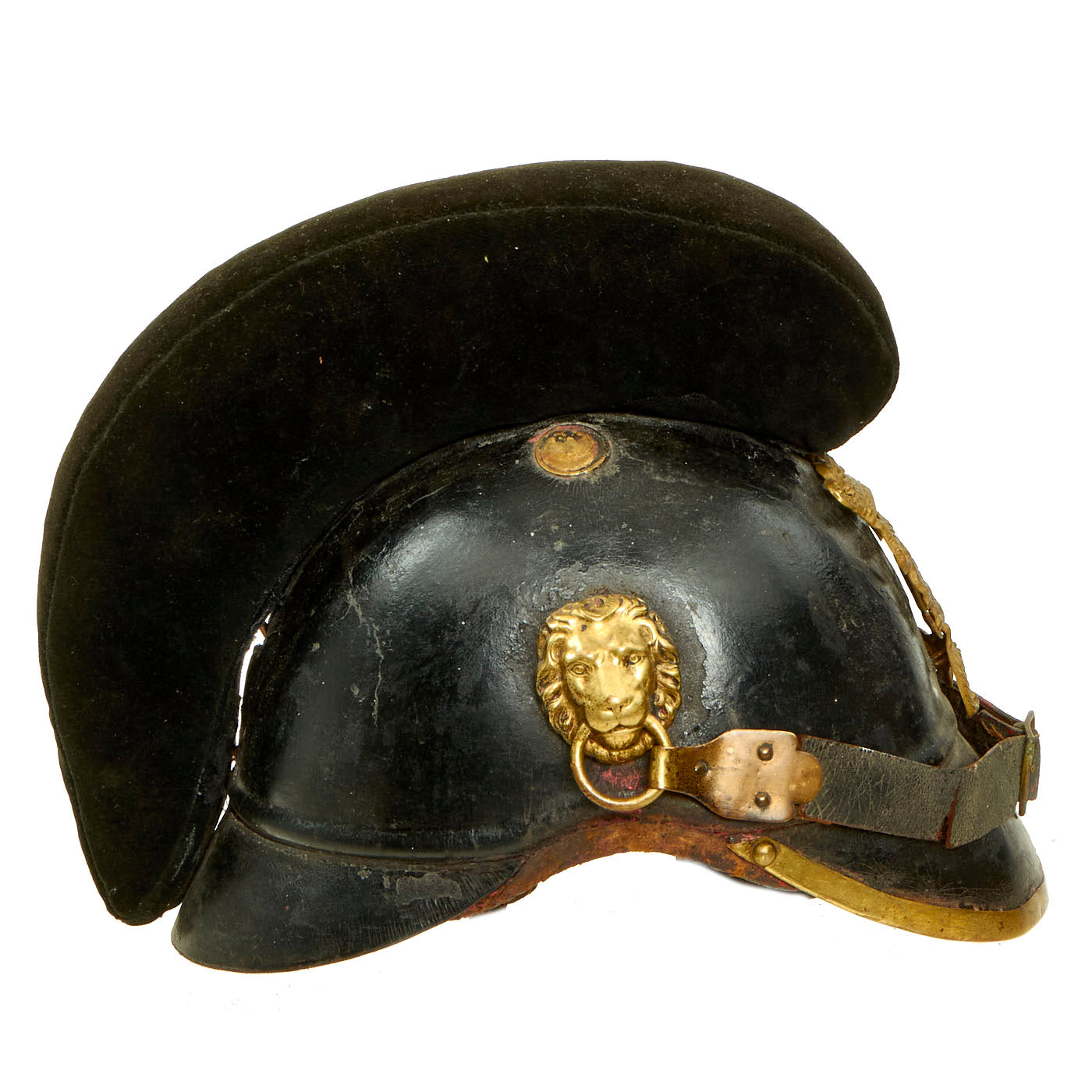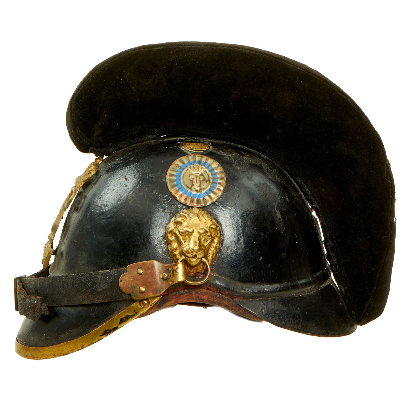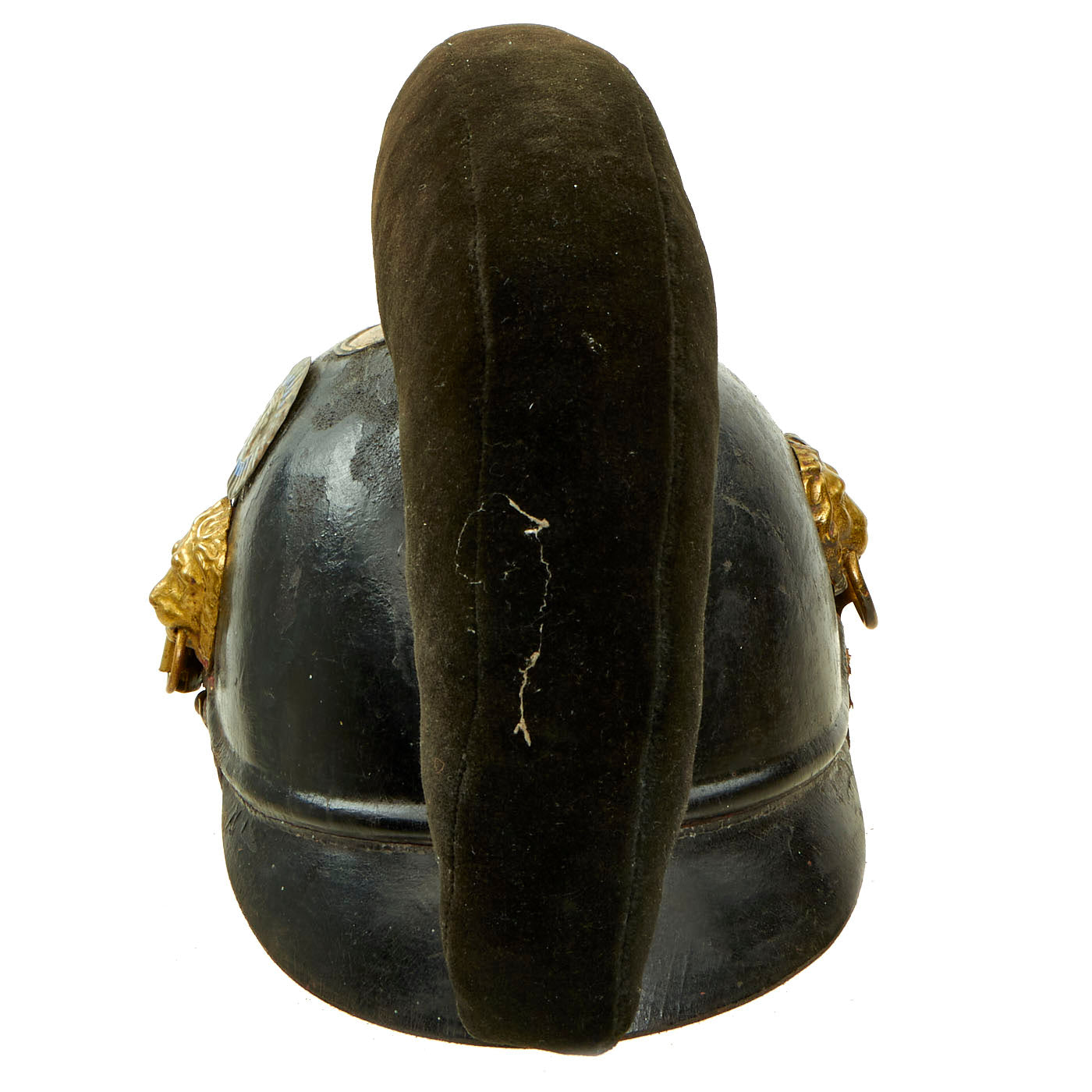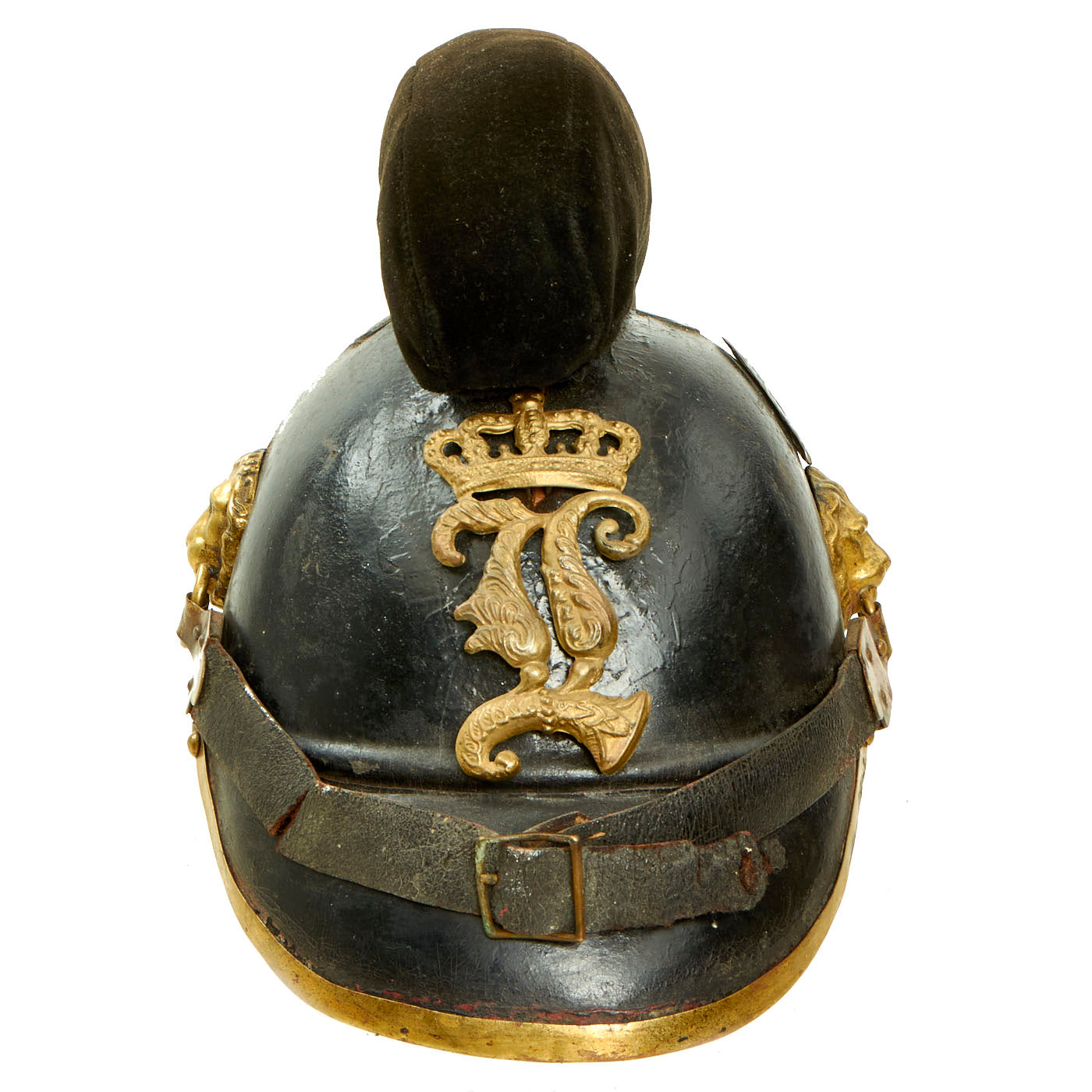 Original Item: Only One Available. The distinctive Bayern (Bavaria) Raupenhelme (Caterpillar helmet) can be traced back to 1800 when the "Kasket Muster 1800" was introduced. The Raupenhelme had a leather body with a large wool or hair comb on the top and was worn by all ranks from 1800 to 1886 undergoing numerous modifications. After that, Bavaria fell into line with the rest of the German Empire, and adopted its own version of the pickelhaube. This fine example of a Raupenhelme is a cavalry version, and bears the Royal Monogram of King Ludwig II.