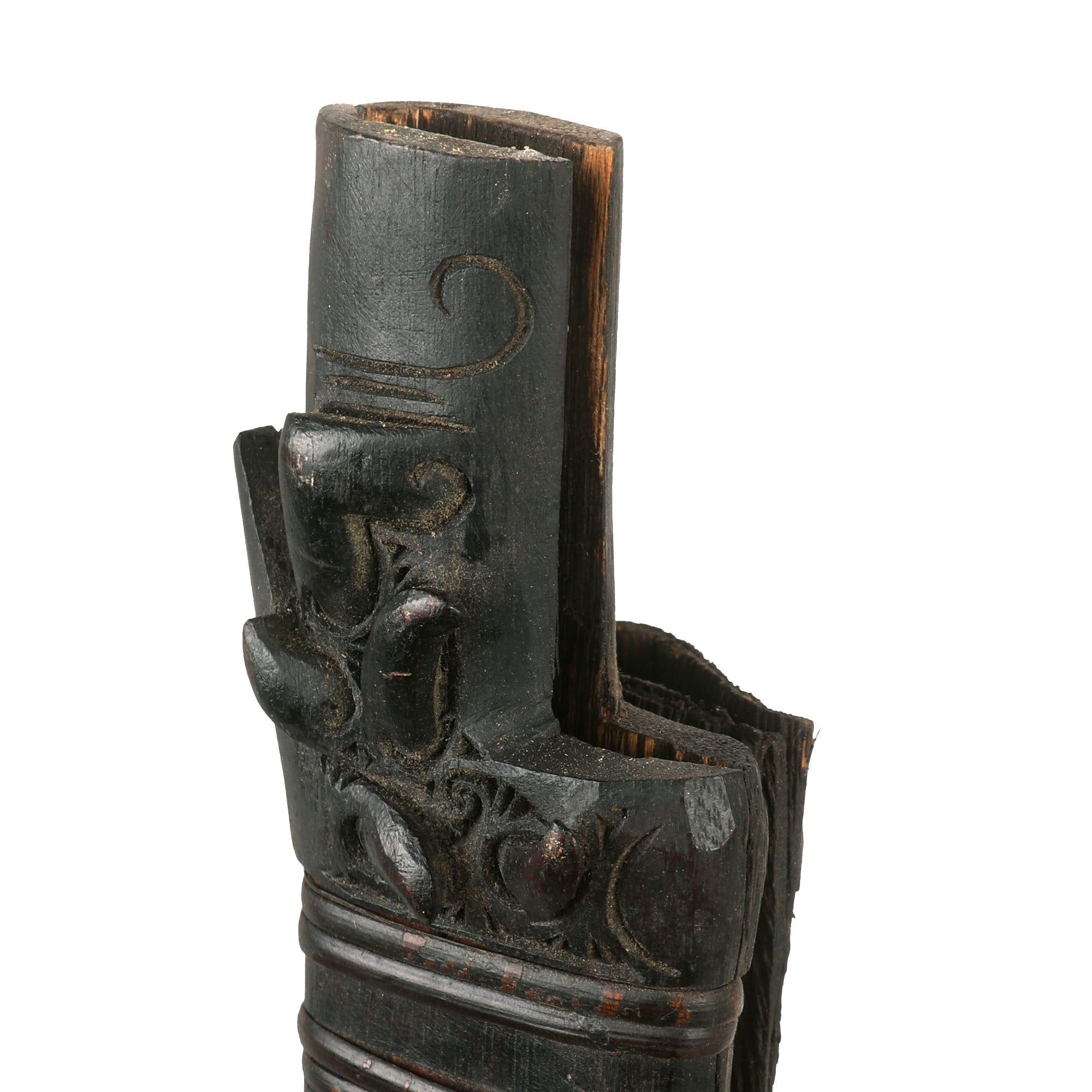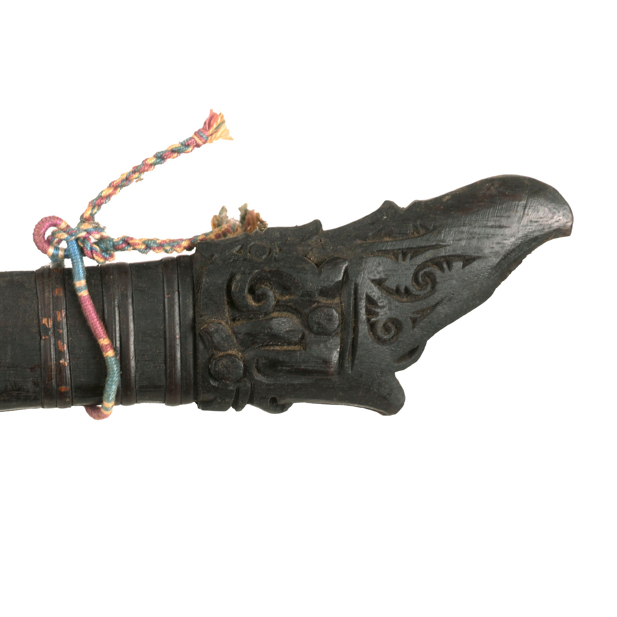 This is truly a wonderful, yet morbid item from the famous headhunters of Borneo. Comes more than ready for further research and display! We have had a few of these before, but never one with the scabbard and knife!