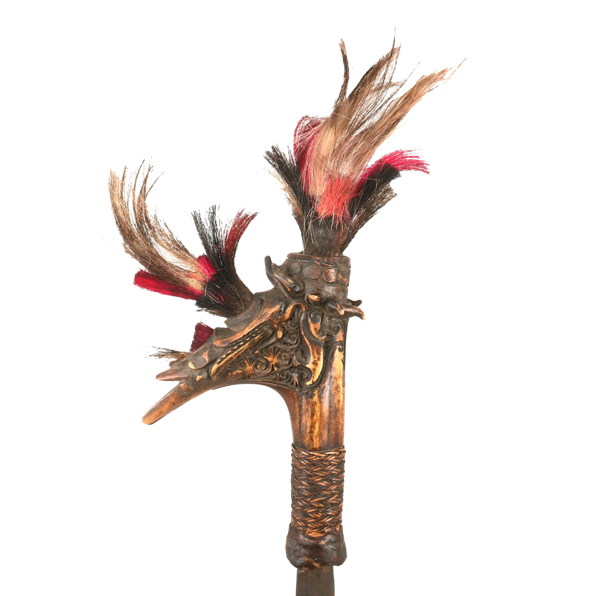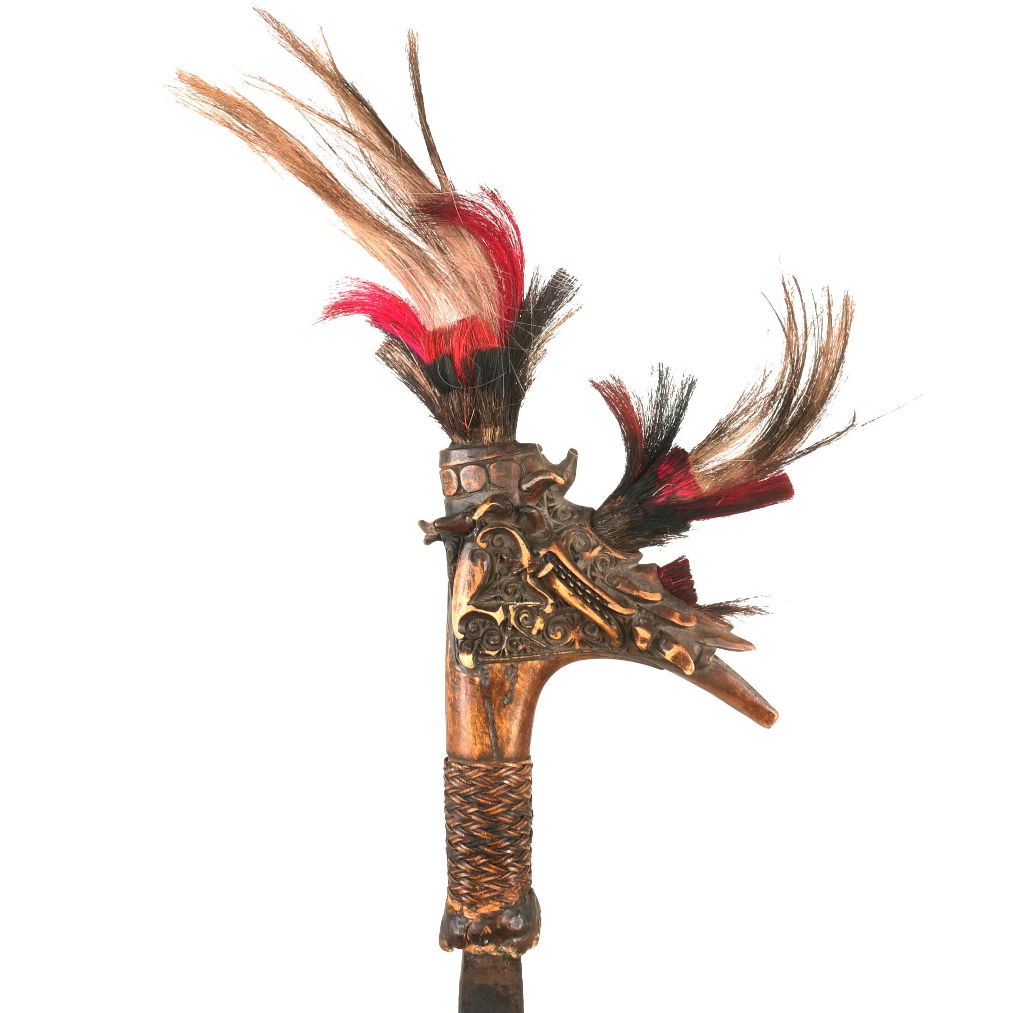 Associated with the Headhunting Ceremony, where people would gather to attack other tribes, and gather heads to be used in various festivities, Mandau is both a work of art in itself and a weapon.
