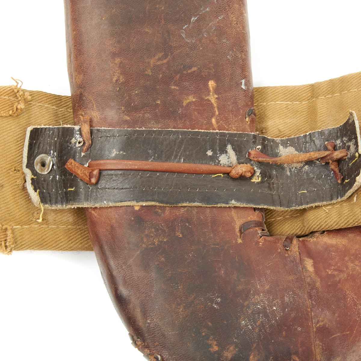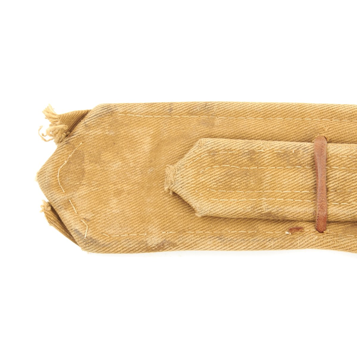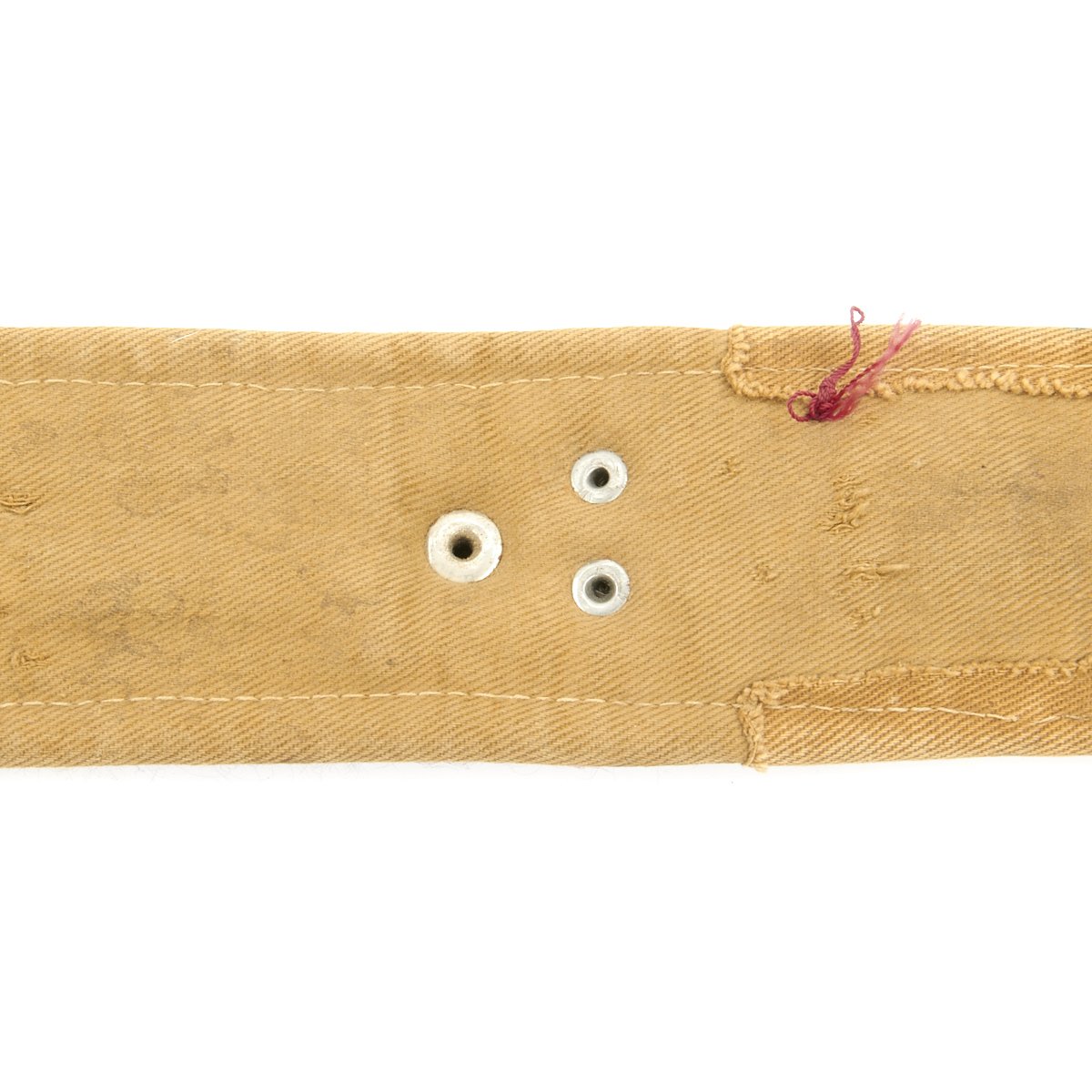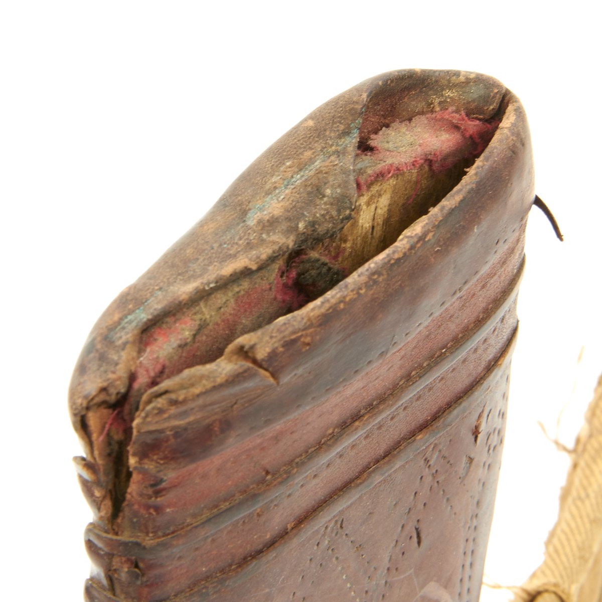This example, which is extremely clean, still has its scabbard of leather covered wood, together with its embroidered waist belt. The belt shows some later repairs, having been fitted with a modern belt buckle and adjustment belt, which are designed to be hidden behind the original material. Overall length of the belt is about 40 inches, and it looks like it would be adjustable from 38 to 33 inches with fastened.
