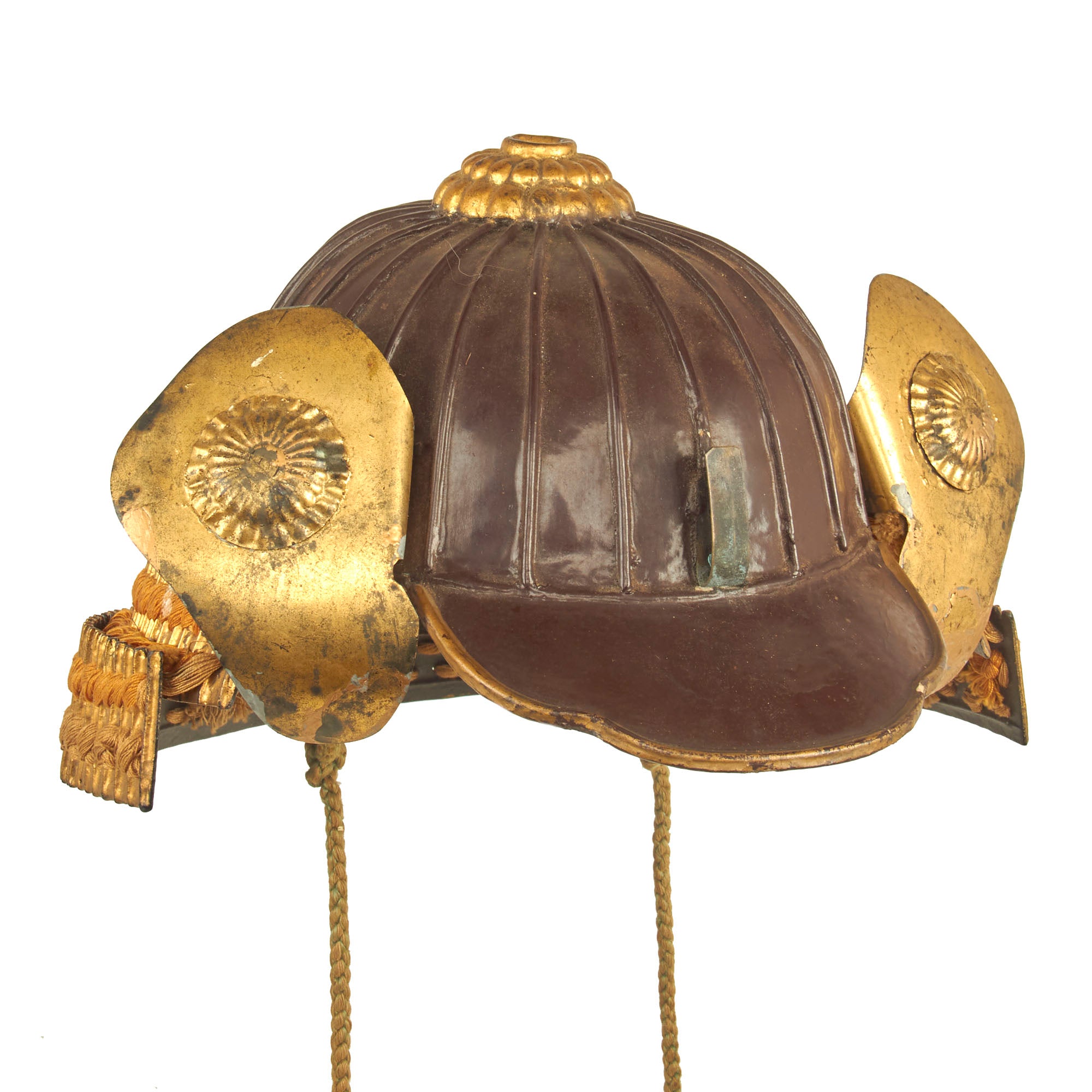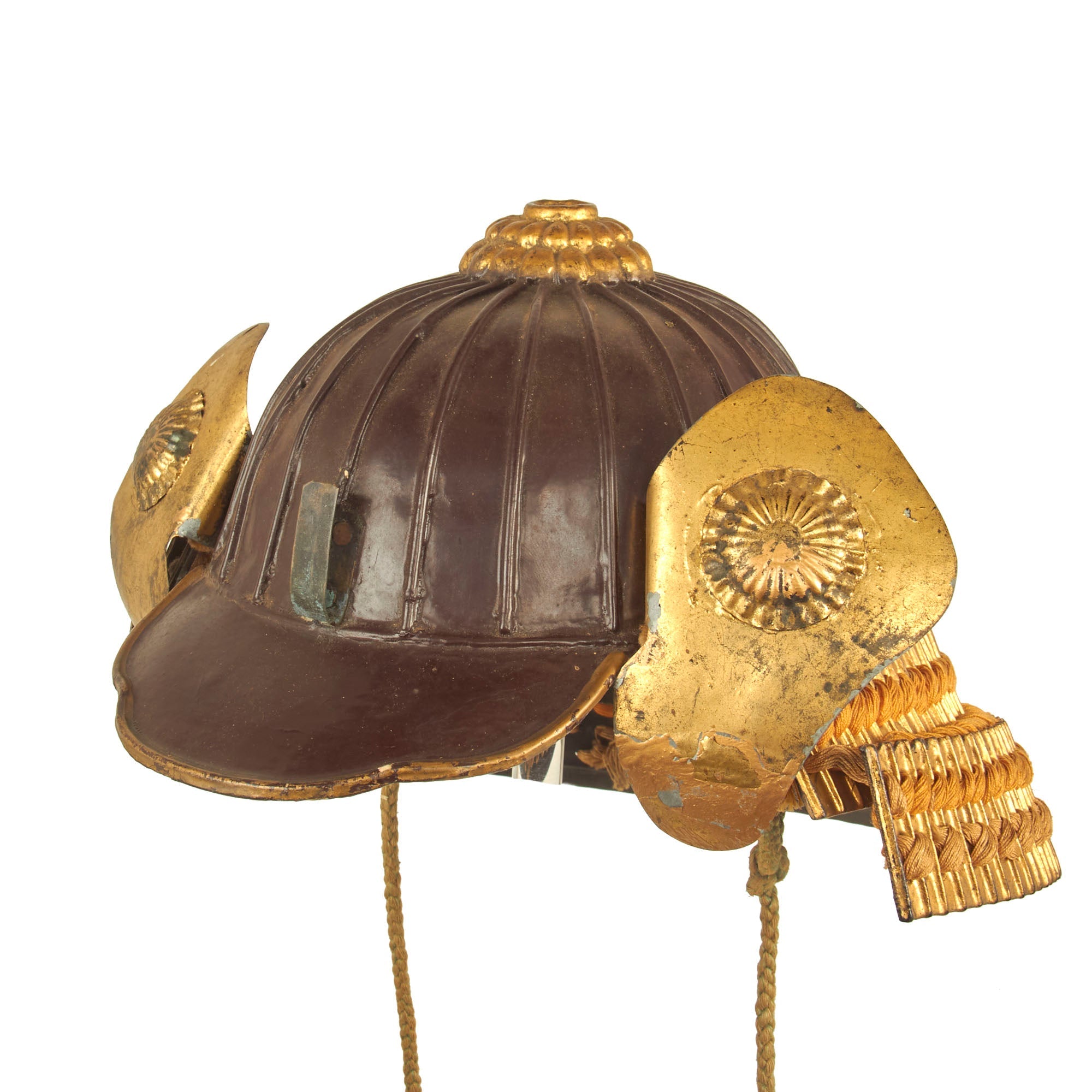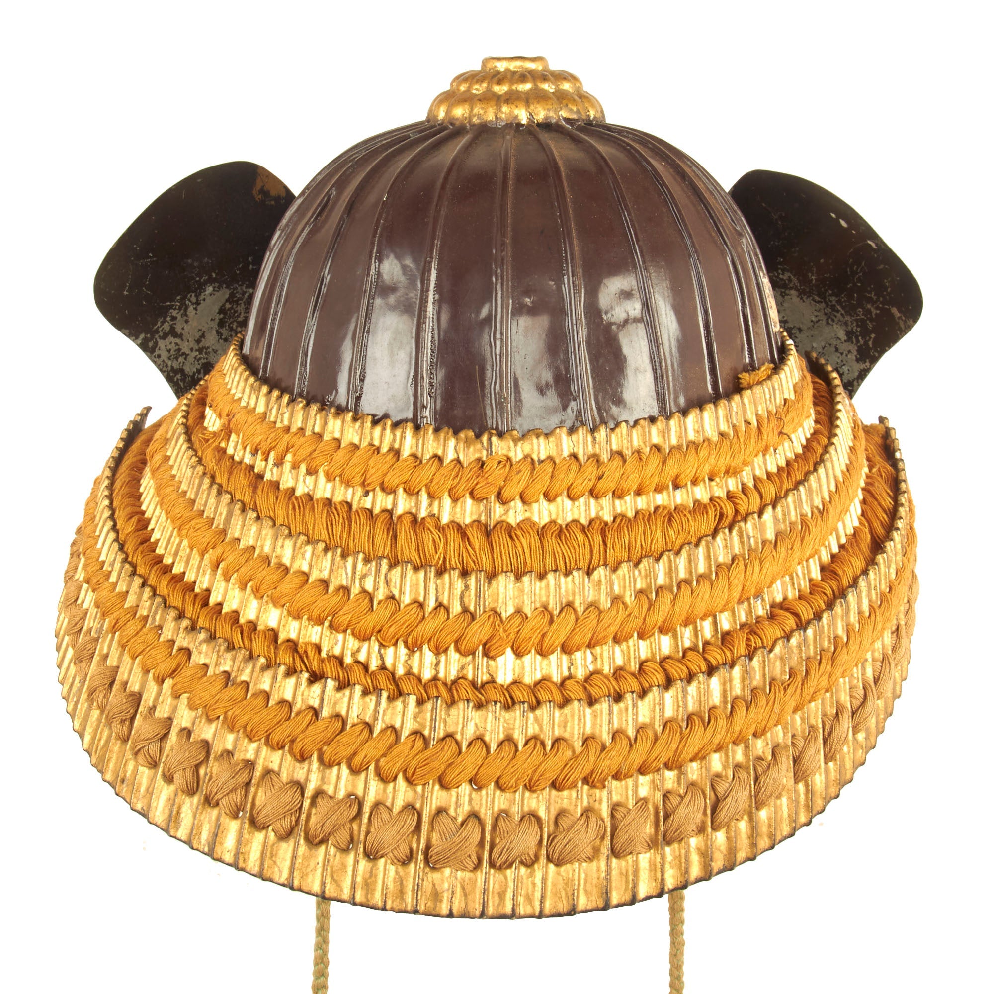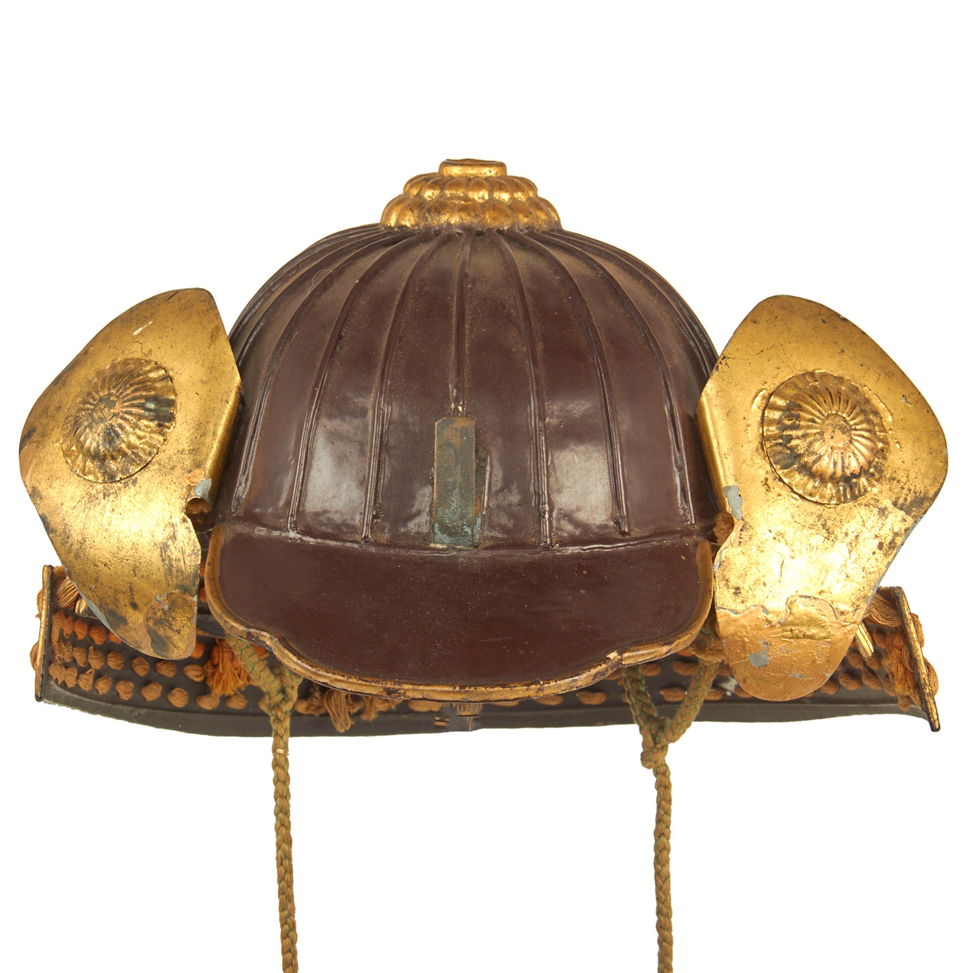 Regardless, it definitely shows very high quality construction, and the rear Shikoro, the suspended neck guard composed of multiple overlapping lames, is in wonderful condition and properly laced. All of the other components are completely correct in construction.