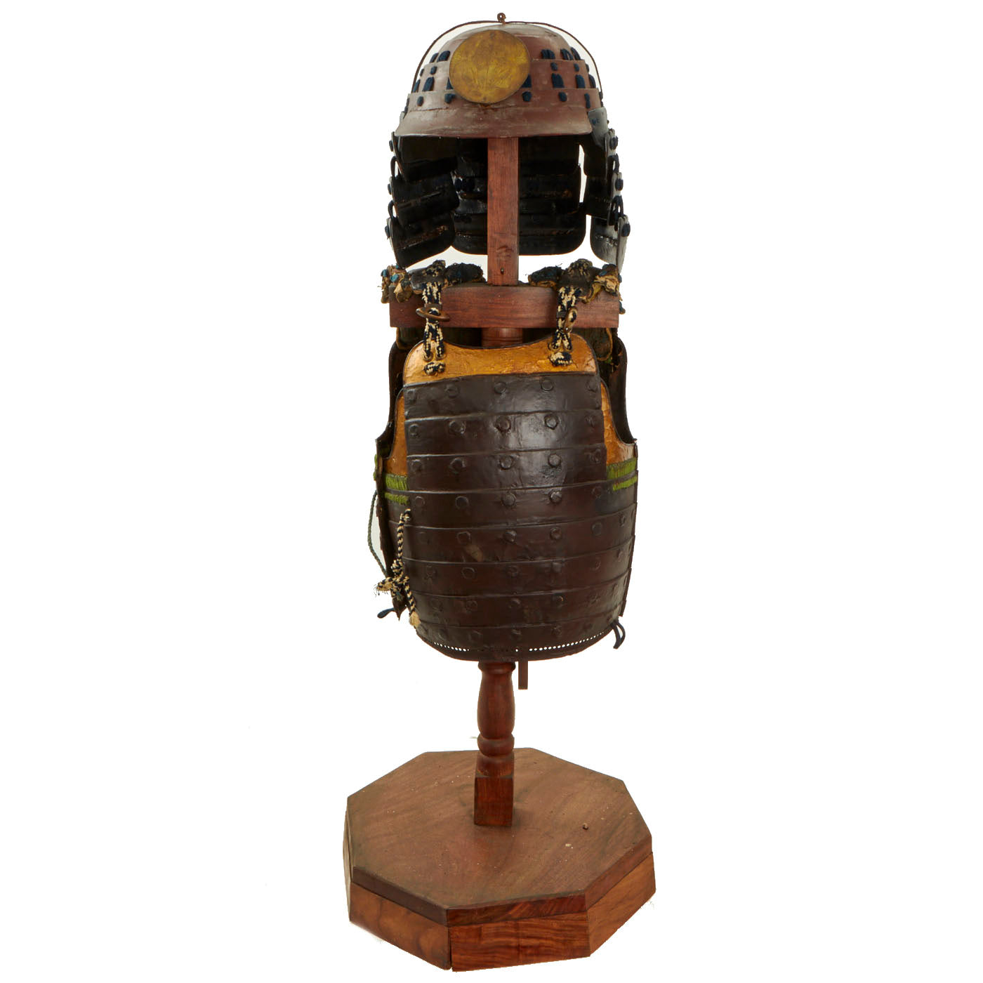 Original Item: One-of-a-kind set. Japanese armor is thought to have evolved from the armor used in ancient China and Korea. Cuirasses and helmets were manufactured in Japan as early as the 4th century. Tankō, worn by foot soldiers and keikō, worn by horsemen were both pre-samurai types of early Japanese cuirass constructed from iron plates connected together by leather thongs.
