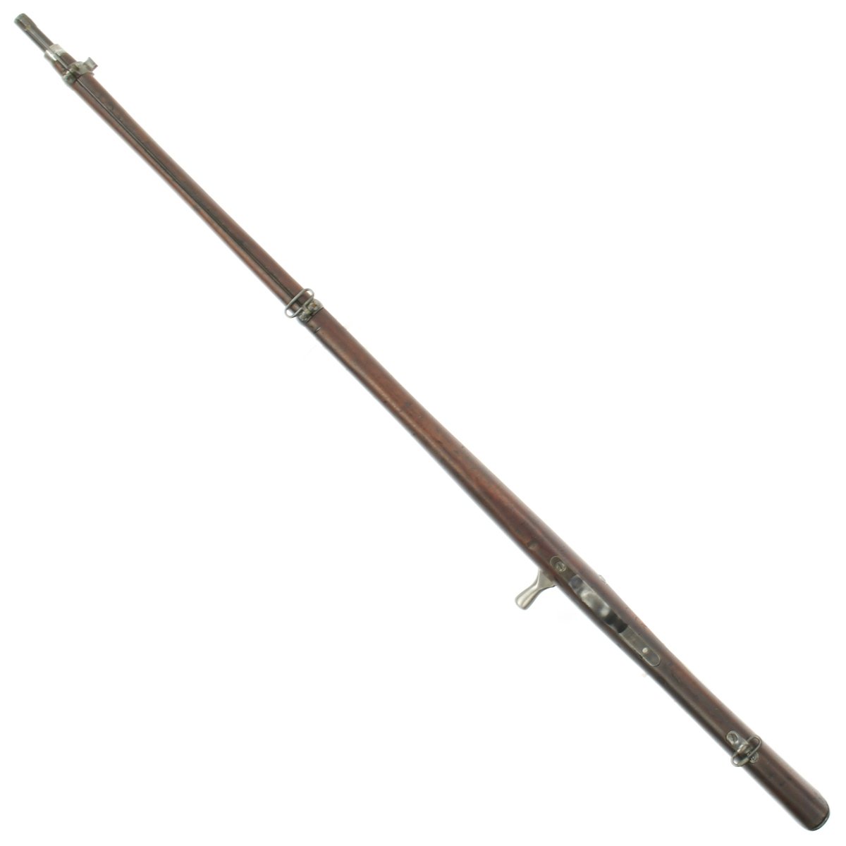 Original Item: Only One Available. The Murata rifle (村田銃 Murata jyū) was was designed by Major Murata Tsuneyoshi, and was the first locally produced Japanese service rifle. It was adopted in 1880 as the Meiji Type 13 Murata single-shot rifle. The 13 referred to the adoption date, the year 13 in the Meiji period according to the Japanese calendar, and these were marked 十三 (juu-san / 13) on the receiver. This was Japan's initial breech loading Rifle completely designed and manufactured since opening its borders to the Western World in the Victorian era. Superficial improvements such as components, bayonet lugs, and minor configurations led to the redesignation of the Type 13 to the Type 18 rifle in 1885, and these were marked 十八 (juu-hachi / 18) on the receiver instead.