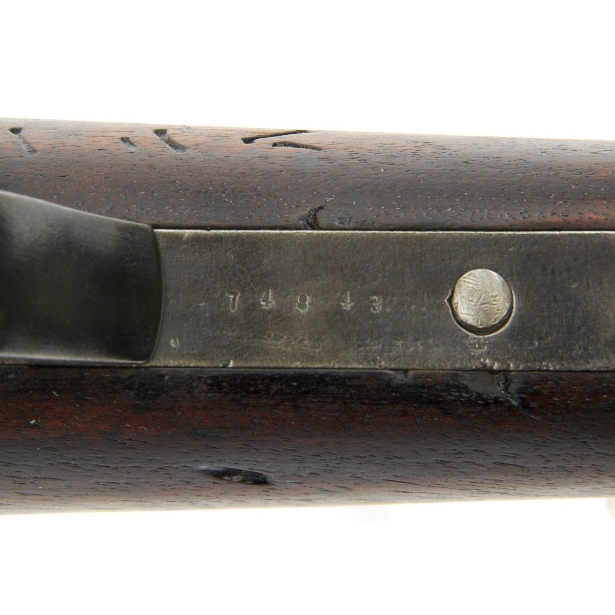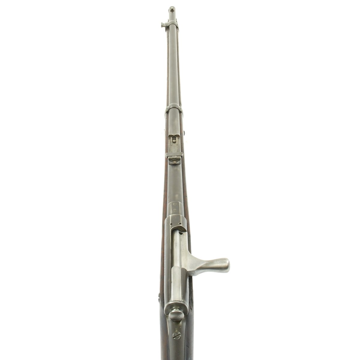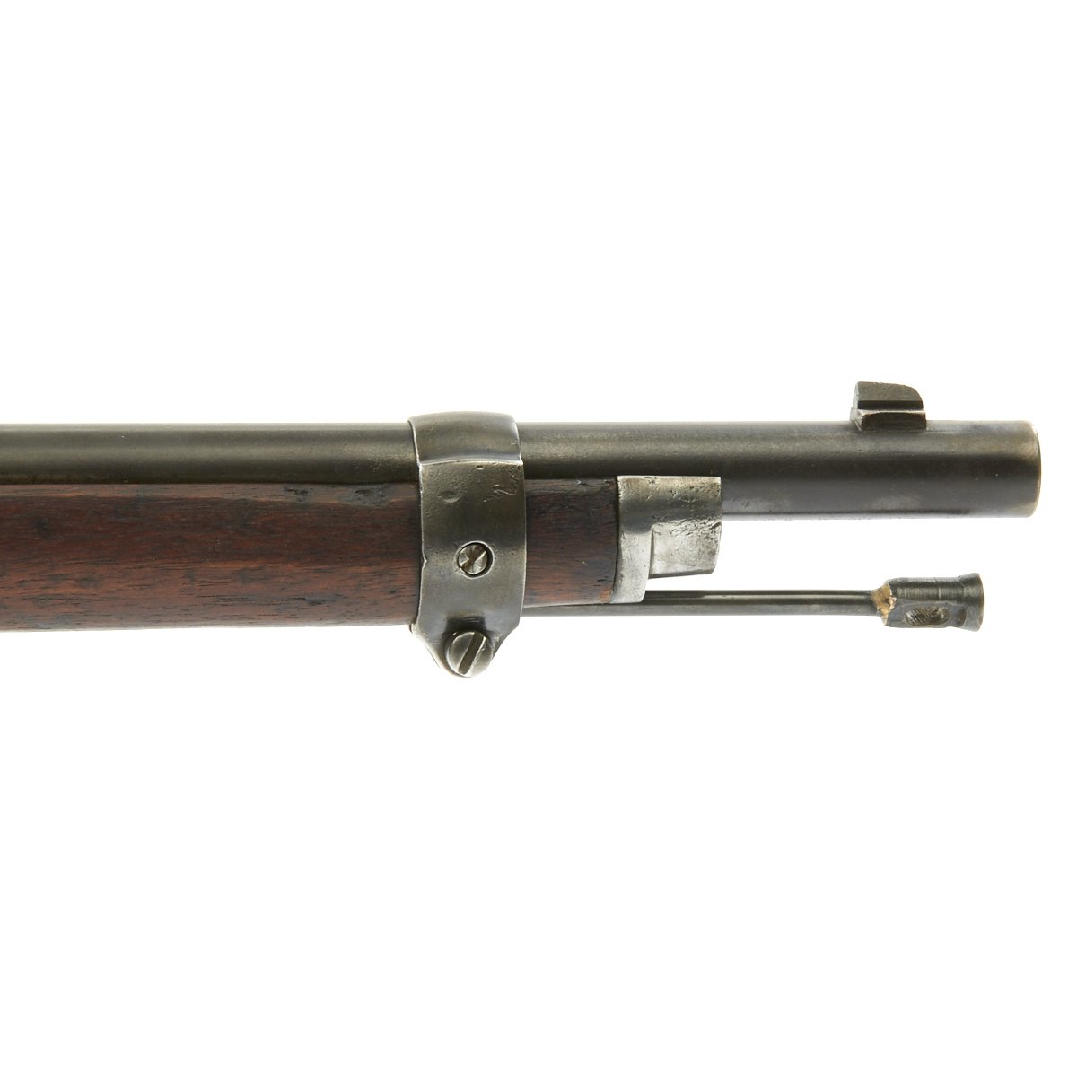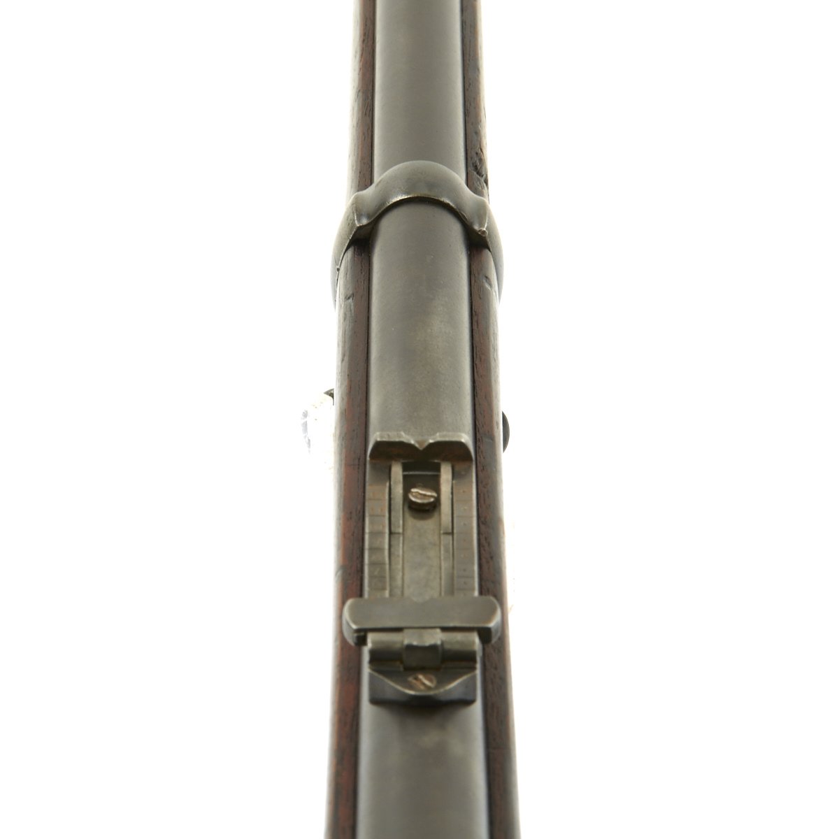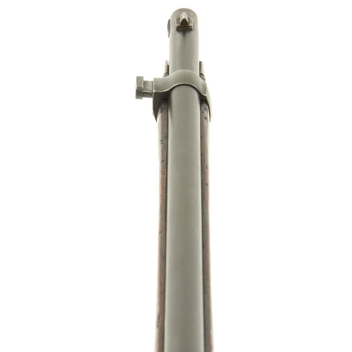 Action is tight, though it does stick a bit, typical of a rifle of this age and condition. The bore shows clear lands and grooves, however it is mostly dark, indicating that this rifle was not cleaned properly of the fouling from propellant. Cleaning rod is present, something that we do not often see.