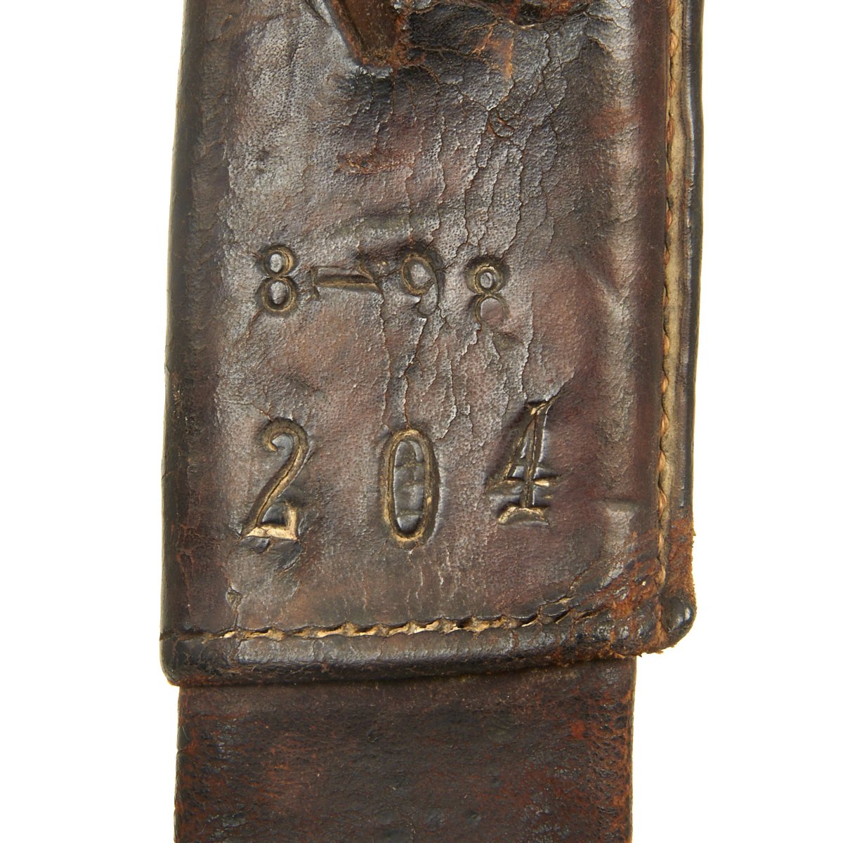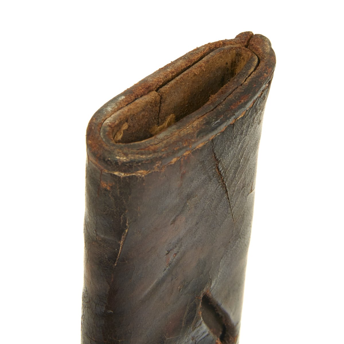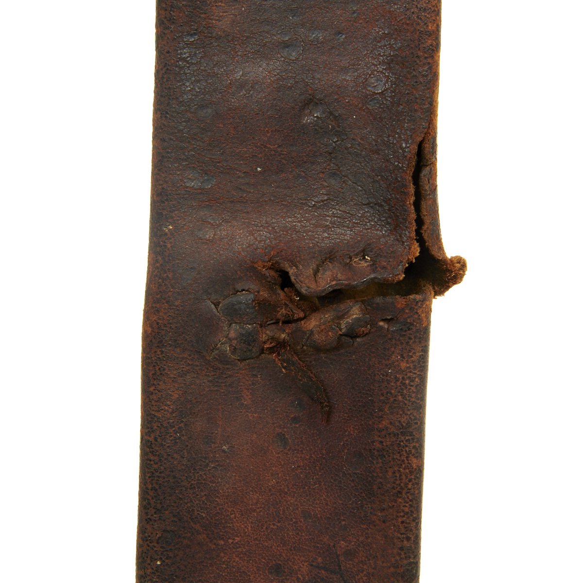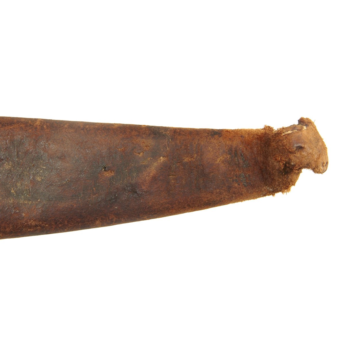 Original Item: Only One Available. This is a most unusual Infantry sidearm we've not encountered before. It features a French style 1822 brass three branch guard surrounding a ray skin covered and brass wire bound grip. The "cutlass" style unfullered blade is 28" in length. Overall length is 33". The most interesting feature is the addition of a brass thumb rest to the upper side of the grip directly behind the guard. The Cutlass comes with typical French brass mounted hard leather scabbard.
