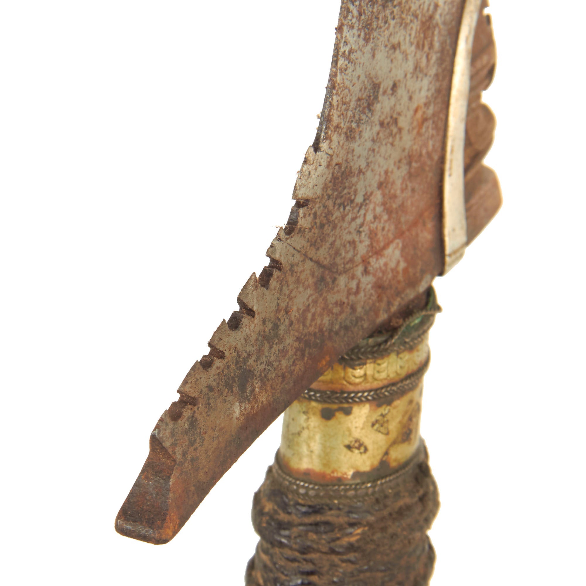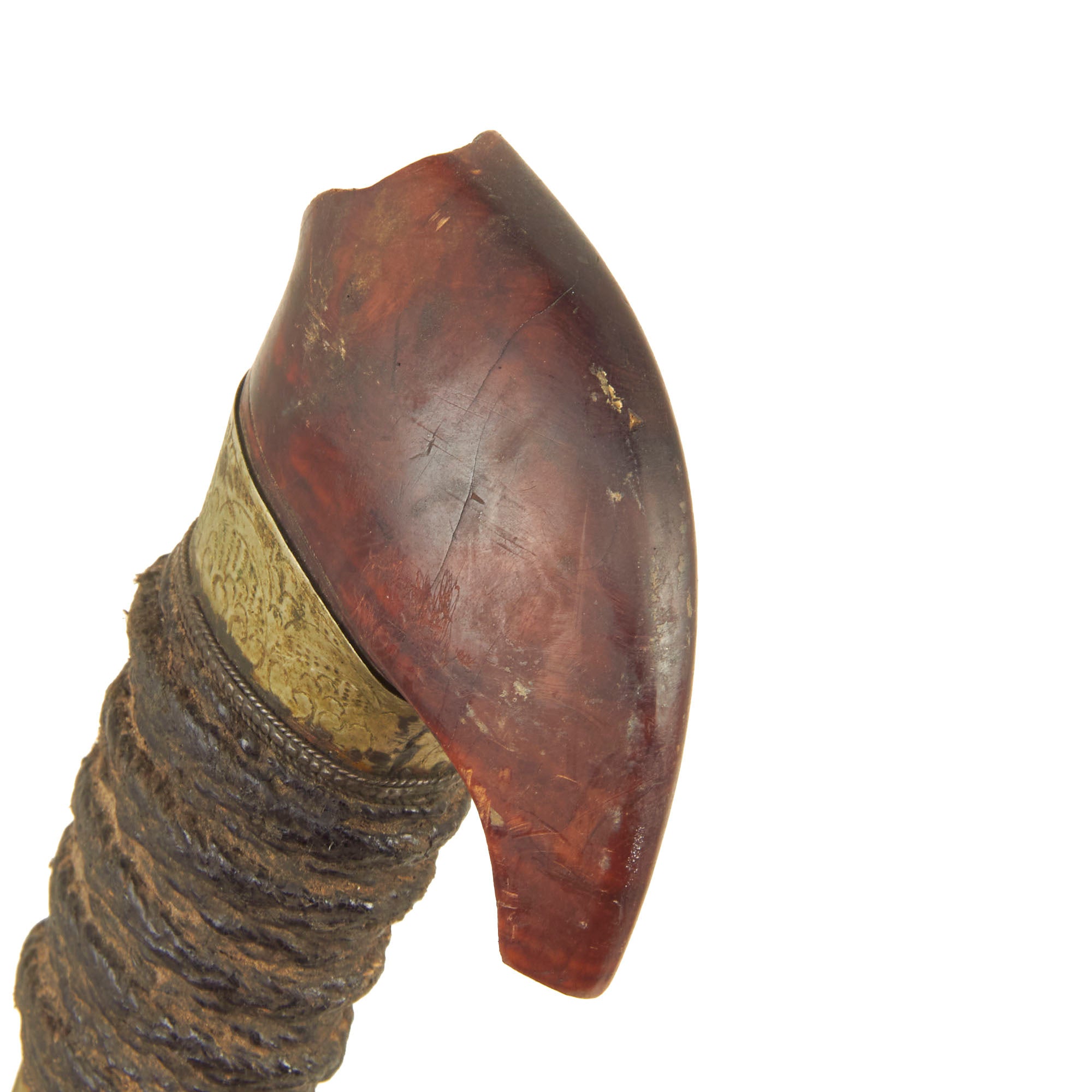 Original Item: One Only. This is an excellent Kris style short sword from the Philippines, as used by the Mor people. The collective term Moro people or Bangsamoro people refers to the 13 Islamized ethnolinguistic groups of Mindanao, Sulu, and Palawan. They had fought against the United States during the Philippine-American War of 1899 - 1902, in which the Moro tribe rebelled against American rule. The insurrection had been going on since the early 1890s, when the Spanish still claimed the Philippines as their Colony. However, after their defeat by the United States in the Spanish American War, the Philippine islands were ceded to the U.S.. Most of the Moro tribe actually continued the struggle until their final defeat in 1913.