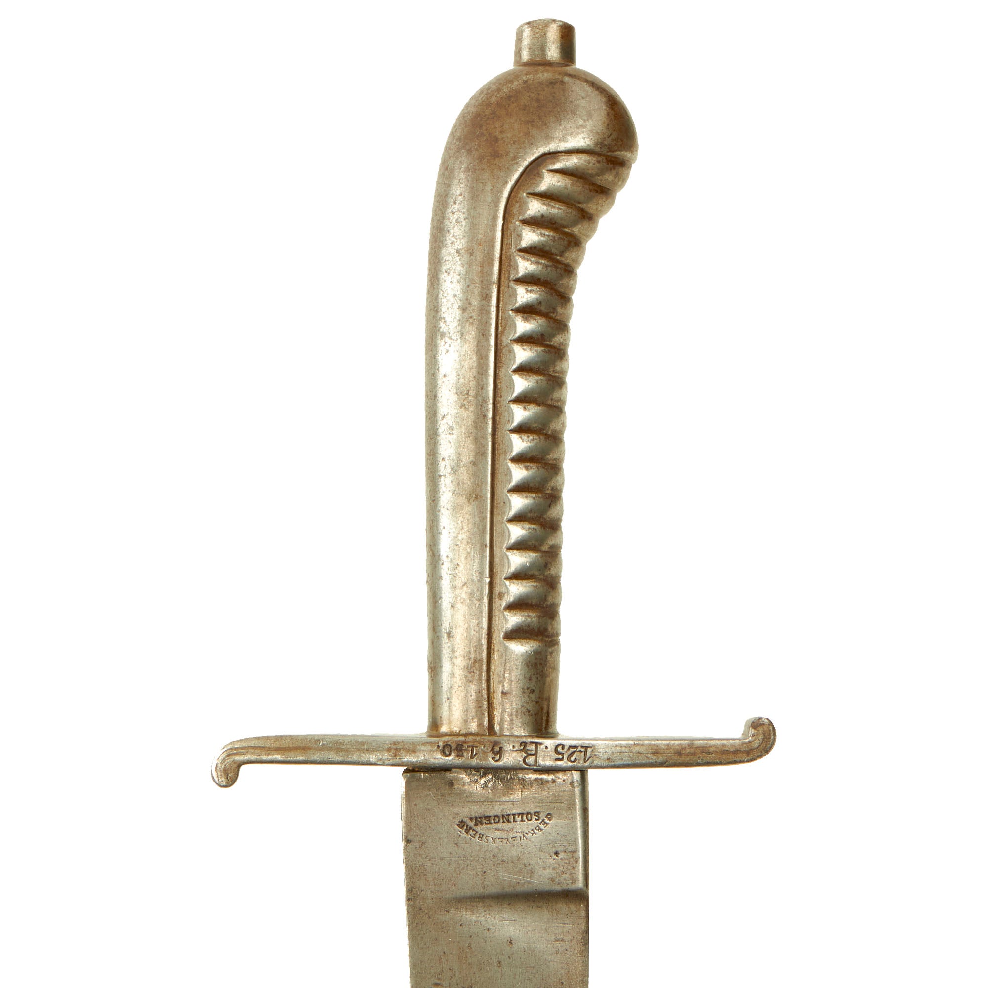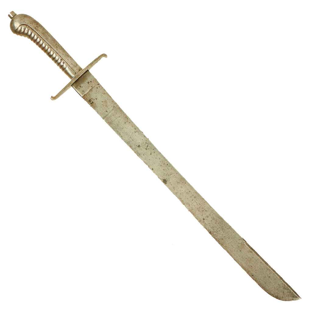 Original Item: Only One Available. These are the traditional Sidearms of SAXONY, one of the independent German City States that existed prior to the unification of Germany under Bismark in 1871. Each State had it's own characteristic sidearms, this Faschinenmesser Sword was one used by Saxony. The 24 long sword has a large Cleaver shaped blade of 18 1/2" mounted onto an all STEEL ribbed grip bag shaped hilt with a STEEL "S" cross guard.