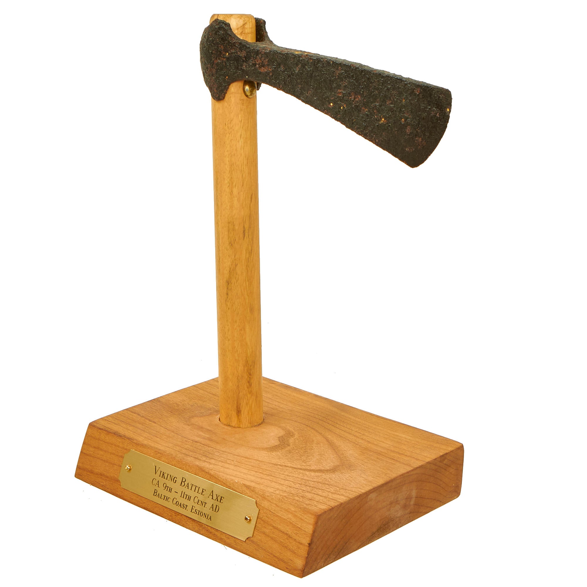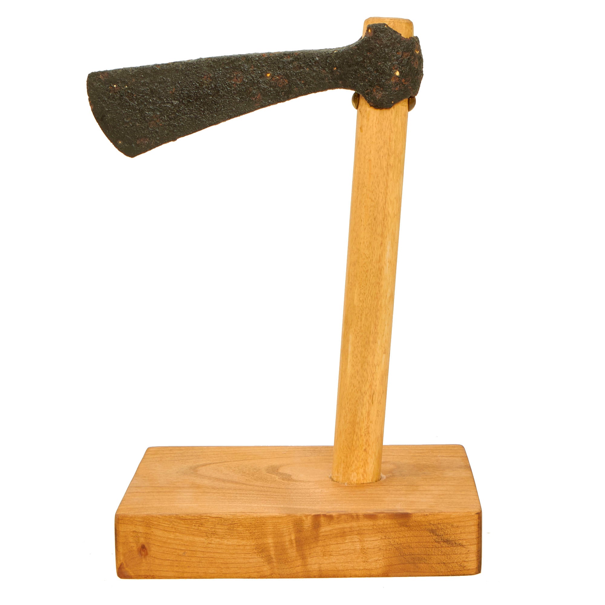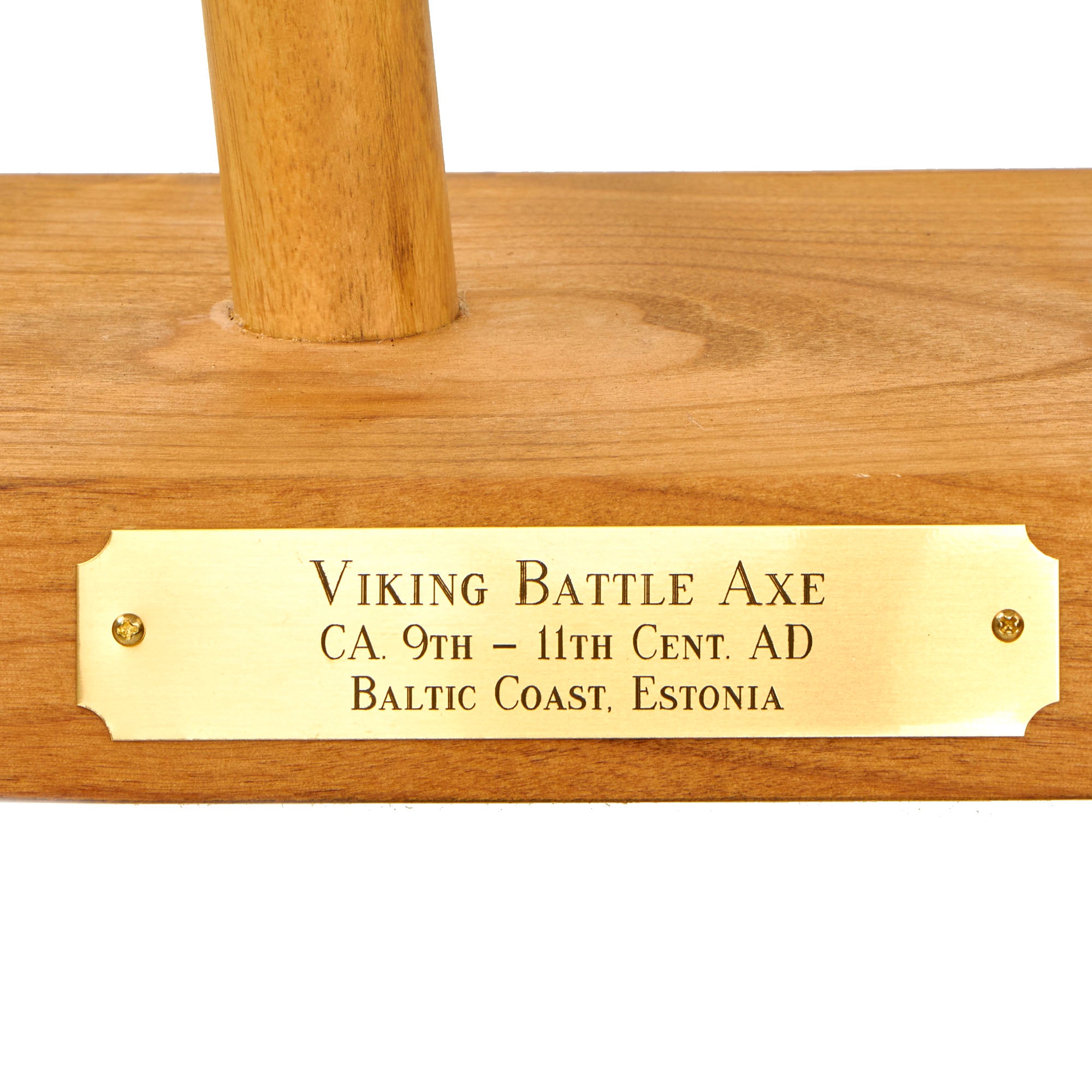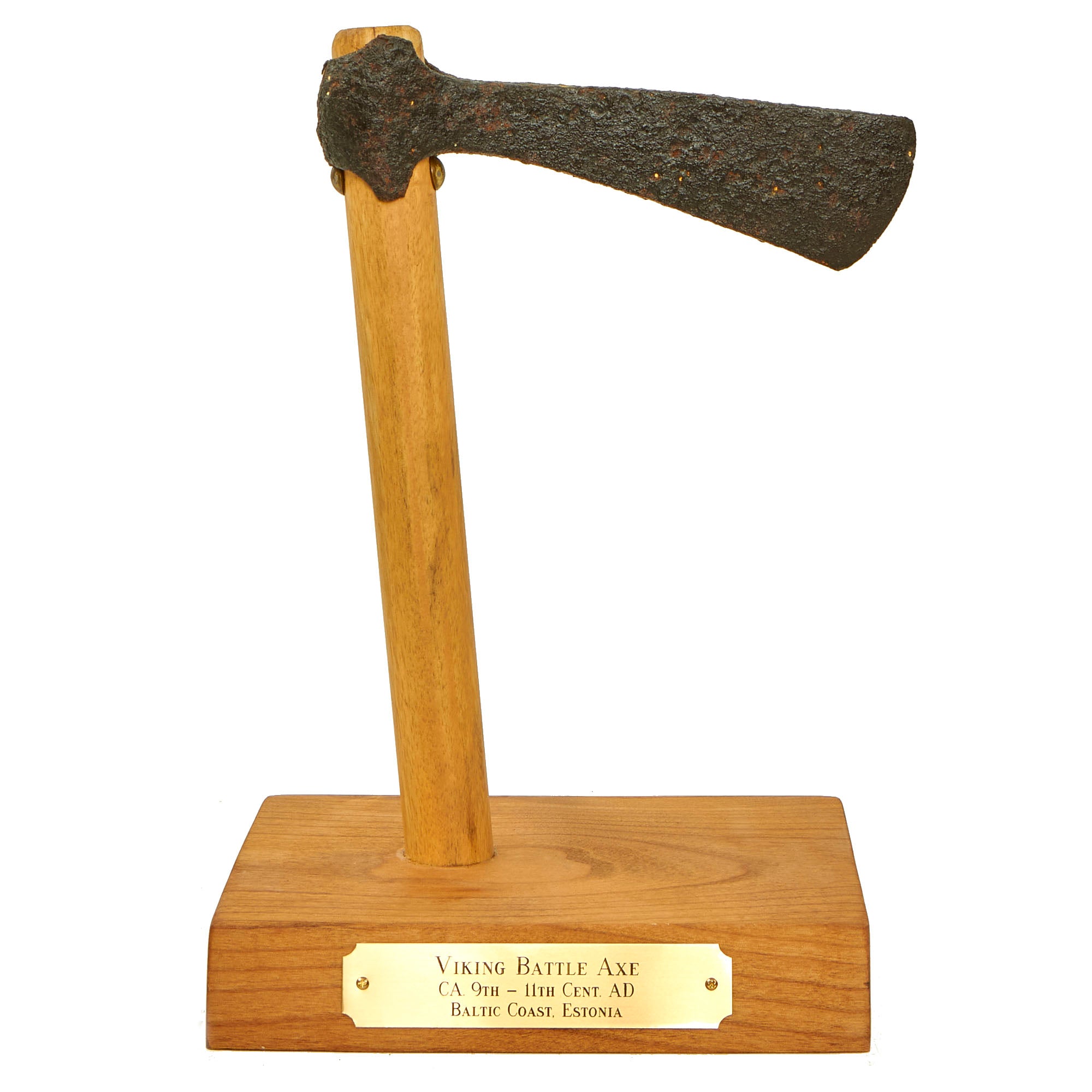 This is a very nice smooth Viking axe head with graceful lines and traces of the original edge. A professional archaeologist cleaned this axe and treated the iron against further corrosion. Like many Viking artifacts, this axe was found by a farmer while cultivating crops. Dug up with bronze bracelets and other personal metal items.