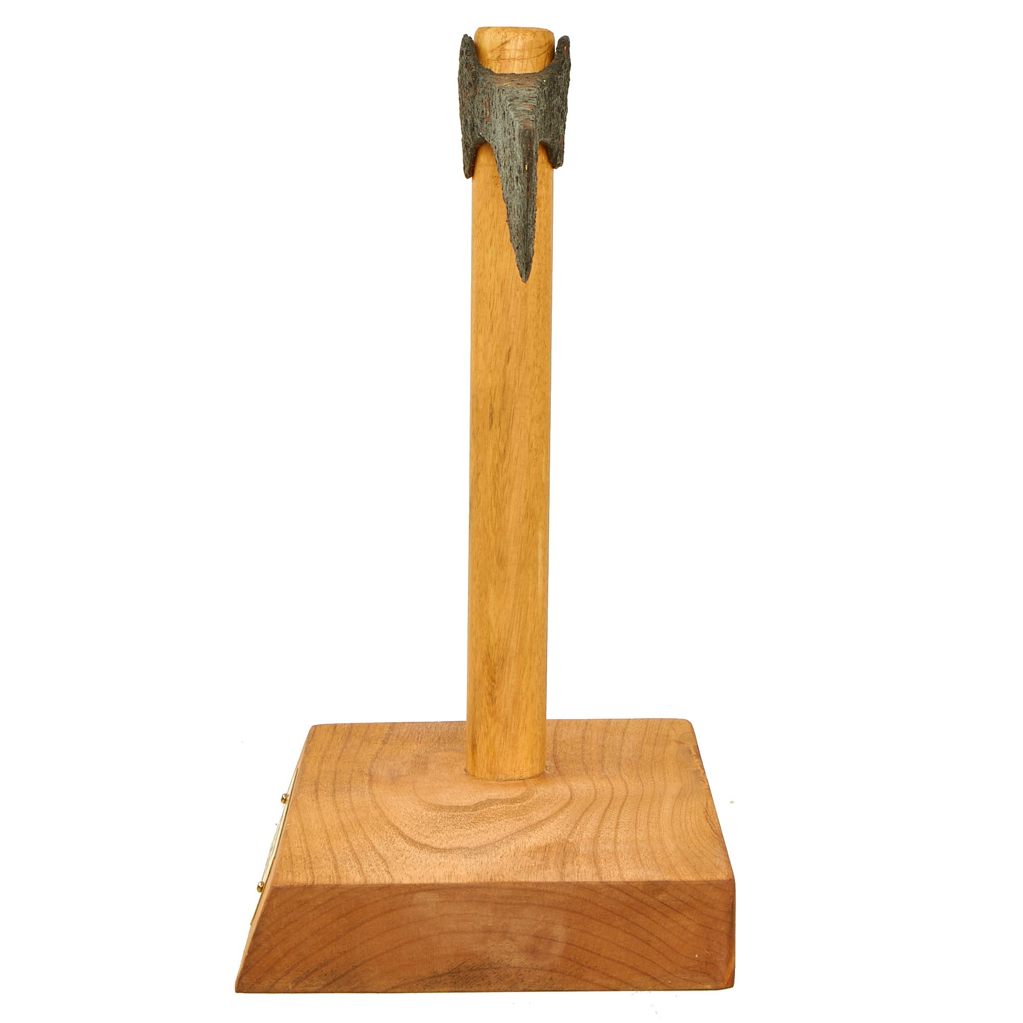 This fine example is mounted on a wood display stand with an engraved brass plaque that reads: