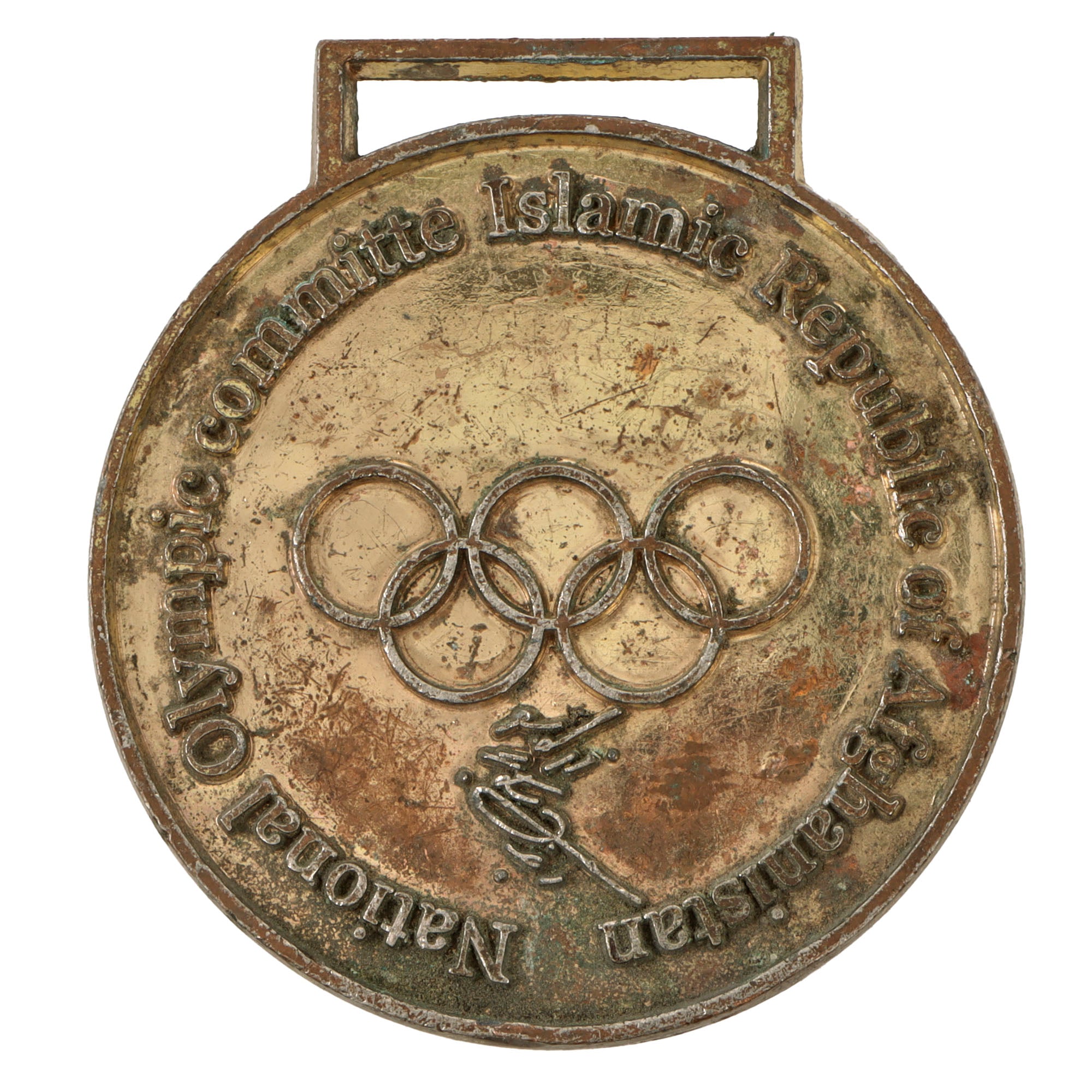 - National Olympic Committee of the Islamic Republic of Afghanistan Medal planchet, heavy wear. Very interesting piece.