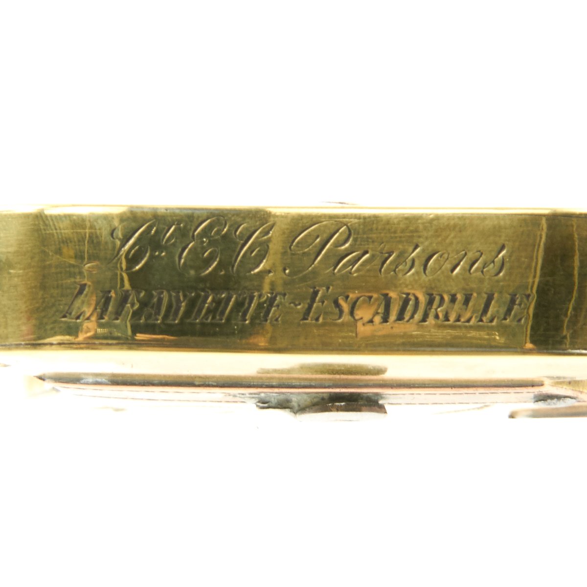 Internet research tells us EDWIN CHARLES PARSONS was born in 1892 and joined the French Air Effort in early 1917 where he was credited with ONE KILL. After WW1 he joined the F.B.I. for a couple of years then started his own Detective Agency. In 1934 he joined the U.S. NAVAL RESERVE and ended up a REAR ADMIRAL at the end of WW2. He wrote a book I FLEW WITH THE THE LAFEYETTE ESCADRILLE in retirement and died in 1968.