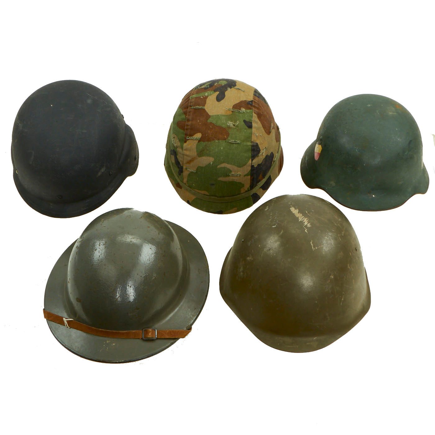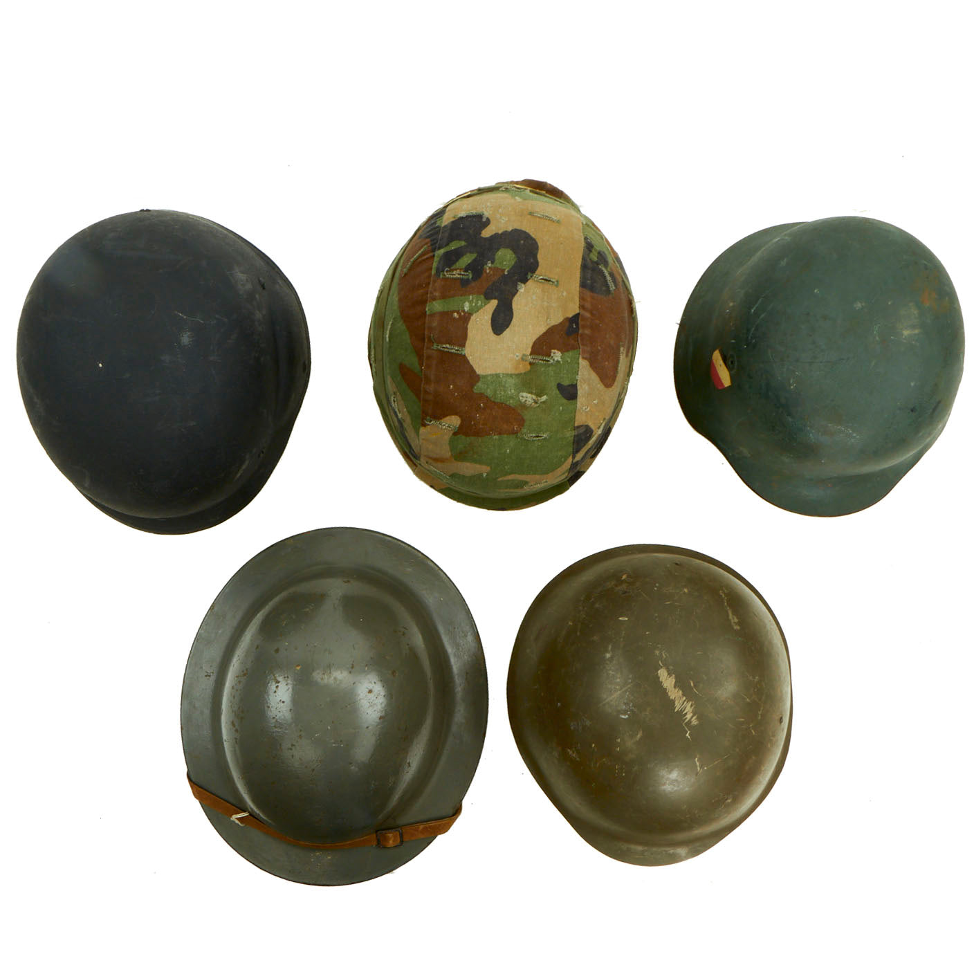 Original Items: Only One Set Available. This is a very nice collection of helmets from various time periods and countries. All helmets are complete with liners and are offered in great condition. This is a wonderful lot to pick up if you are looking to either start collecting helmets or are just wanting to add these really nice examples to your already existing ones.