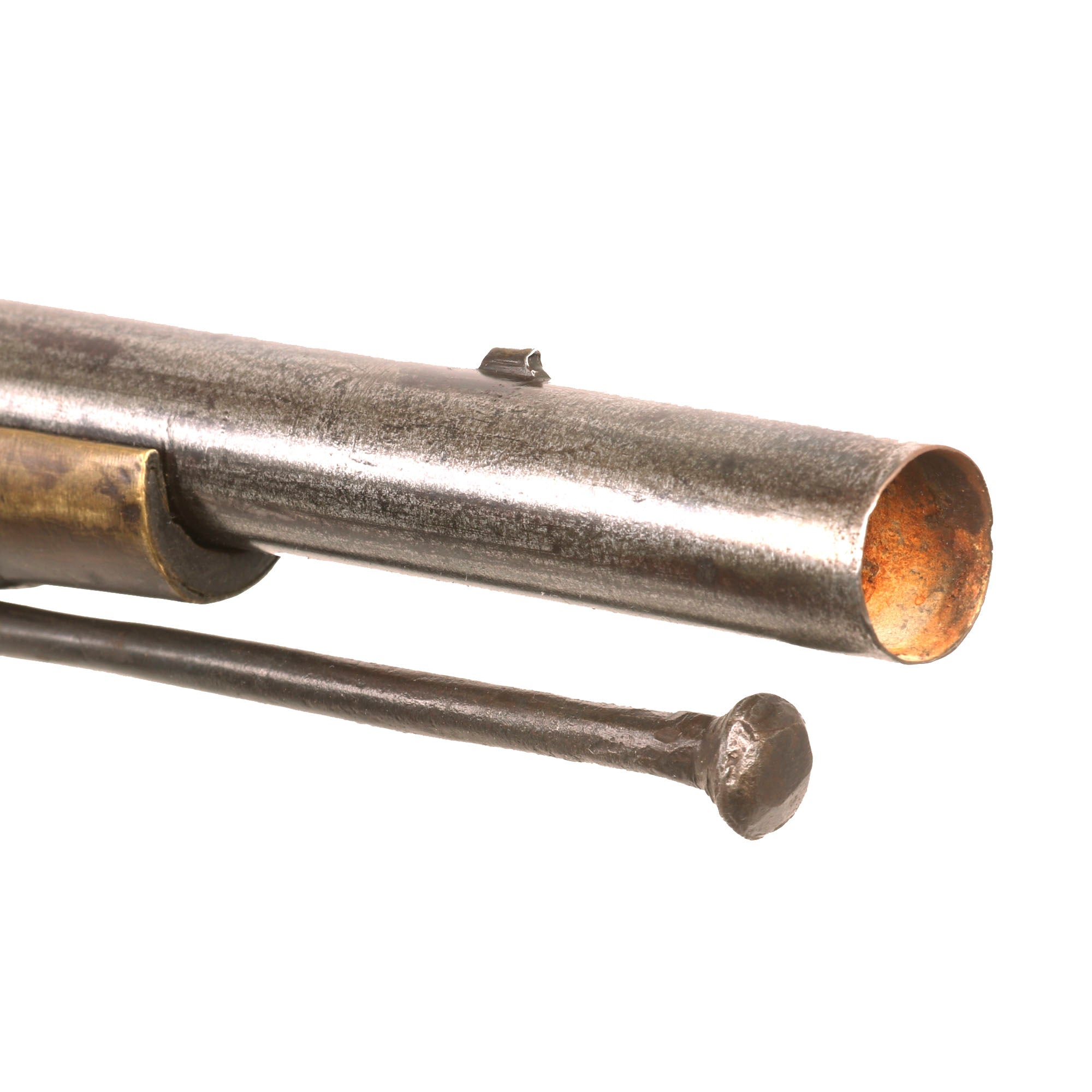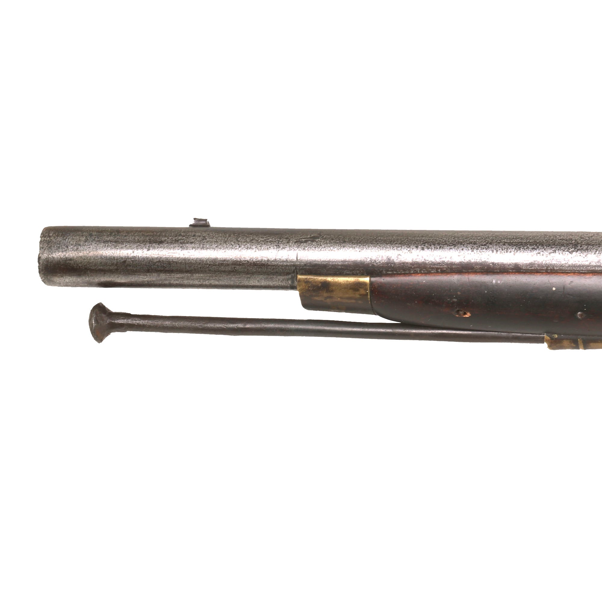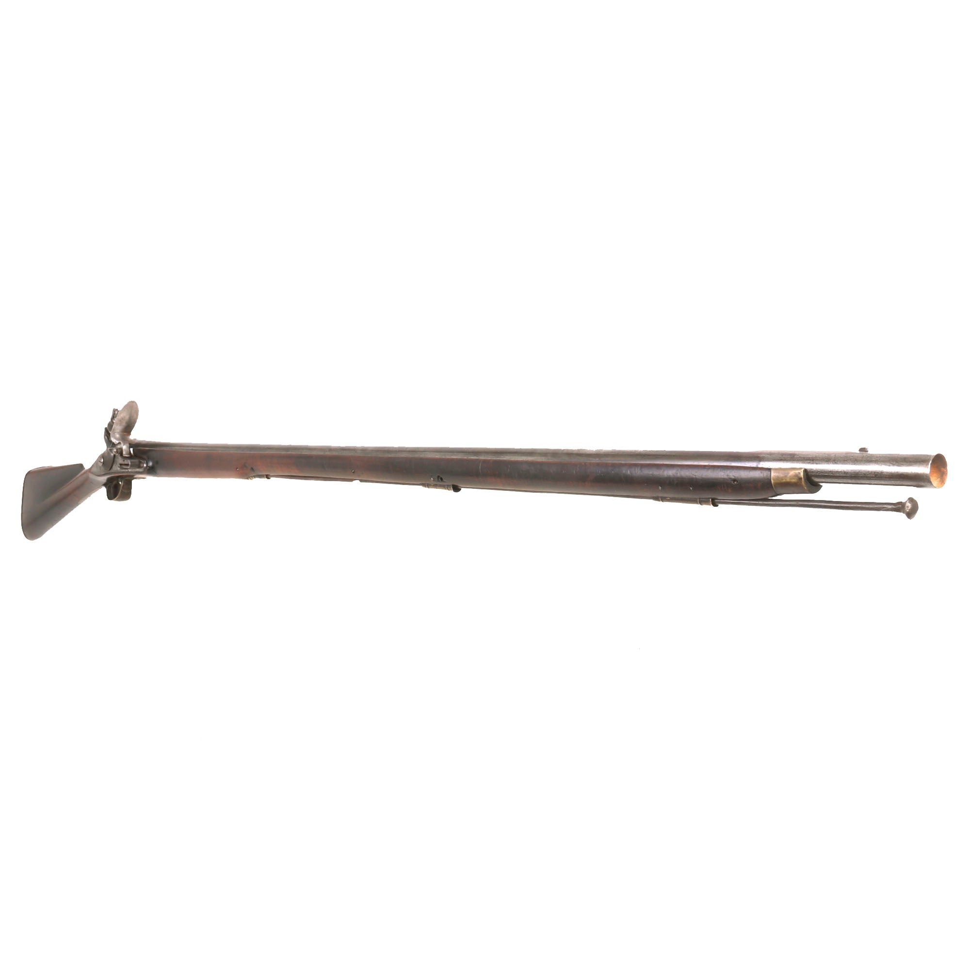 Original Item: One of a Kind. This is a very interesting British Long Land Pattern Brown Bess Musket, the first of many revisions of the Flintlock musket that would serve the British Empire for over 100 years! First fielded in 1722, it would be the standard musket of the line during many 18th century conflicts, before finally being replaced by the P-1740 "Short Land Pattern" in the infantry beginning in 1768. It featured a 0.75" caliber 46 inch long barrel and overall length of 62.5 inches, definitely a substantial arm by today's standards. Many of these would later be updated by being shortened or converted to percussion, but this example still has the original 46" barrel in flintlock. Many of these were still in use during the U.S. Revolutionary War, and as the Regiment it is marked to took part, there is a very good chance it did as well!