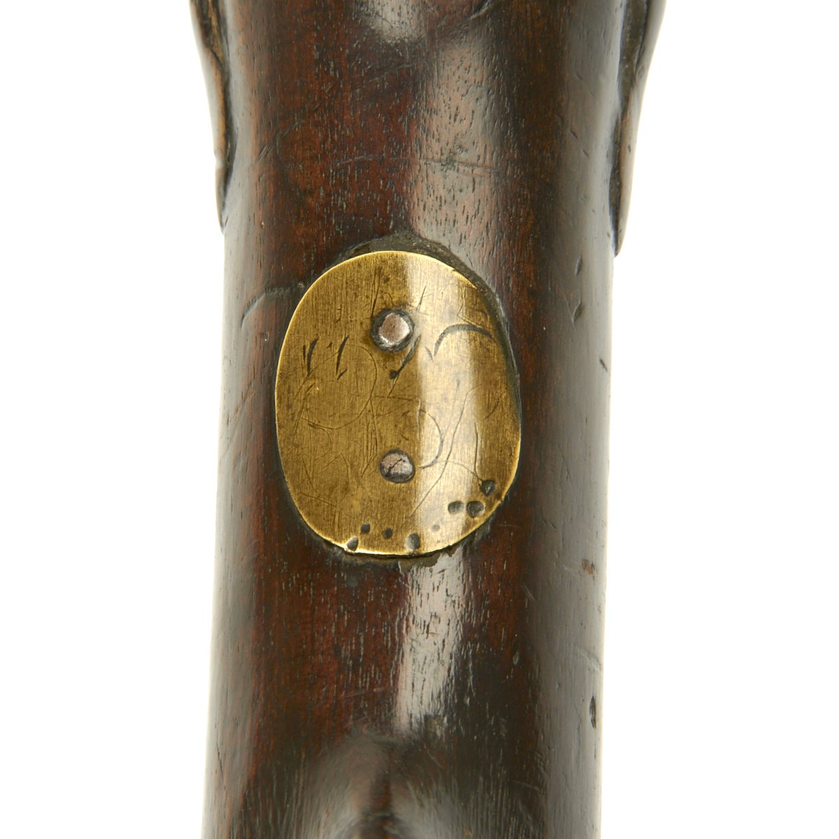 The musket is .75" caliber with a 39" smoothbore barrel. It features all brass mounts and measures to an overall length of about 53.5. There is an identical example pictured on page 122 of GEORGE C. NEUMANN’S book BATTLE WEAPONS OF THE AMERICAN REVOLUTION.