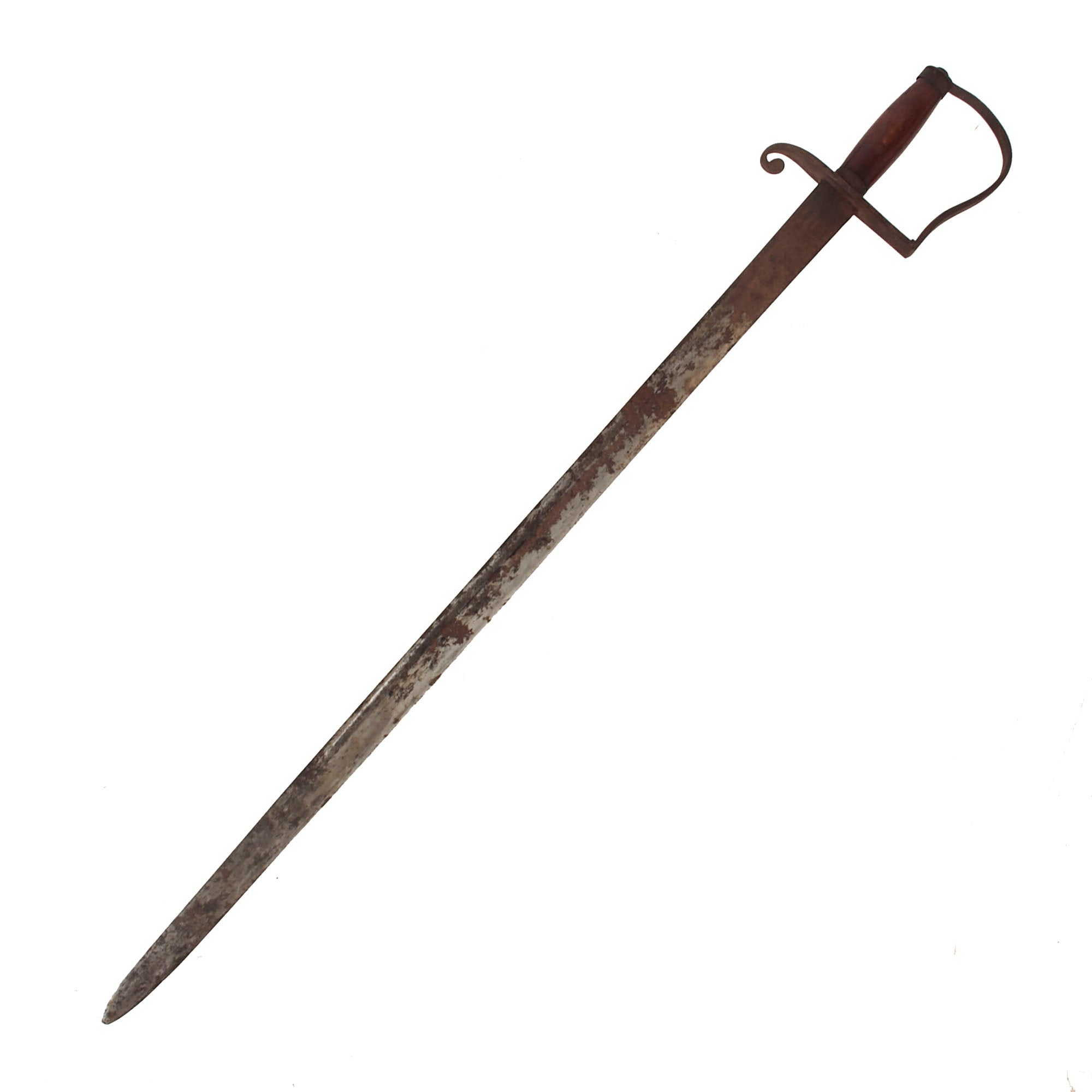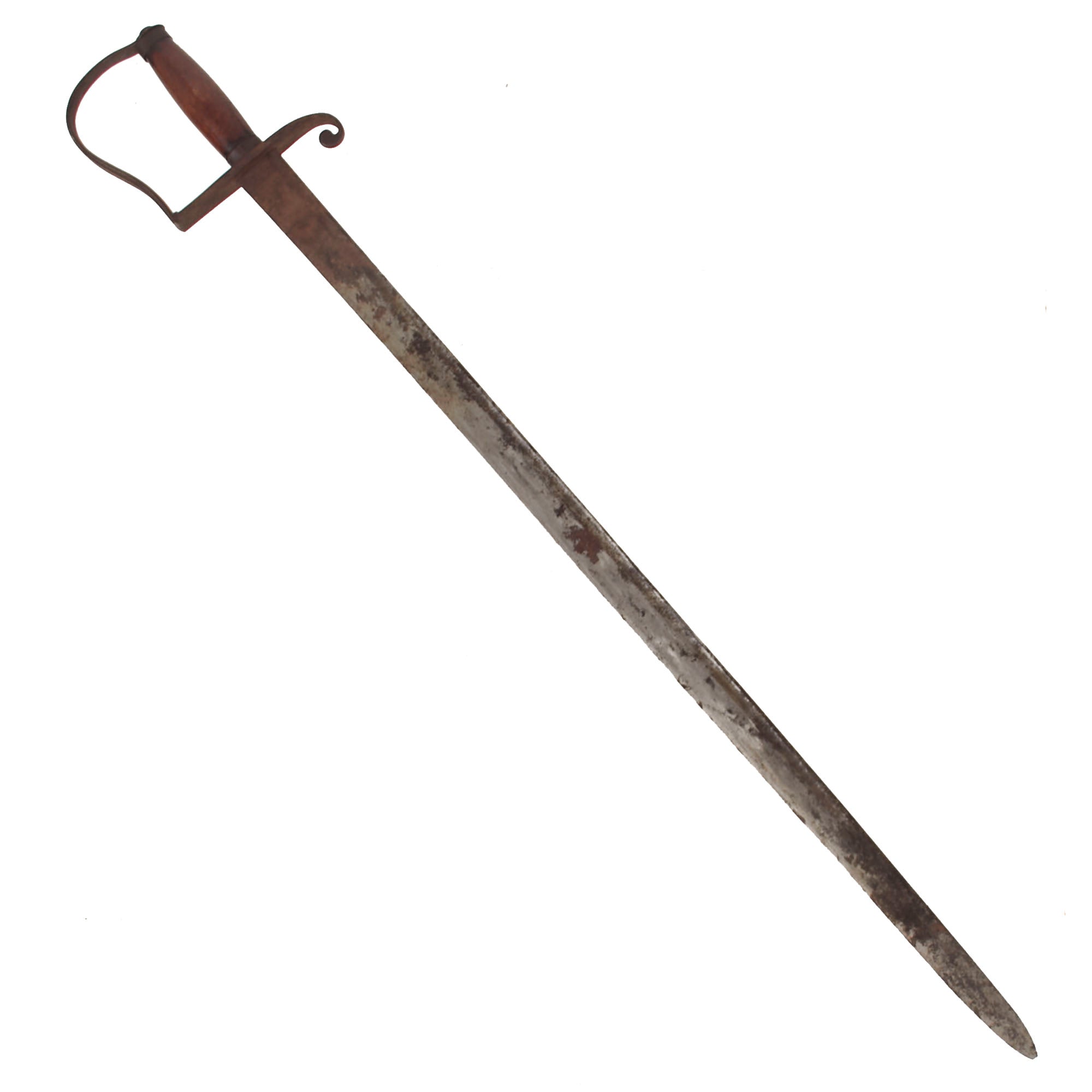 Original Item: Only One Available. This is a wonderful, solid example of an Early American-made Hanger Sword as used by Continental soldiers during the American Revolutionary War and afterwards. The design is very simplistic but very eminent of the period, and is entirely correct for the Revolutionary War. This example has a British-marked blade, so it was likely remounted from a British sword.