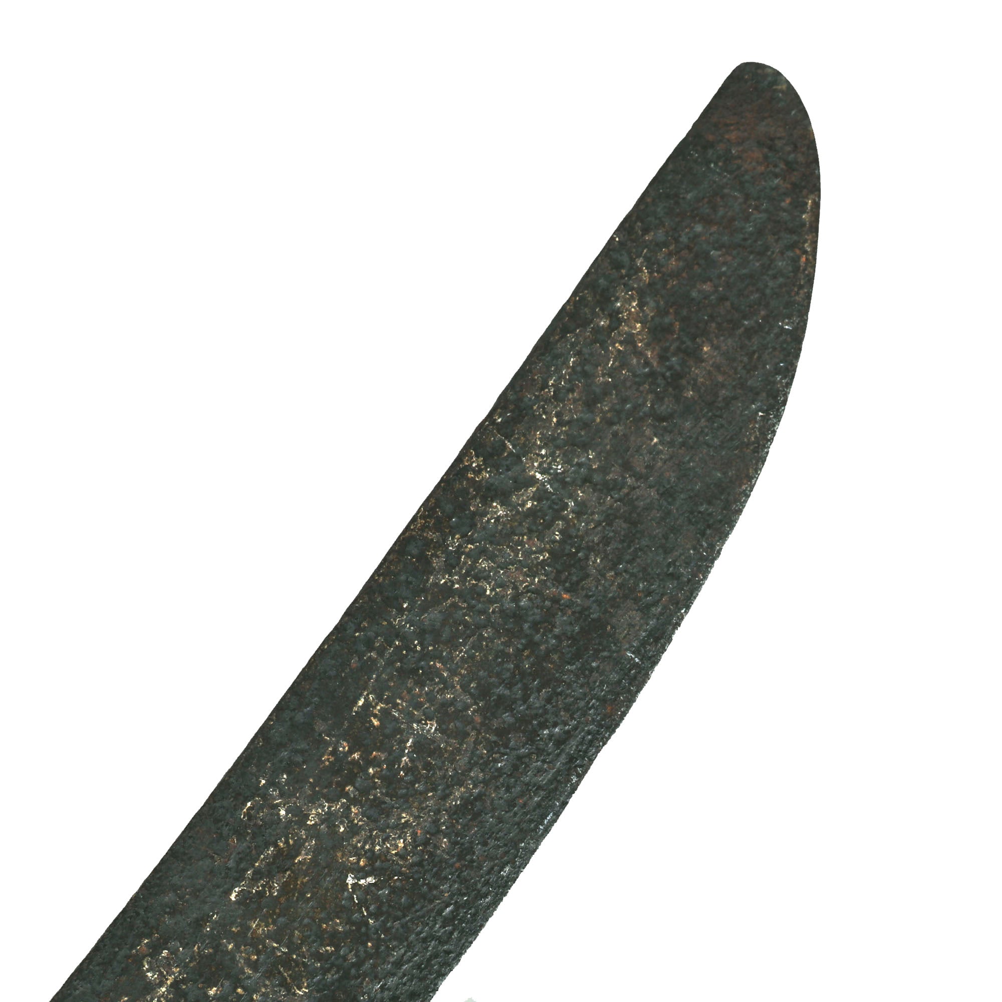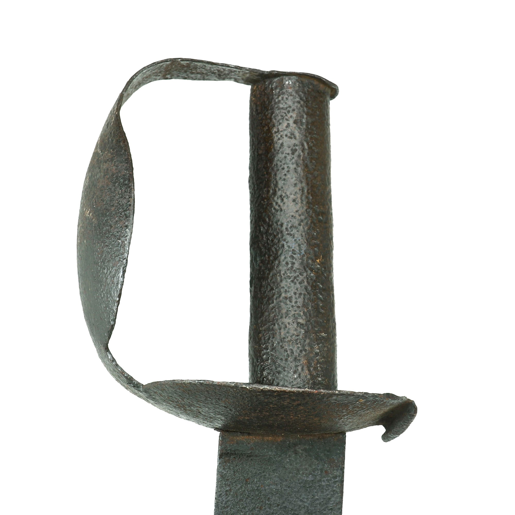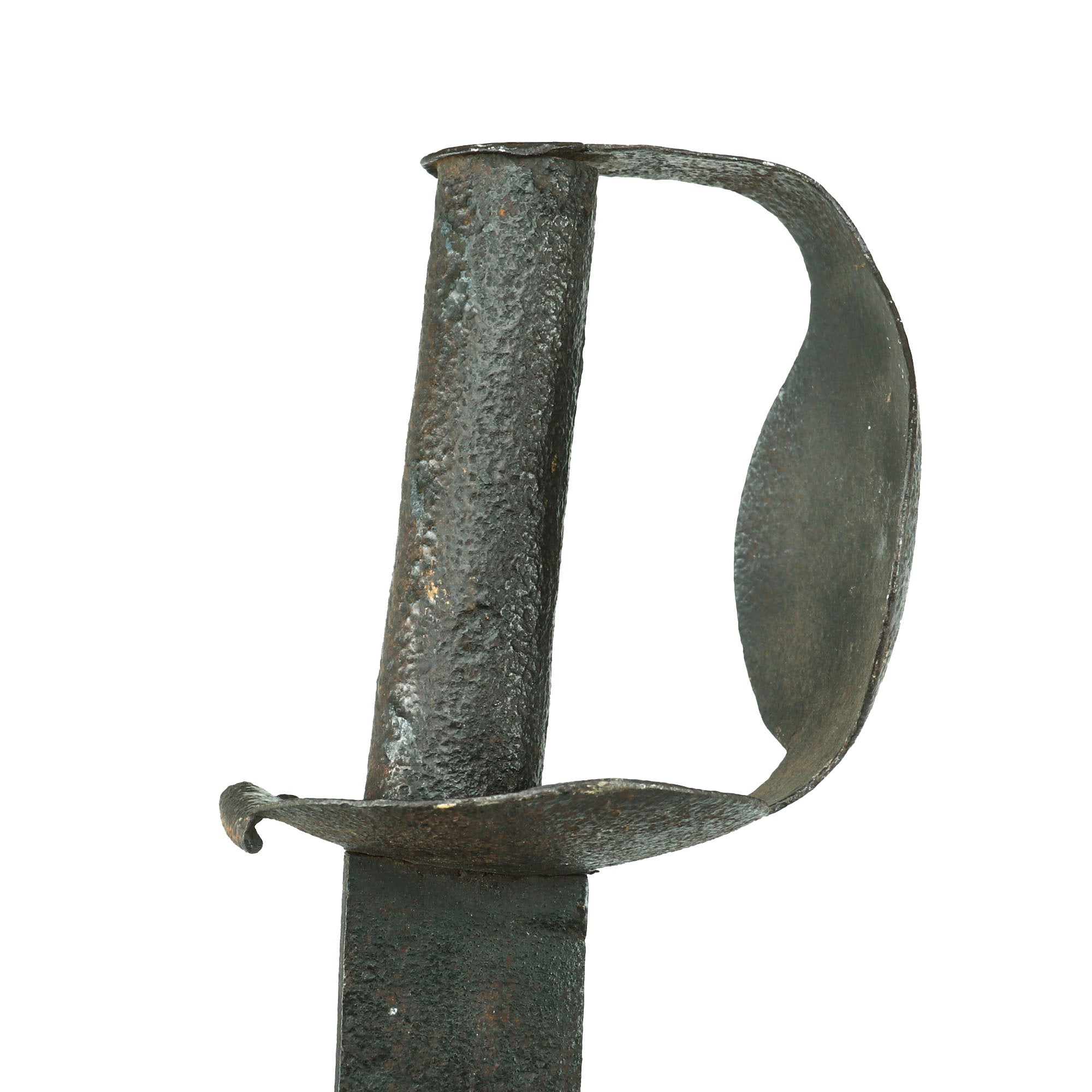 Original Item. One-of-a-Kind. This is a phenomenal and simply anomalous example of an American Revolutionary War Era Naval “Figure-of-Eight” Cutlass in original untouched condition, with an astoundingly-lengthy blade measuring 48”, that’s four feet long! Due to the nature of a naval cutlass, we are left scratching our heads wondering why an example of this length would ever have been produced, but the cutlass is in its original configuration without any alterations, which only raises further questions! It could possibly be a cavalry sword with a cutlass-style hilt, but we will never know for sure. This is by far the longest naval cutlass we have ever seen, and one that we know we’ll never see another of.