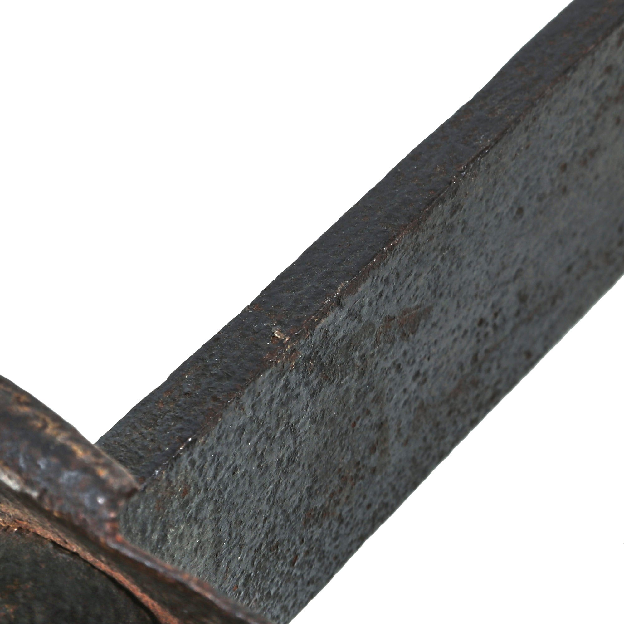 The cutlass is designed in the classic Figure-of-Eight fashion, with the entire cutlass having a similar peppery oxidation. The cutlass has suffered the salt air of the oceans and is typically rusted (stabilized) and pitted. The blade is mostly straight without any serious deviation. The hilt is designed in the style of late 18th century cutlasses with an iron grip. This was not replaced with a ribbed grip until the 1804 model. The overall length of the cutlass is roughly 52¼”.