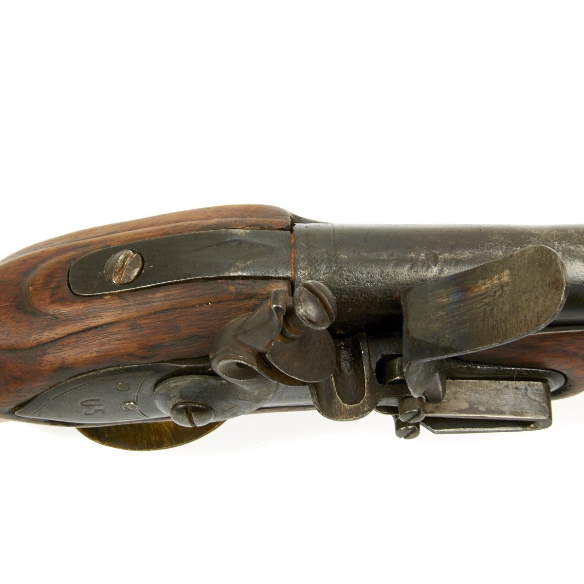 Overall this is a very attractive and nice condition example of a Dutch made War of 1812 musket. The gun is complete and correct. It has not been restocked, nor does it have the replacement parts that are so commonly encountered on muskets of this age. The gun is mechanically functional and has a fantastic, unaltered look to it overall. These guns saw service on both sides during the war, and the U.S. Surcharge makes it apparent that this military style musket was in fact issued to U.S. military organization. Original flintlock War of 1812 muskets are rarely found in such a pleasant state of preservation and this is one musket than any serious collector would be glad to add to their collection of Colonial era arms.