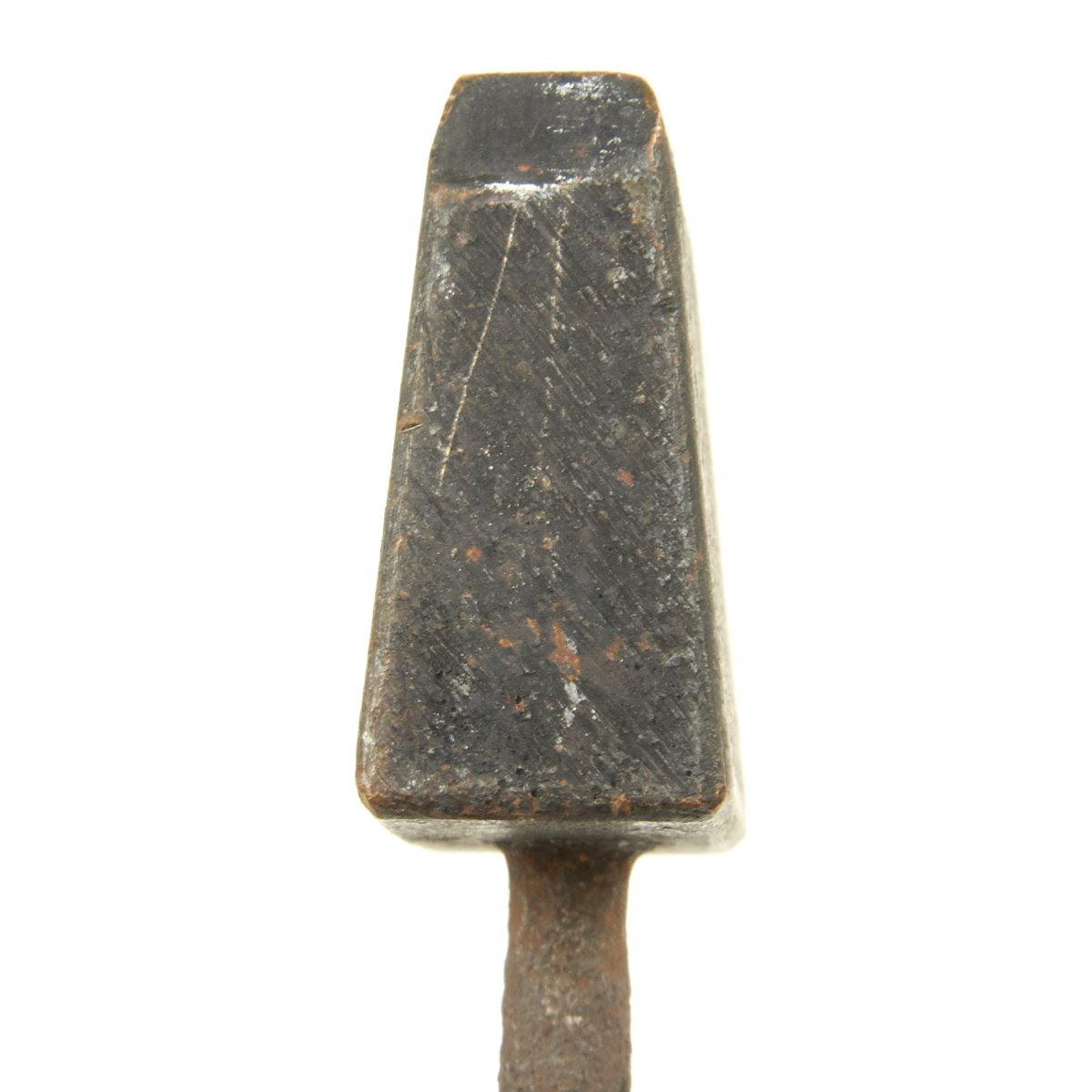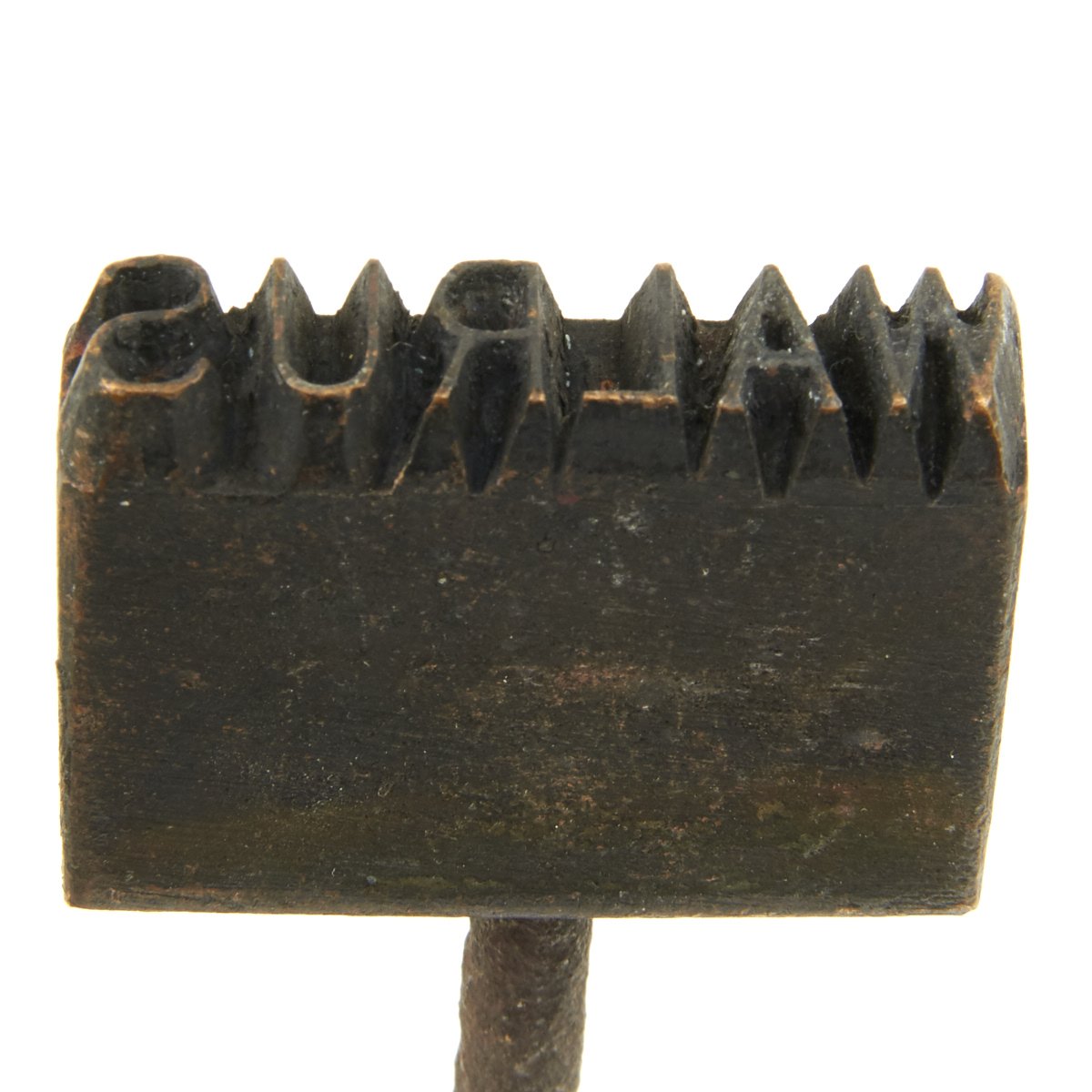 This is an original, close to 200 year old branding iron, not for cattle but, for the wooden barrels the Whalers packed the raw Whale Oil in. This was to indicate which vessel was to be paid for the contents when returning to port and the cargoes were sold at auction. In order to save space on board, the barrels were stored in pieces, and then assembled. To make sure that the brand was on the barrel, the markings were only applied after the barrel was completed.