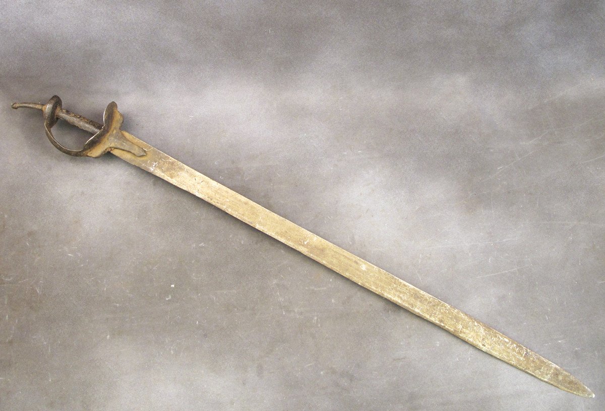 The blade itself is 33 inches long wide an average width of 1.5 inches, overall 44 inches in length. It is still very sharp. Clearly this is hard to find ancient sword, totally un-cleaned, just as we found it, offered as it is, for the specialist collector of ancient Asian swords. Reference: STONE'S "GLOSSARY" Pages 351 and 352.