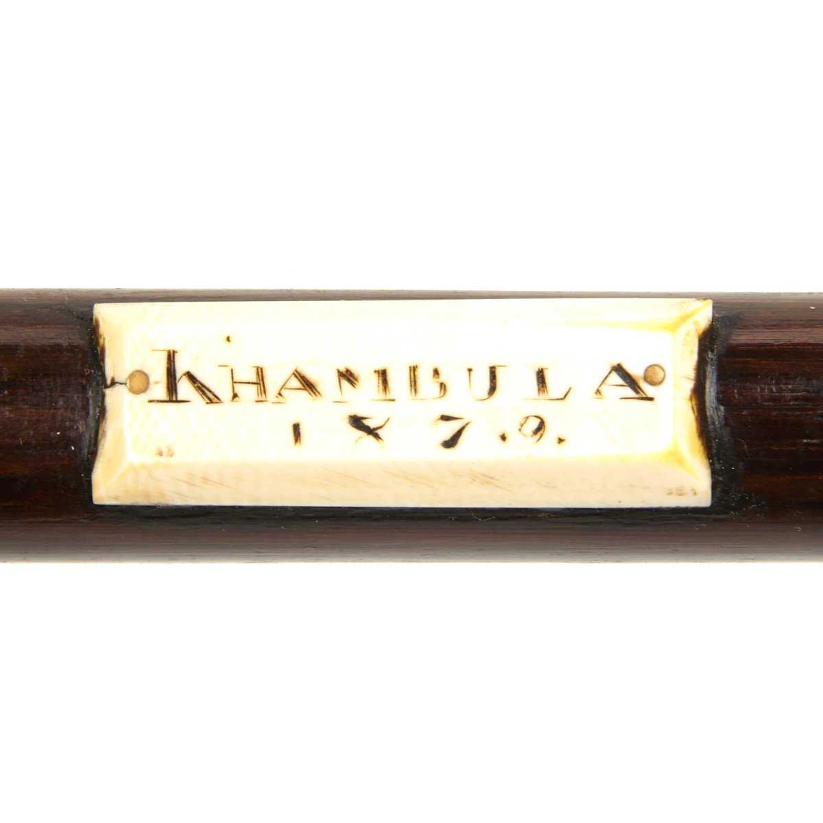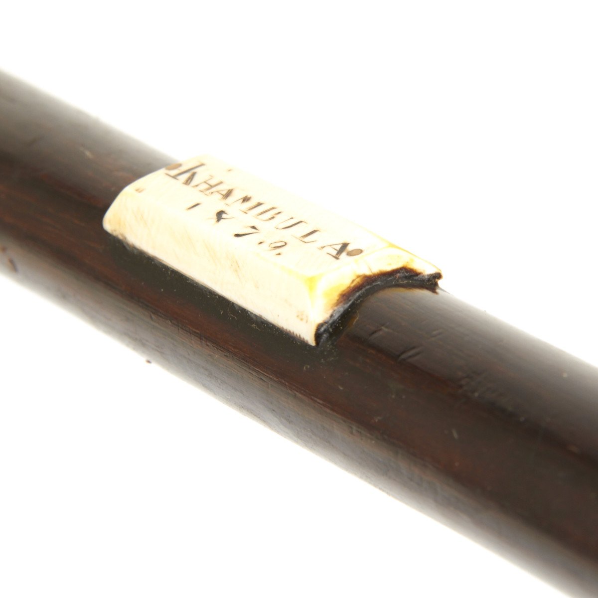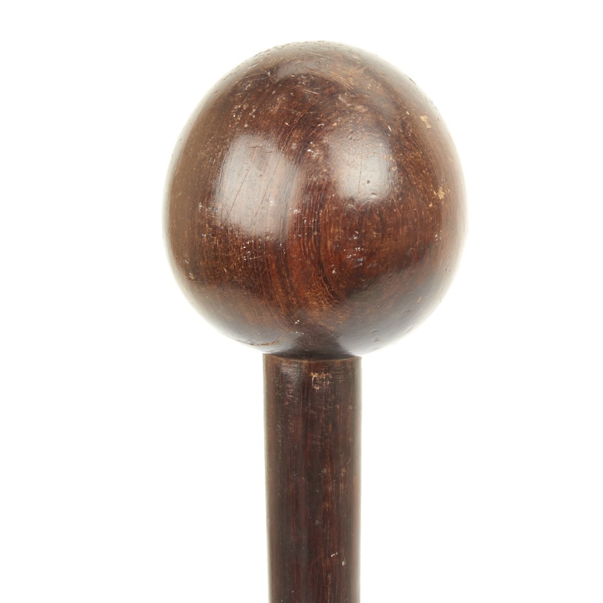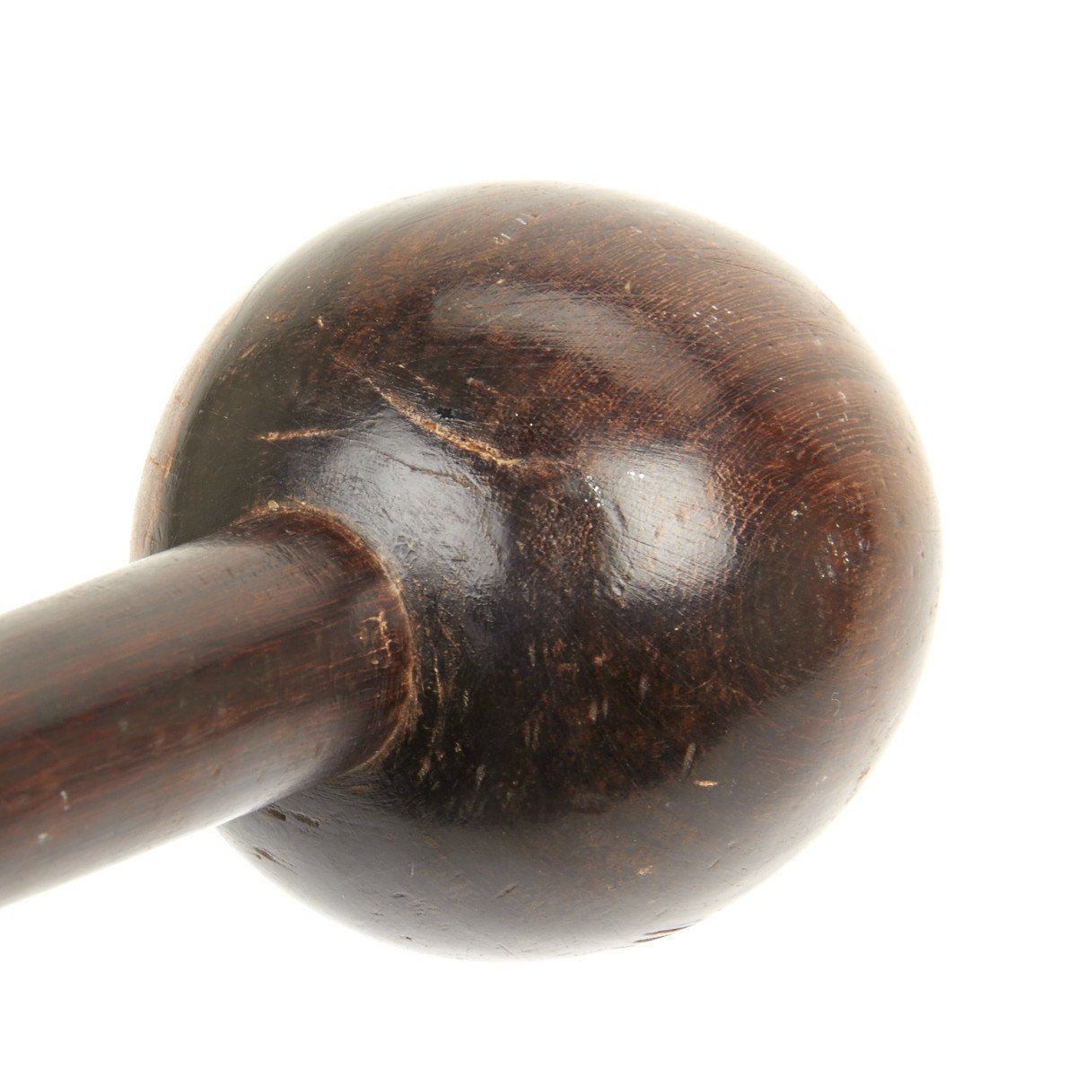Original Item: one-of-a-kind. This is a 2.5 hard wood ball on integral 24.5" shaft, all made from one single piece of wood. Mounted on the shaft is an inlaid piece of bone (ivory?) etched with