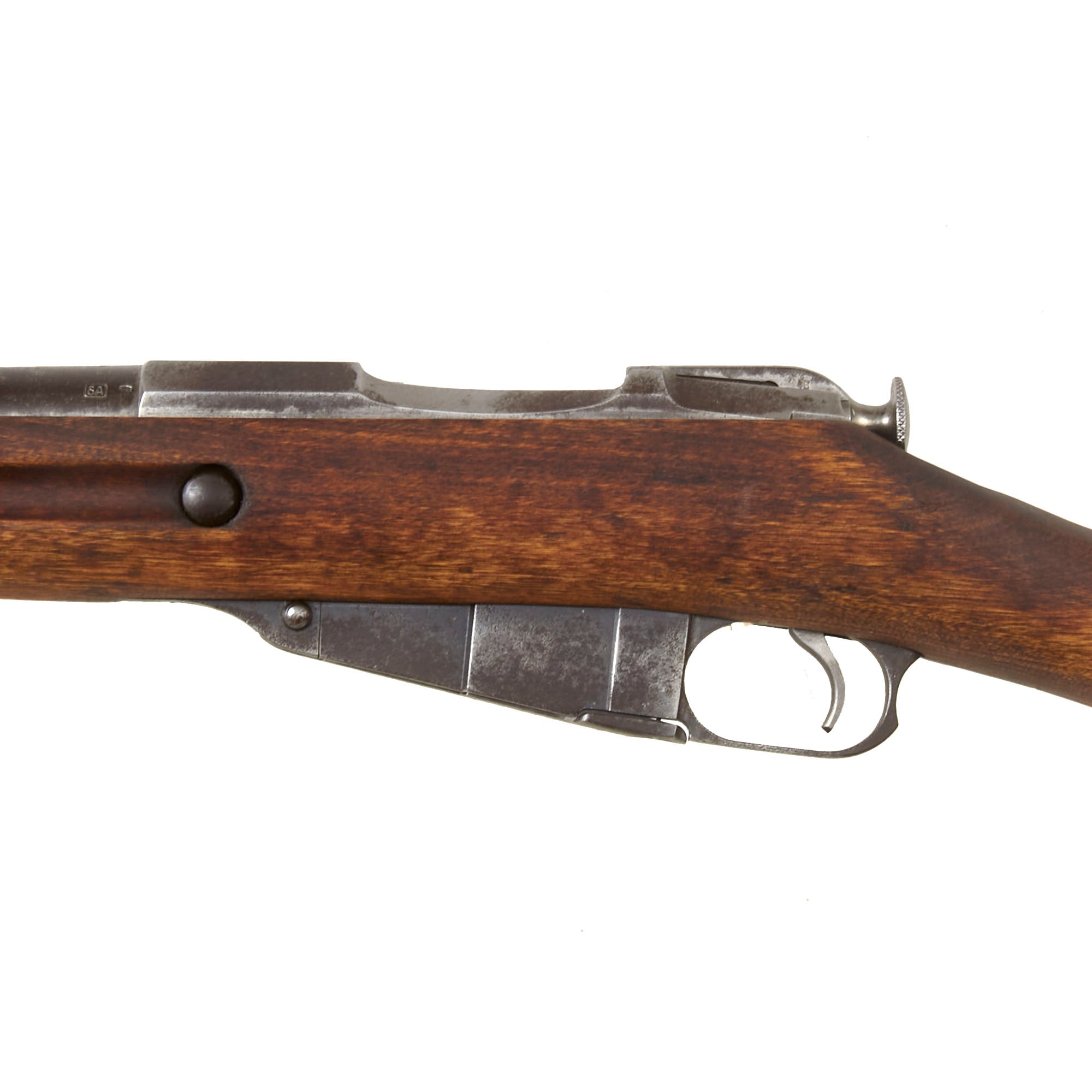 Original Item: Only One Available. These are so very rare, a real pre-1898 Antique Russian Mosin-Nagant M1891 Full Length Rifle, more officially referred to as the "Three Line Infantry Rifle, Model of 1891." This particular one was later refit in Finland to the Finnish M/91 Mosin-Nagant standard, and fitted with a new stock. The rifle has lots of issue markings, and is marked with serial number 14568 over the chamber. The bolt does not have any serial marking, and there is also an SA inside a rectangle on the side of the barrel, for Suomi Armeija (Finnish Army).