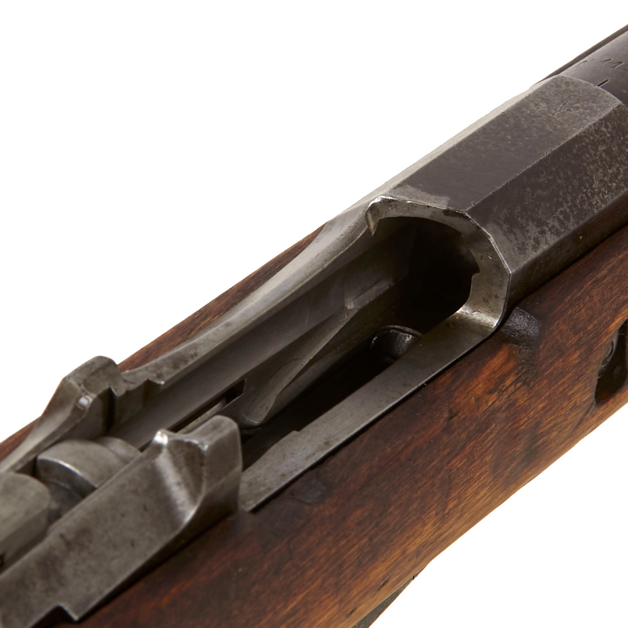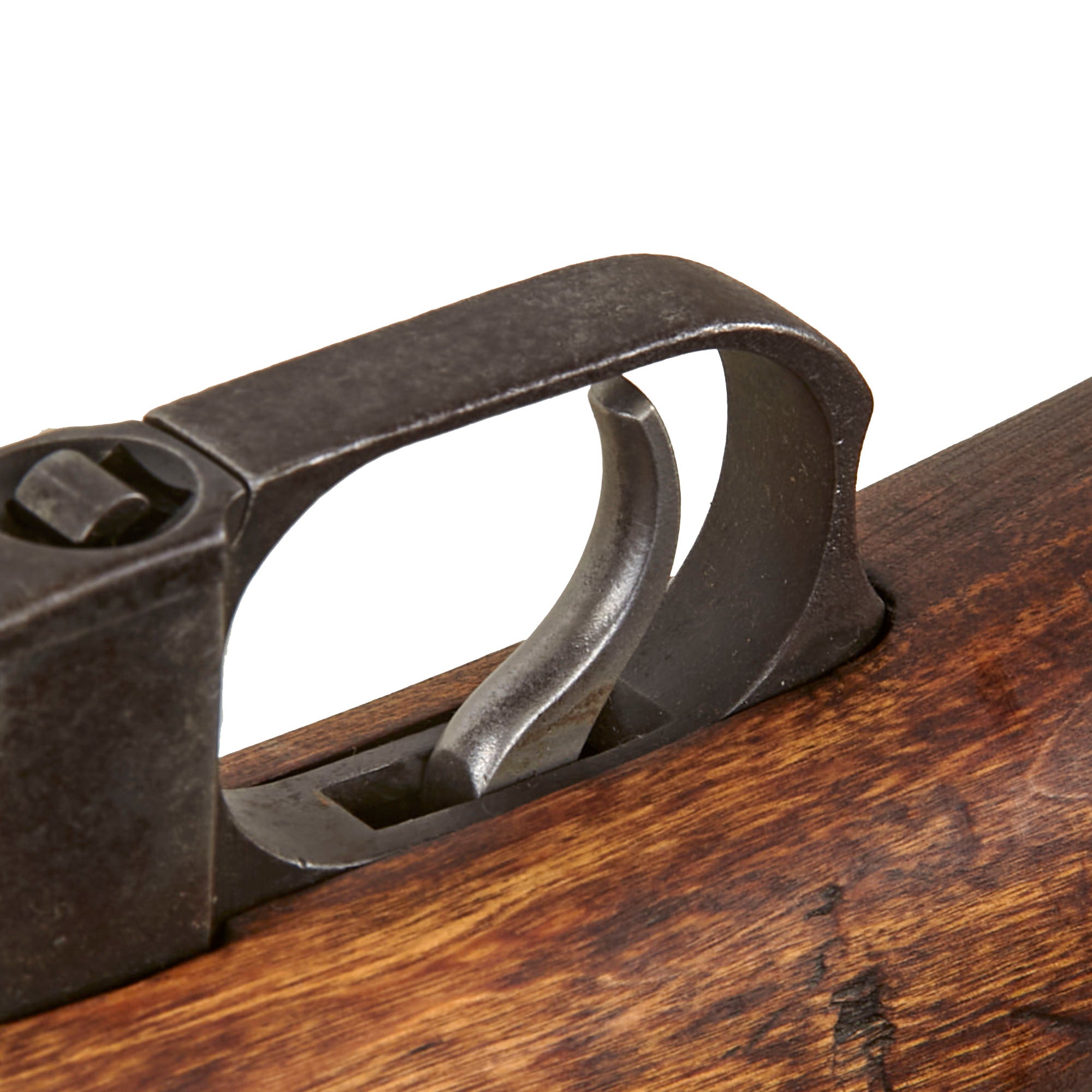 This entailed replacing the stock with a new one, constructed from two pieces of wood with a glued finger joint in the middle. The new stock featured traditional sling swivels fitted into escutcheons, instead of the slots used on the Russian types. This example has both intact, and does not show any signs of recapture by the Soviets, or other later alterations.