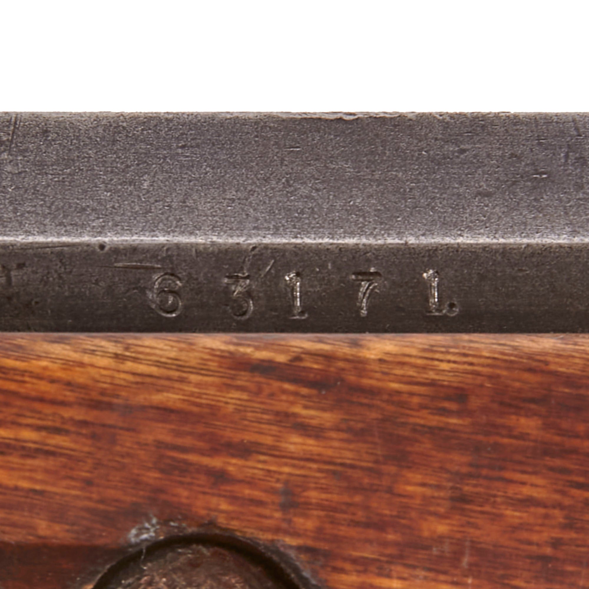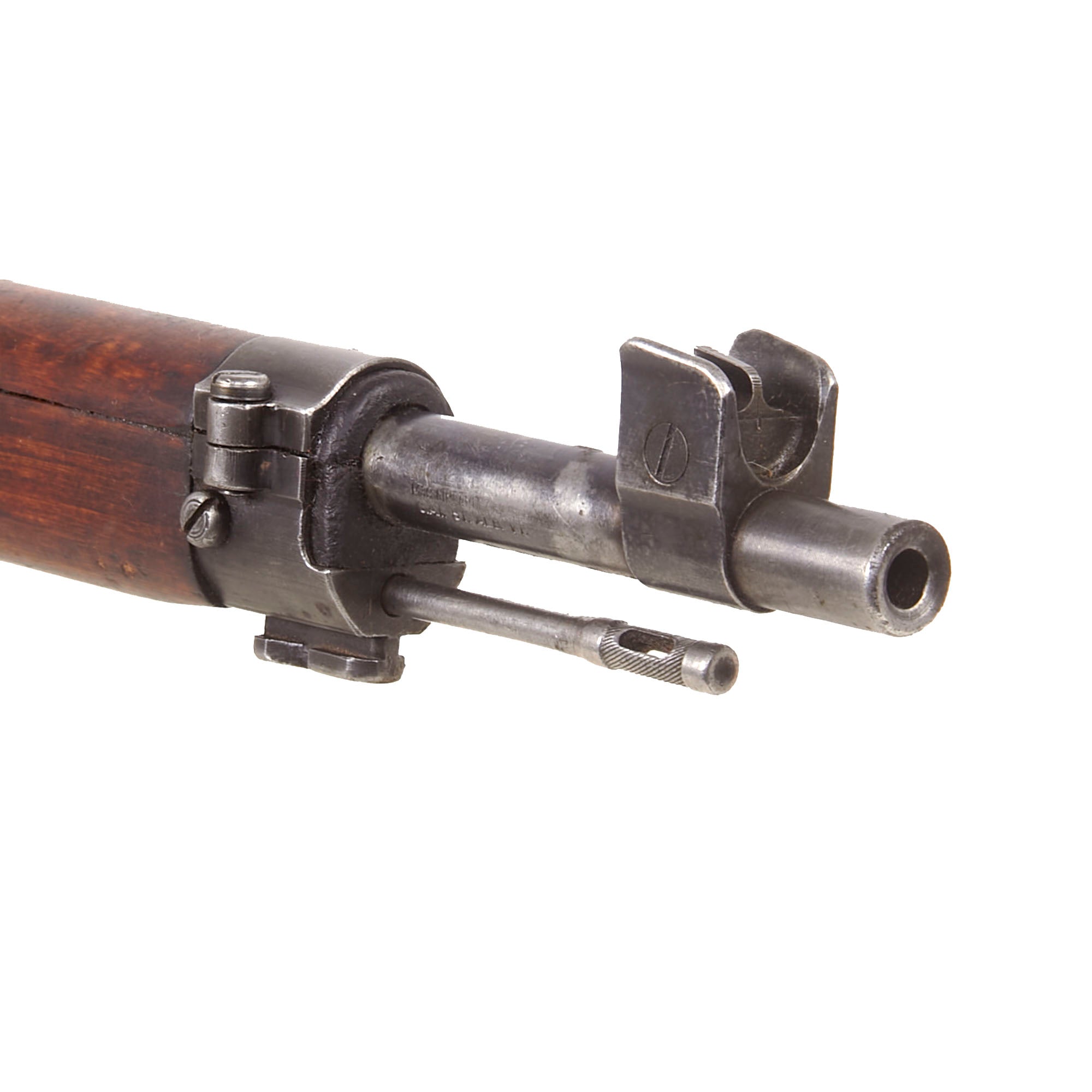 It still retains the original cleaning rod, which is in good shape, and threads correctly into the stock. The rifle cycles well, with a crisp dry fire, and the bolt can easily be removed for a field stripping. The bore is in very good condition, showing a bright finish with clear lands and grooves. There is definitely some light wear to the rifling from use while in service, but it was well cared for, so there is no oxidation or fouling we can see.