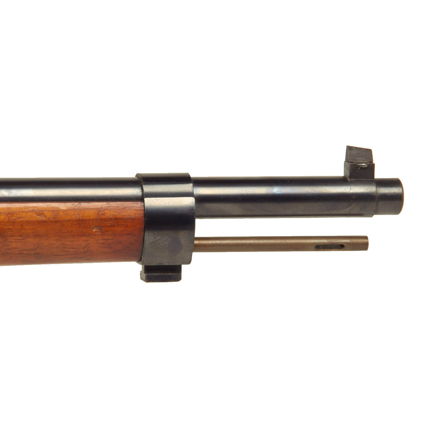 The metal is in a similar condition, with the original bluing almost entirely retained, even the "Niter Blue" color on the springs for the bands, magazine follower, and the bolt release. The bolt and cleaning rod, originally bright steel, now have a lovely browned aged patina from the slow oxidation of the surface under arsenal grease. The bore looks to be completely unused, with sharp lands and grooves and no signs of wear or oxidation.