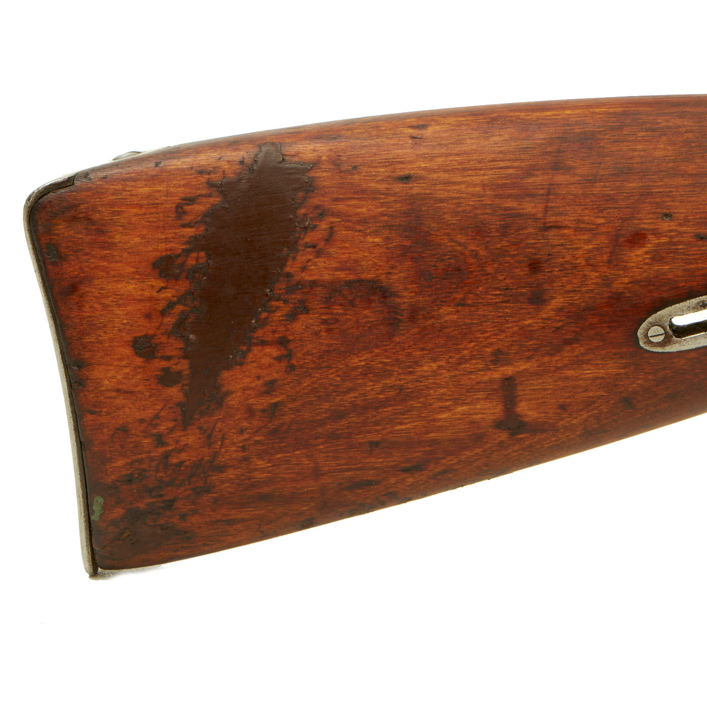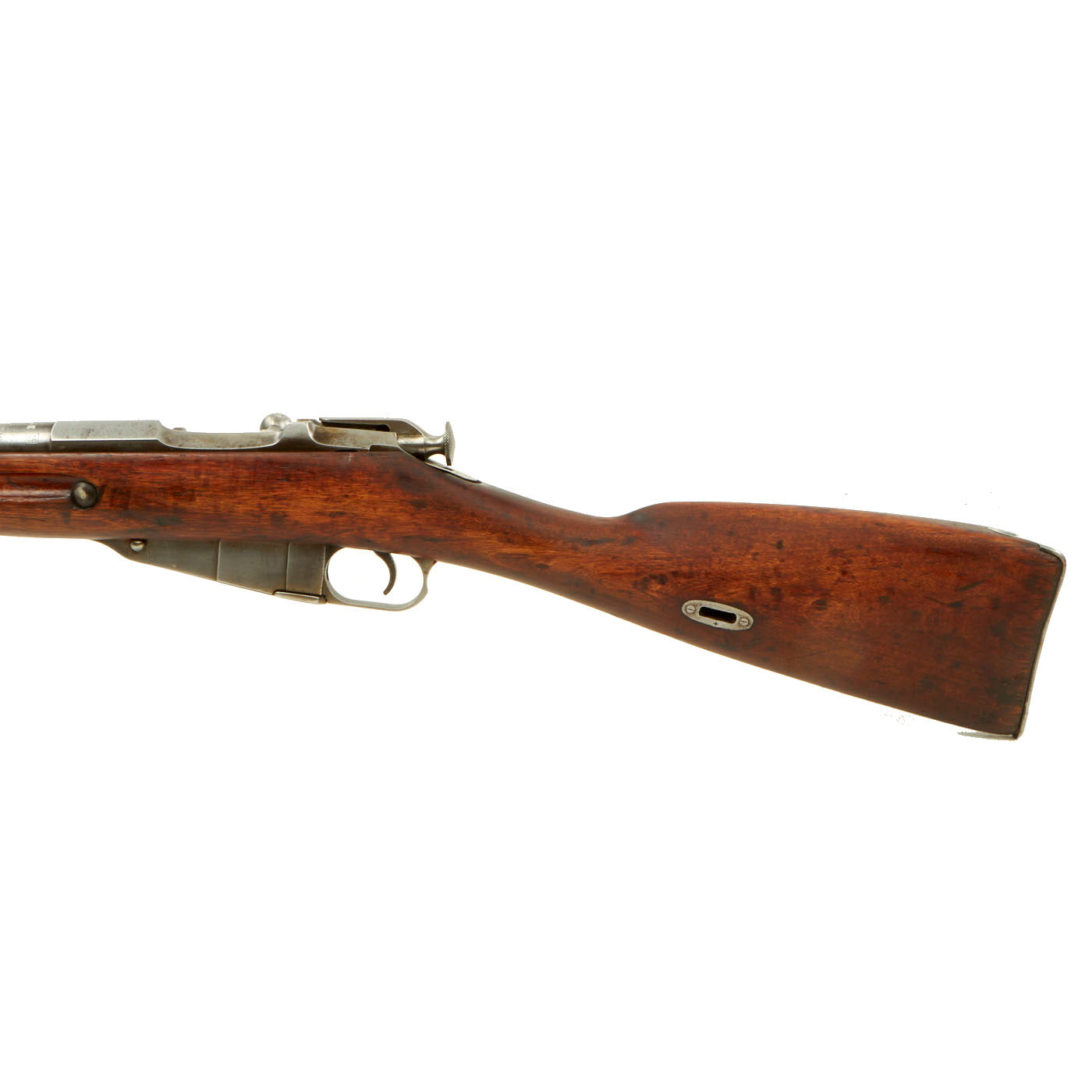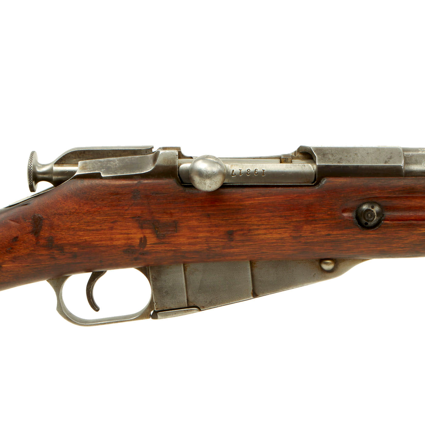 Original Item: Only One Available. These are so very rare, and this is only the second example that we have had in decades. A real pre-1899 Antique Russian Mosin-Nagant M1891 Full Length Rifle, more officially referred to as the "Three Line Infantry Rifle, Model of 1891." This example was never converted to the 91/30 standard, and is still in the original full length. It does have the stock cross bolt for use with the heavier "Spitzer" bullets used, and has the sling slots in place of swivels. It has lots of issue markings, and is marked with serial number 147833 over the chamber. The bolt is non-matching, and there is an SA inside a rectangle, for Suomi Armeija (Finnish Army). However, the Finnish did not convert this example to their M/91 standard, and is still in the original configuration.