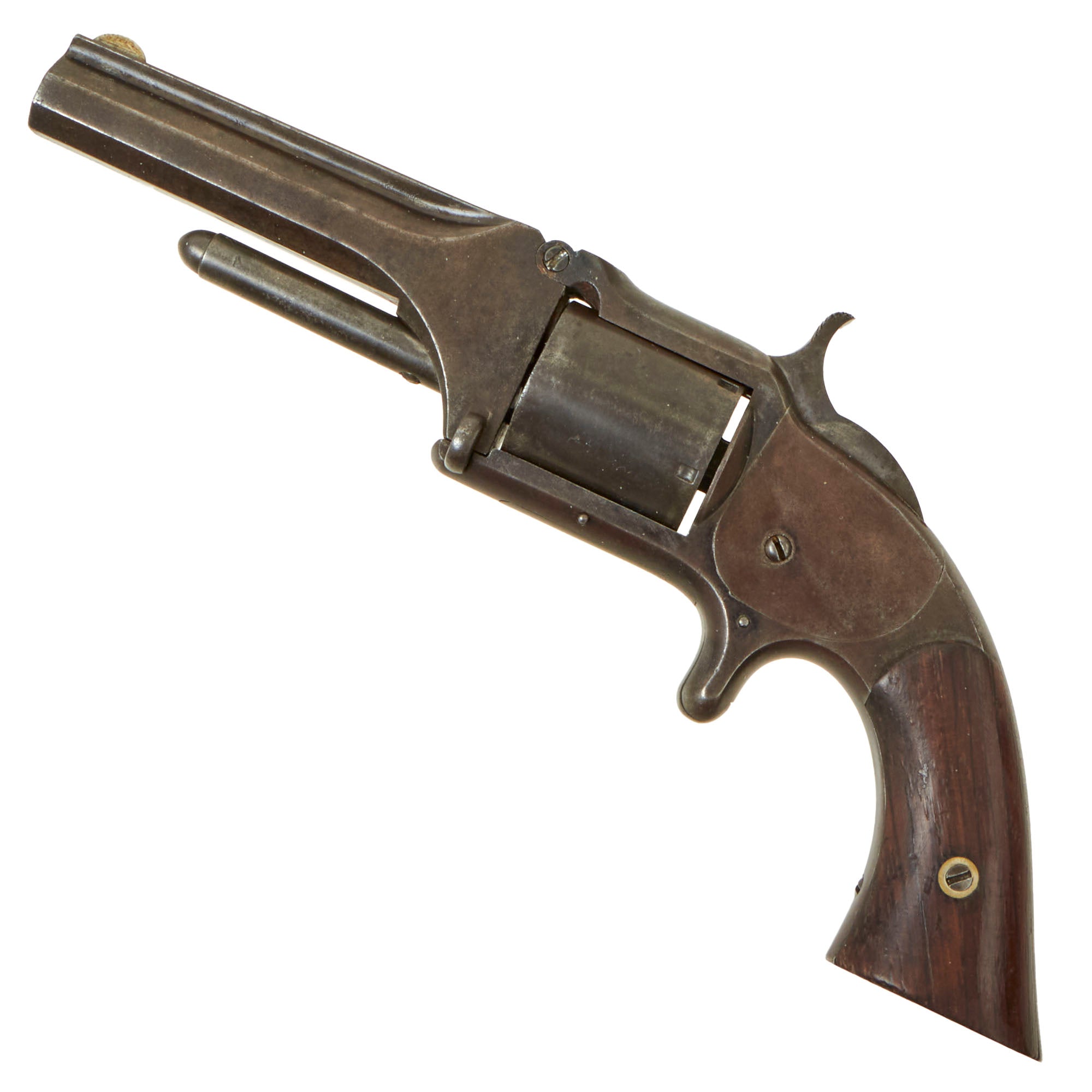 Original Item: Only One Available. This is an American classic, first introduced in 1865 and produced continuously until 1892. The Smith & Wesson Model 1 1/2 was Smith & Wesson's second .32 caliber revolver, intended to combine the small size and convenience of the .22 caliber Model 1 with the larger caliber of the 6-shot "belt sized" Model 2, which was introduced in 1860. Chambered in .32 cal., its cylinder held 5 shots. It was produced in three varieties, termed "issues" by S&W, with total production exceeding 223,000.