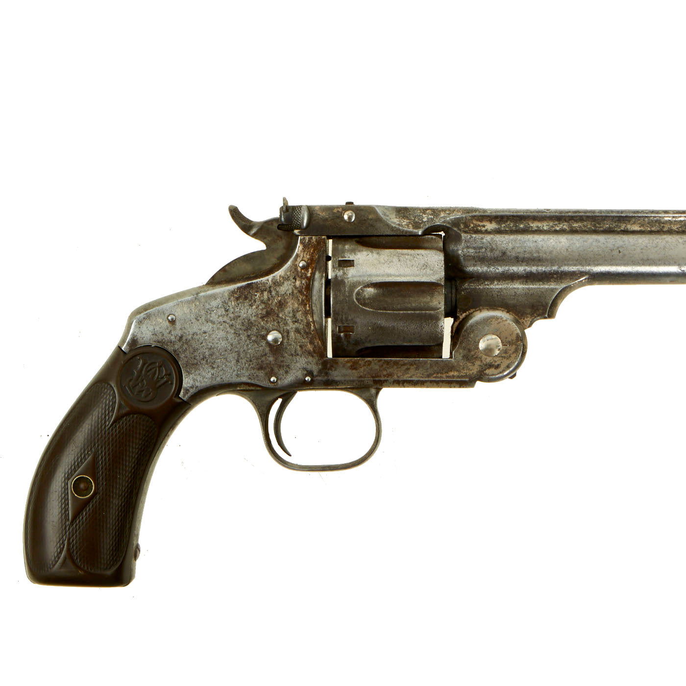 This is a very nice and rare old "Old West" Era Revolver to find. This is a very nice Smith & Wesson "New Model" No. 3 "Target" revolver, which was only produced in relatively small numbers from 1887 to 1910. Total production was 4,333 guns in two calibers, .32-44 and .38-44, both of which were "full-length" cartridges where the bullet was recessed inside the cartridge, with the tip even with the end of the casing, which would also be even with the end of the cylinder. These had a higher powder charge than normal, and the elongated cartridge helped to seal the gas better.