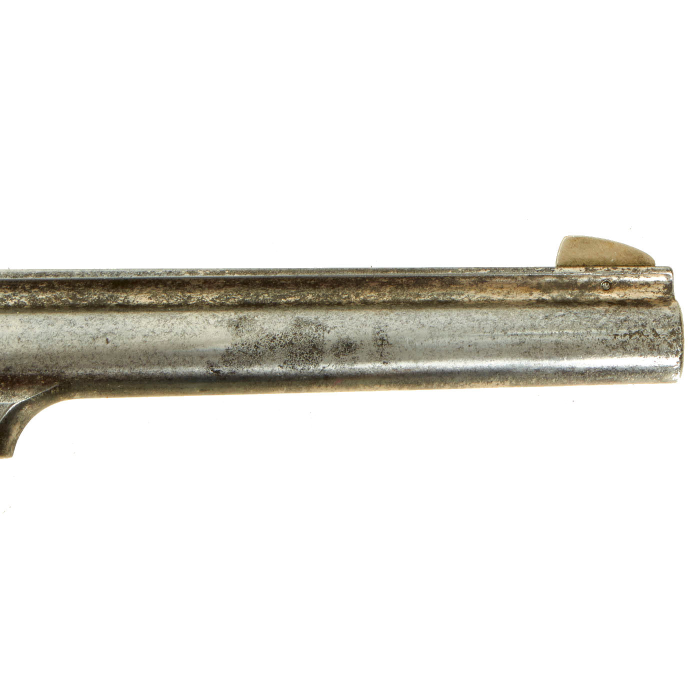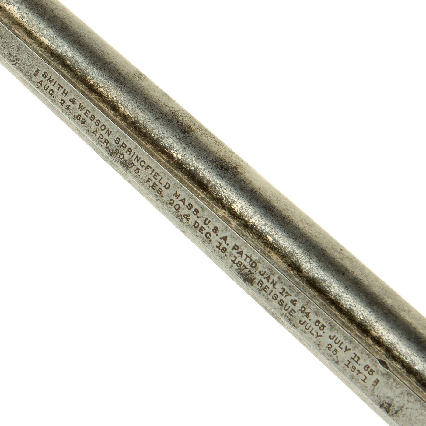 This fine of the Target Model example features a full length un-shortened 6 1/2" barrel and has a cylinder capacity of 6 shots, functioning in single-action only. The top of the barrel bears the S. & W. patent dates up to 1877, which are full legible.: