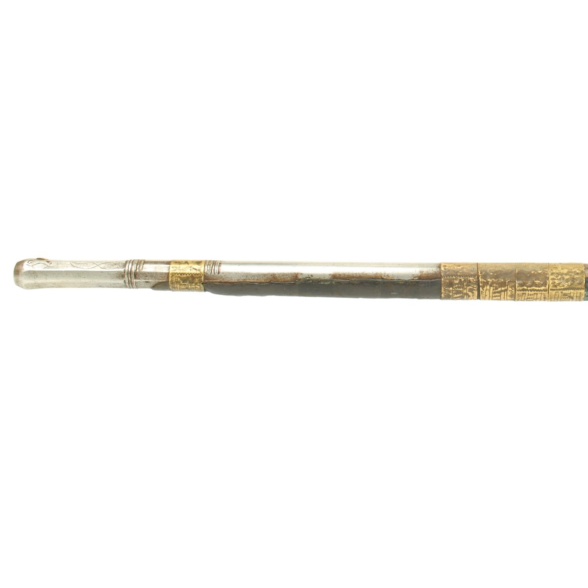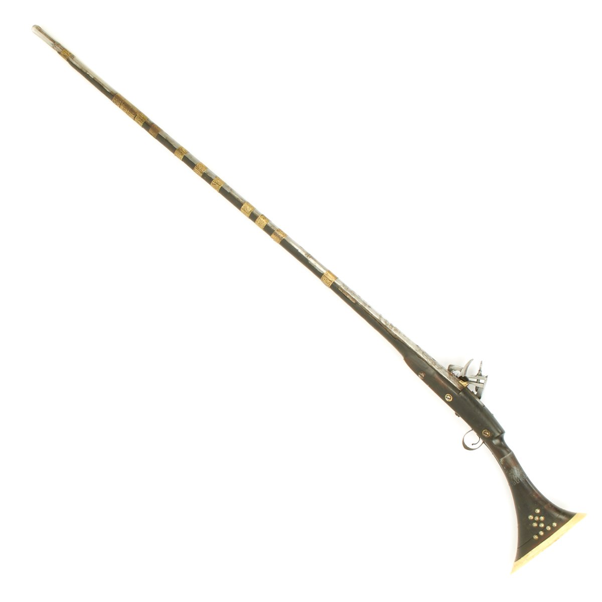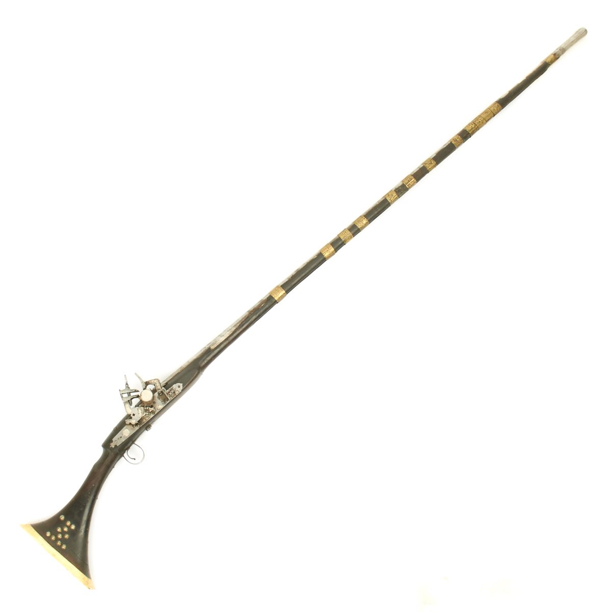 This is right out of "The Arabian Nights"! Just over 66 inches in overall length, this is truly a magnificent weapon. Slight wood loss to the edges of the very long fore stock. A true Classic, right out of the story books. All you need is a Camel.