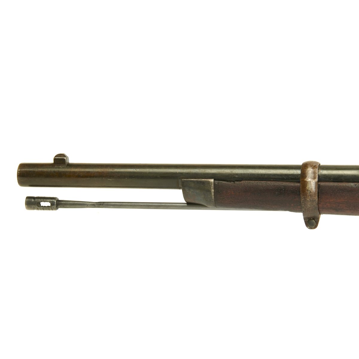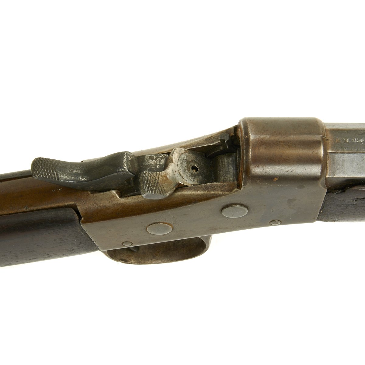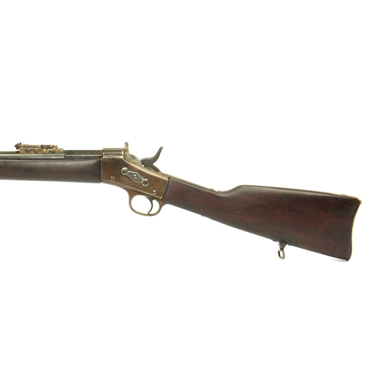 The rifle is complete with its ramrod and ladder back sight, and really is in great collectible condition. The action works beautifully and the bore has clear lands and grooves, with some darkening throughout. Metal Fittings have a great patina of age, and match the receiver nicely.