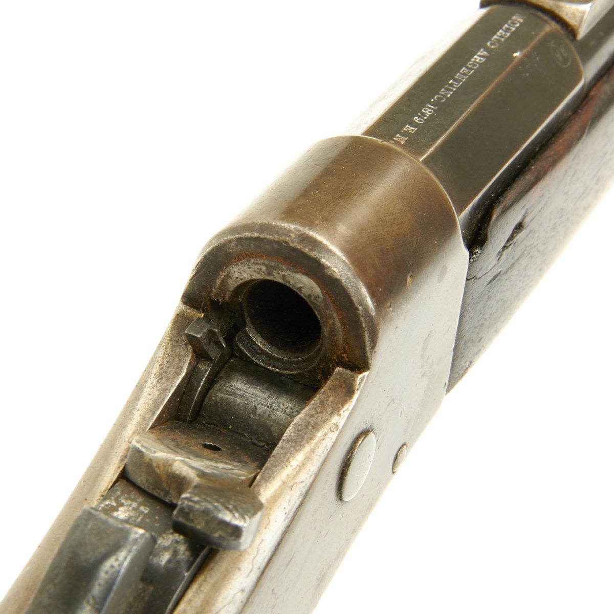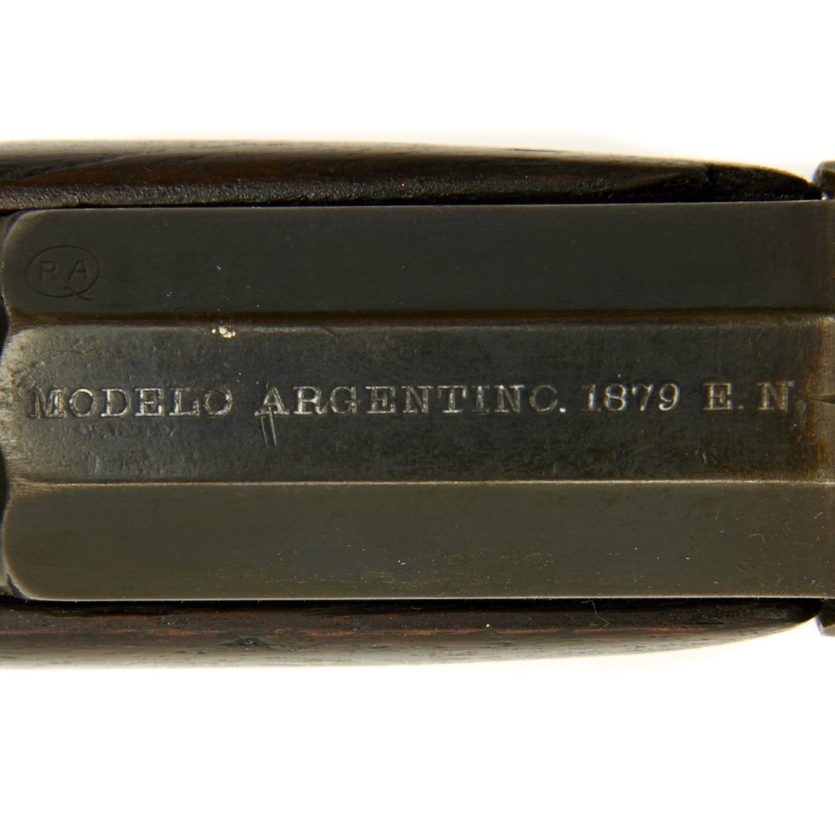 The RA in circle proof is for República Argentina, the official name of Argentina in Spanish. The E.N. abbreviation is for the Ejercito Nacional, or National Army in Argentina. Around the late 1800s Argentina was a developing world power, and had one of the largest economies in the world. Like any growing power, it needed arms, and as there were not yet local producers up to the task, they contracted out for their weaponry. They would later replace the rolling blocks with the more modern Argentine Contract Mauser rifles towards the end of the 1800s.