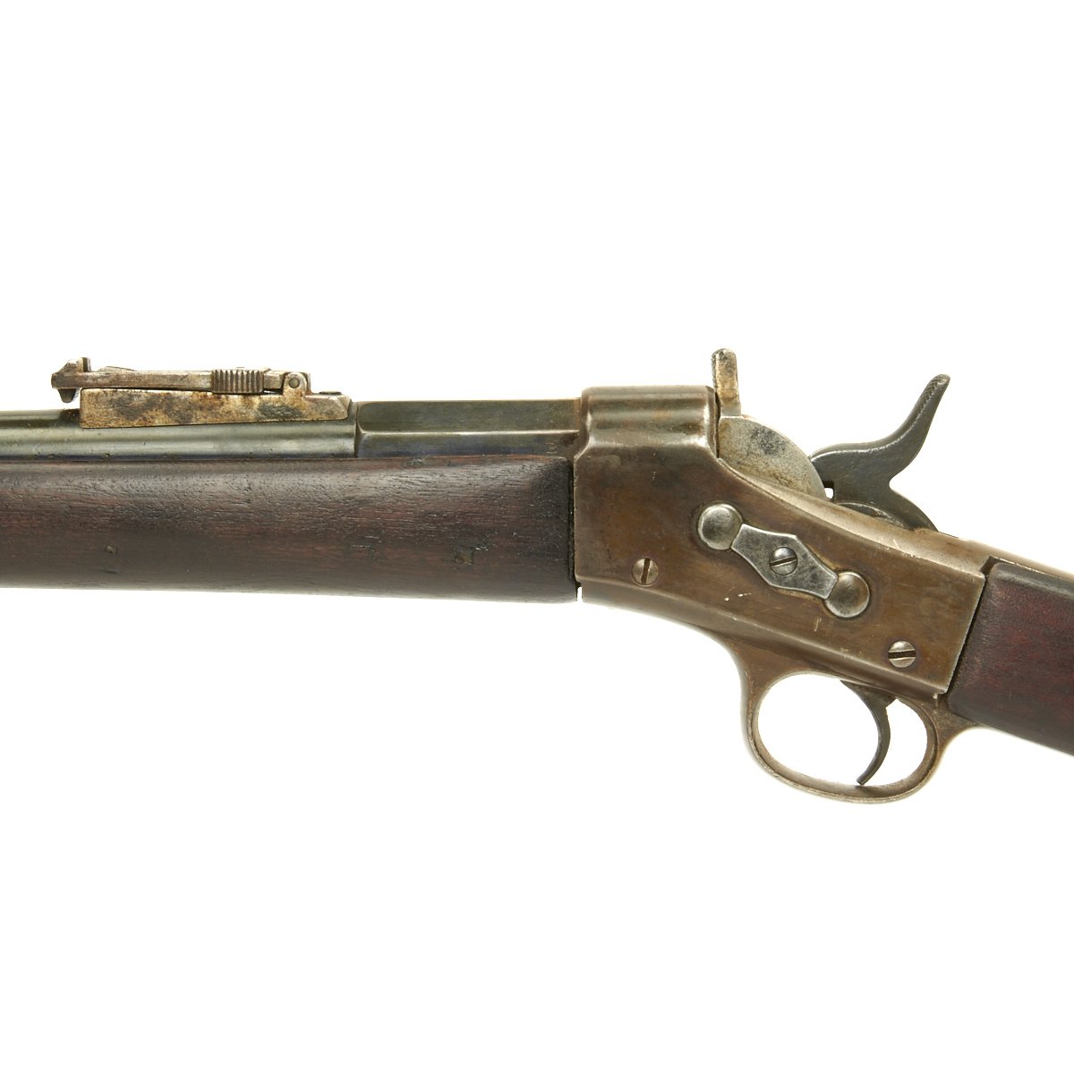 Original Item. Only One Available. In really great condition, this Contract Remington Rolling Block Rifle was made for the South American State of ARGENTINA of 1879. This is quite a scarce rifle to find in today's market. The Remington name and address on the tang of the receiver has become faint but is discernible. The model and date information is listed on the barrel knoxform, and is clear: