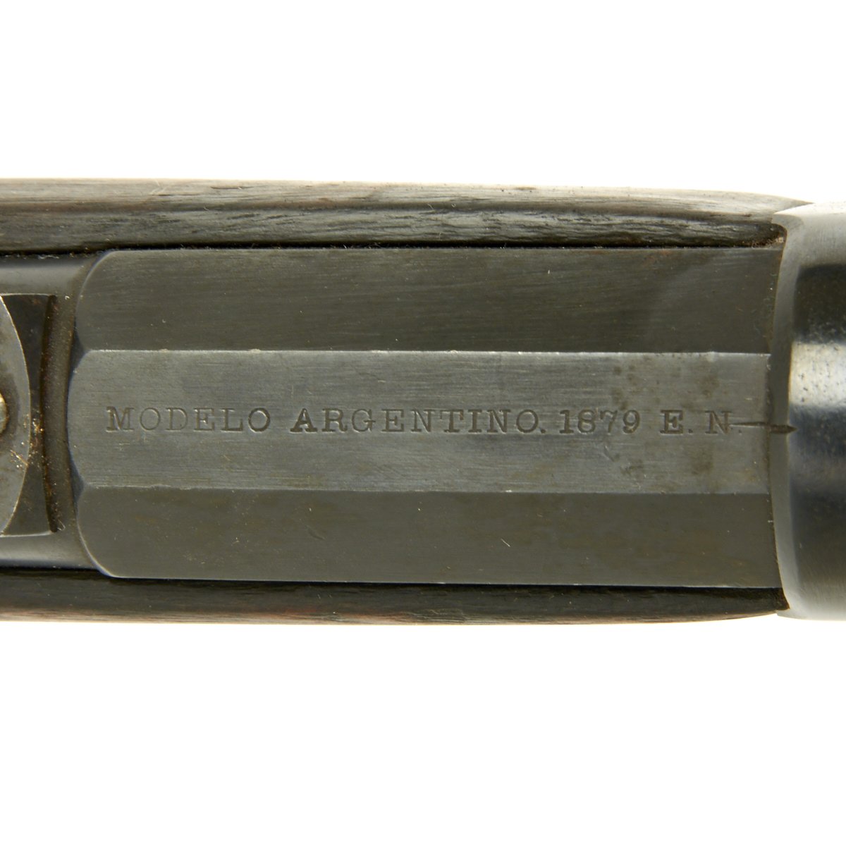 Original Item. Only One Available. In really great condition, this Contract Remington Rolling Block Rifle was made for the South American State of ARGENTINA of 1879. This is quite a scarce rifle to find in today's market. The receiver tang is marked E. REMINGTON & SONS, ILION, N.Y., U.S.A, along with the patent information. The model and date information is listed on the barrel knoxform, and is clear: