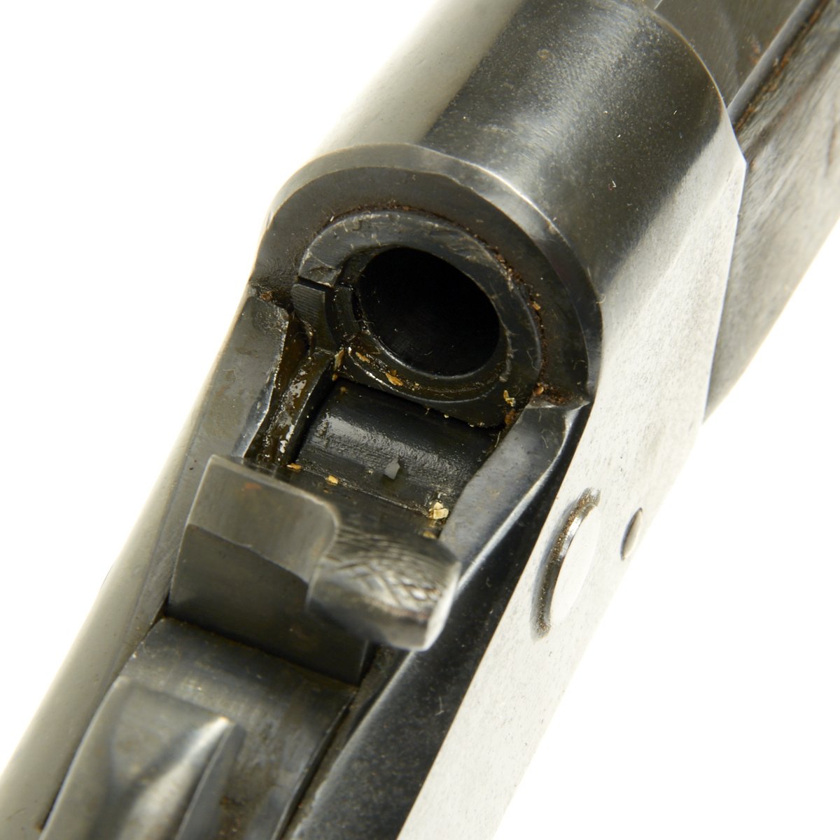 The rifle is complete with its ramrod and ladder back sight (very similar to a Werndl back sight), and really is in great condition. The metalwork has a nice worn bled finish, which matches the fittings nicely. The action works great, though the ejector sticks a bit. The bore is excellent, with a bright finish and clear lands and grooves.