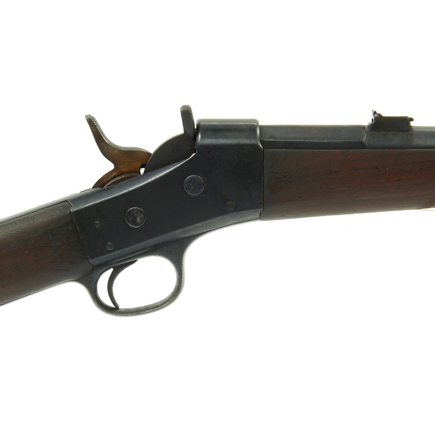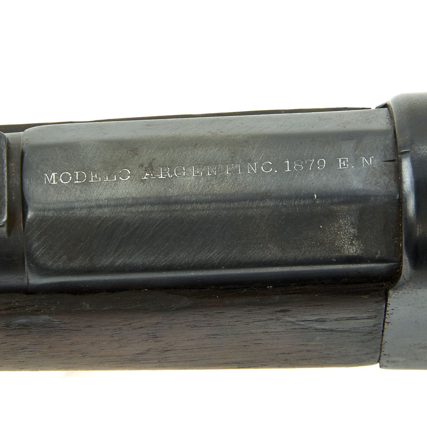 Original Item. Only One Available. In really great condition, this Contract Remington Rolling Block Saddle Ring Carbine was made for the South American State of ARGENTINA of 1879. This is quite a scarce carbine to find in today's market. The receiver tang is marked E. REMINGTON & SONS, ILION, N.Y., U.S.A, along with the patent information. The model and date information is listed on the barrel nocks form, and is clear: