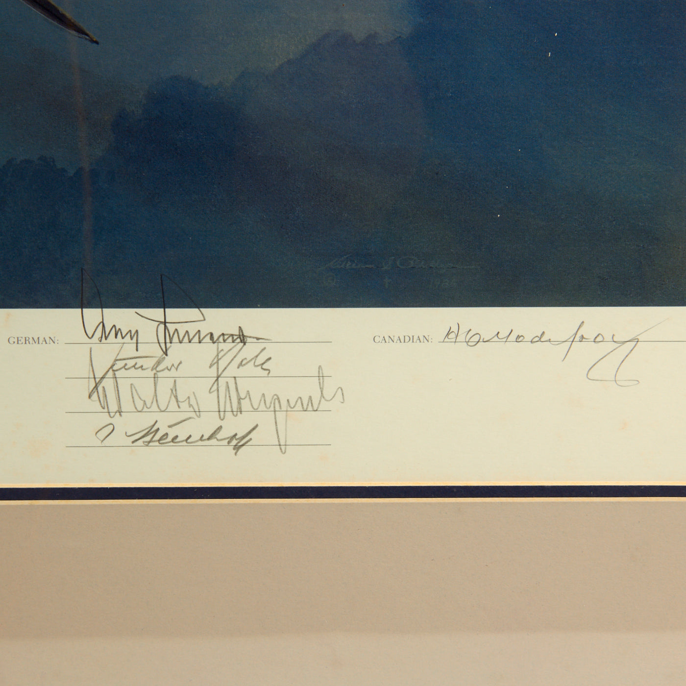 The image is phenomenal and perfectly captures what the skies were like above Hellfire Corner during WWII. The image features a lone German aircraft maneuvering on a small pocket of Allied aircraft in the clouds. At the bottom it features the above mentioned quote as well as 10 Signatures from Allied and German flying aces during the war. A flying ace, fighter ace or air ace is a military aviator credited with shooting down five or more enemy aircraft during aerial combat. The exact number of aerial victories required to officially qualify as an ace is varied, but is usually considered to be five or more.