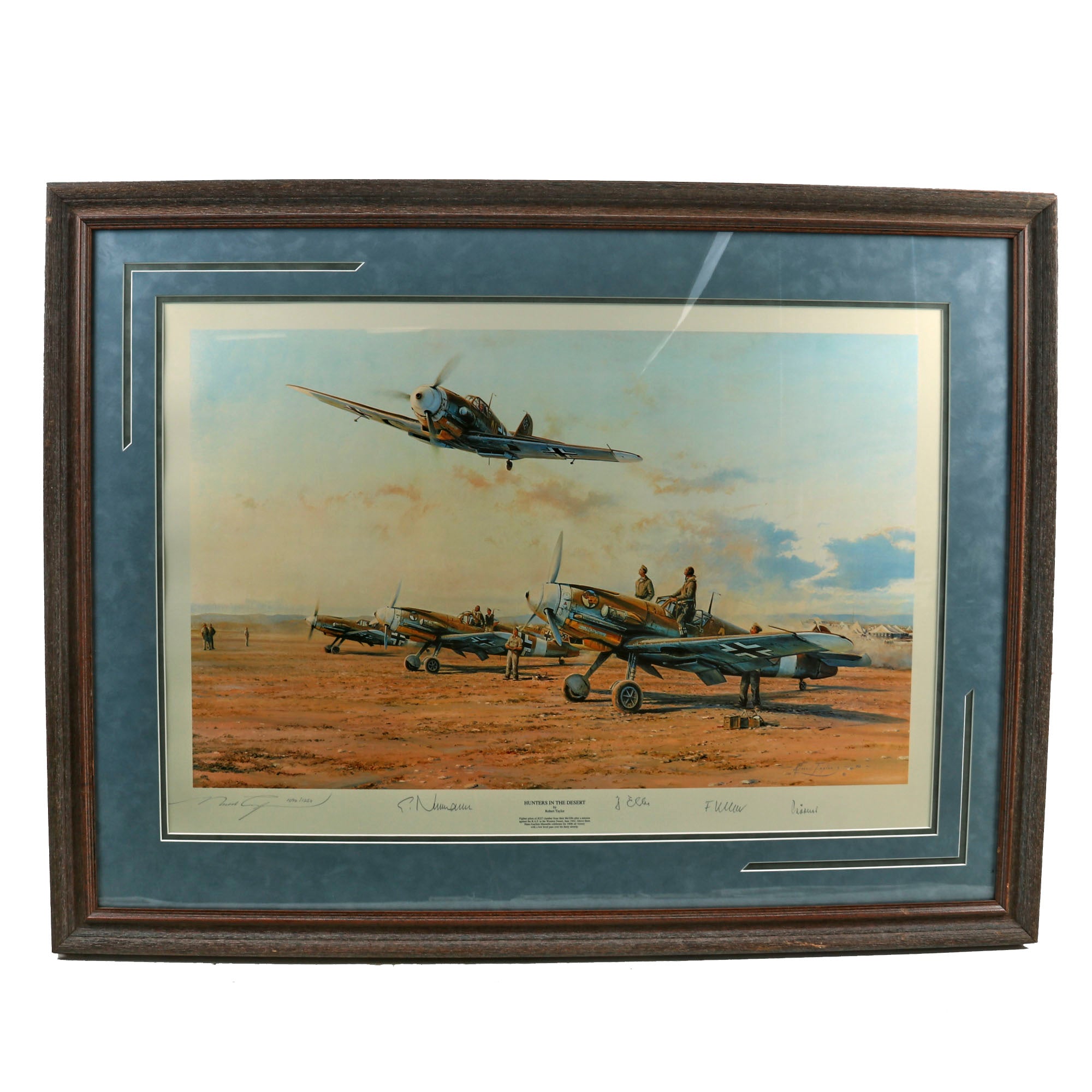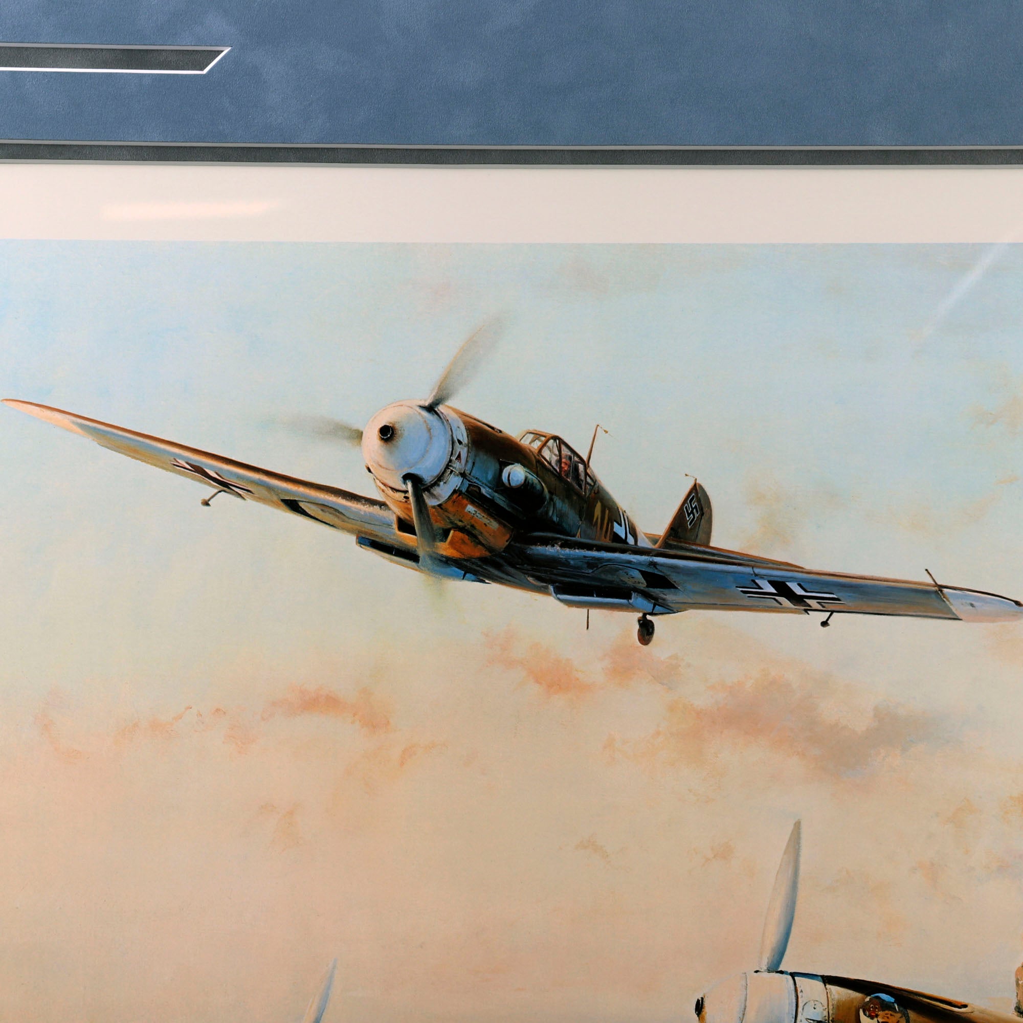 Each print bears the signature of four highly-distinguished Luftwaffe fighter pilots who had the honor of flying and fighting alongside the legendary Ace, Hans-Joachim Marseille. He was known as the “Star of Africa” and was Killed in Action on September 30, 1942 in Egypt.