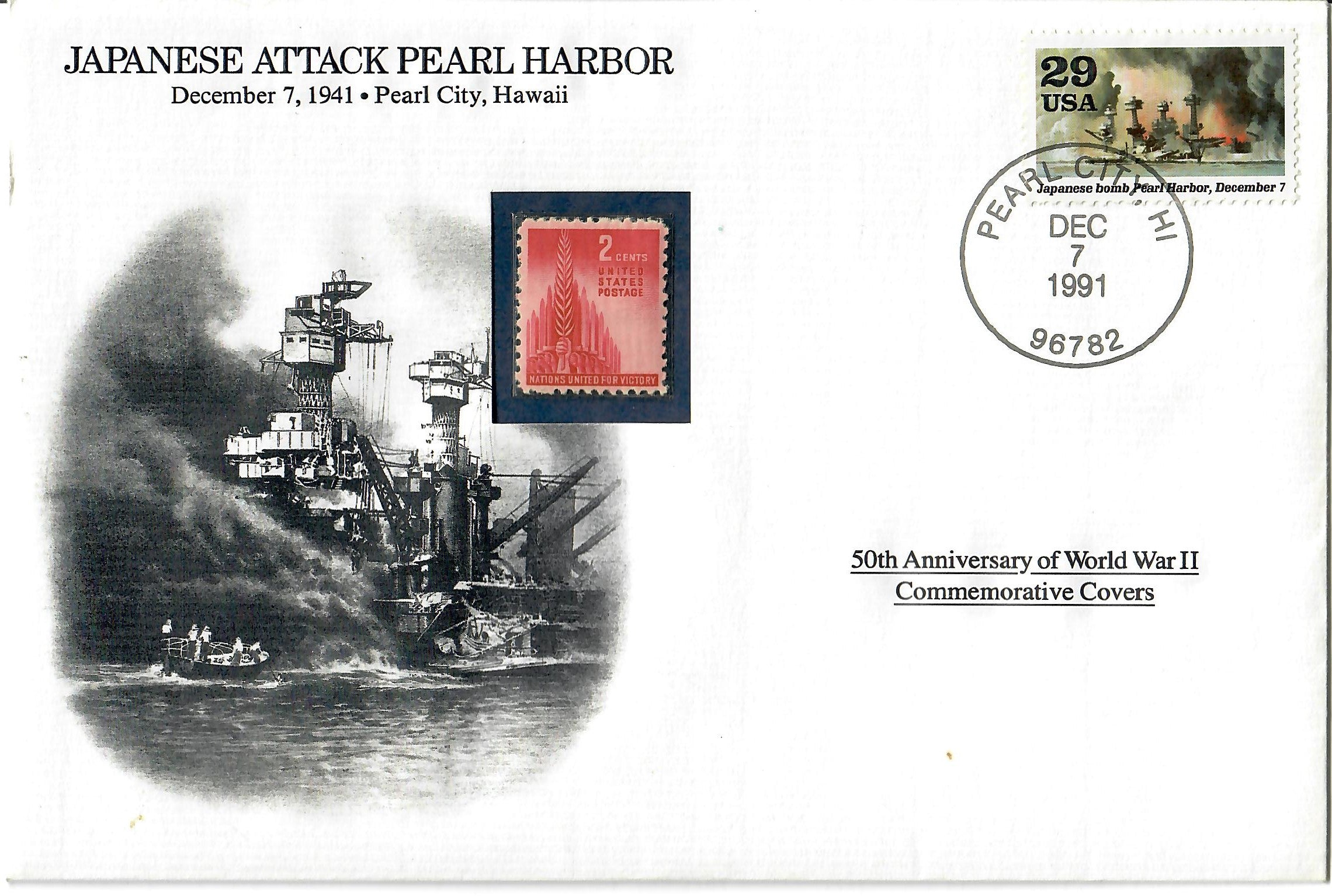 The print comes with a Certificate of Authenticity that lists more information about the soldiers, as well as a 1991-dated commemorative envelope and stamp for the 50th anniversary of the attack.