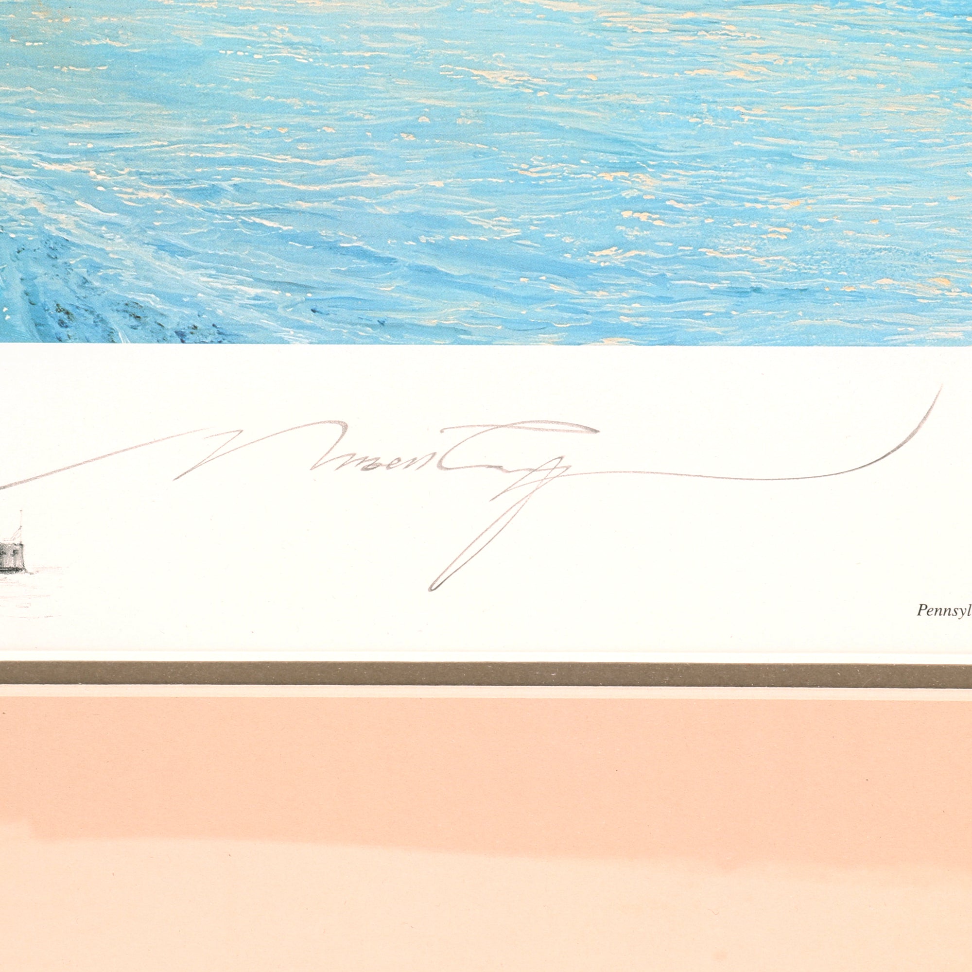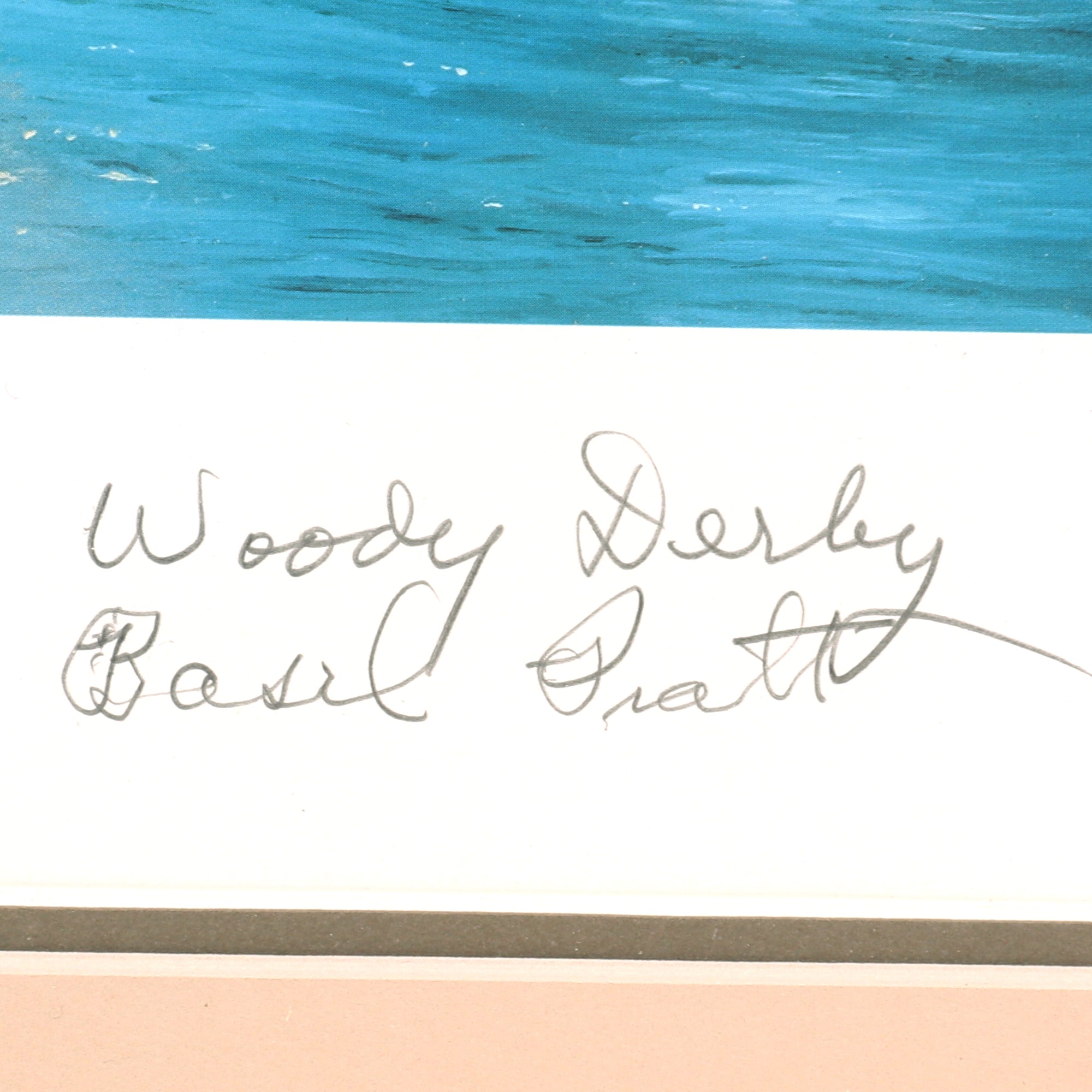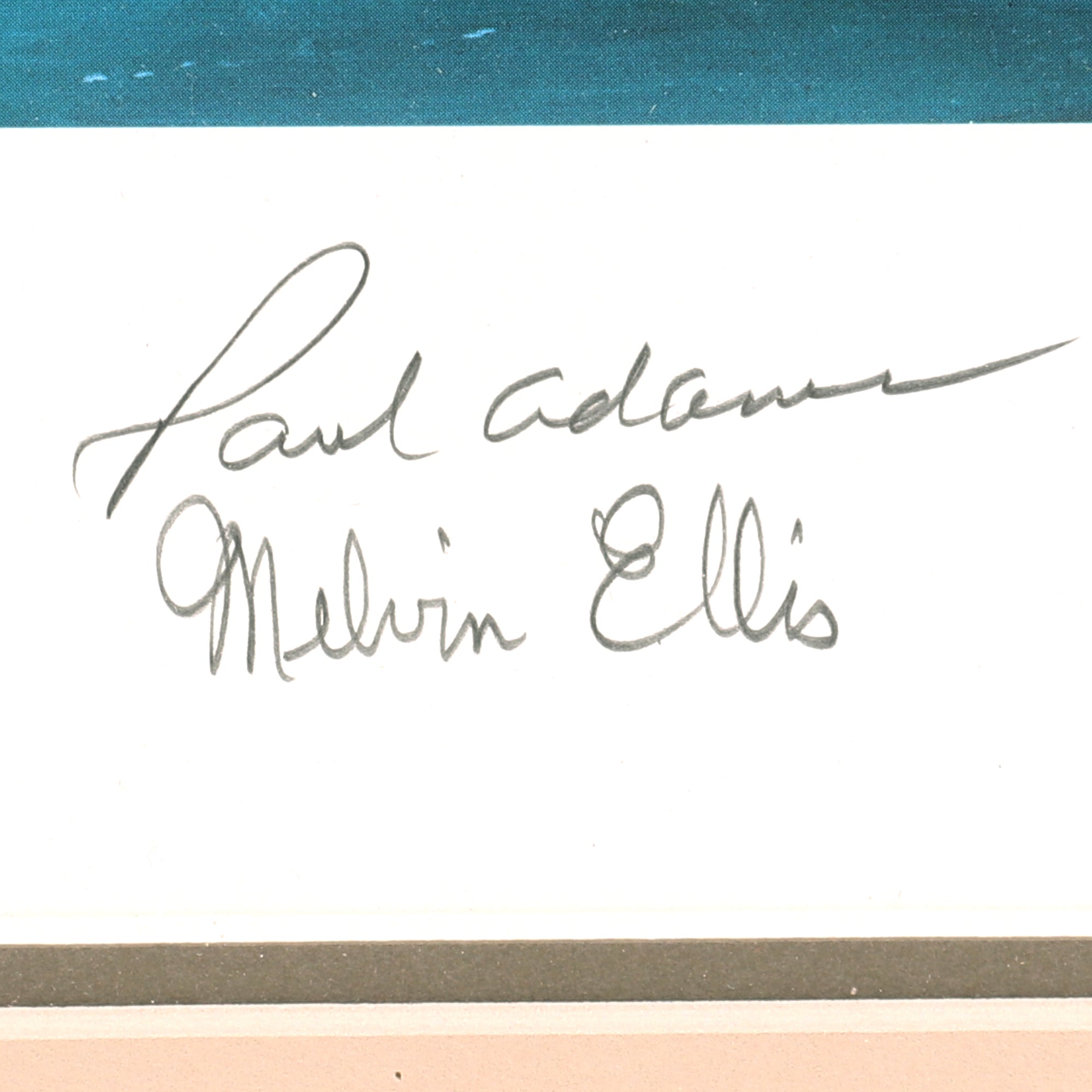Additionally, the print is signed by artist Robert Taylor on the far left, along with three U.S. Sailors and one Marine: