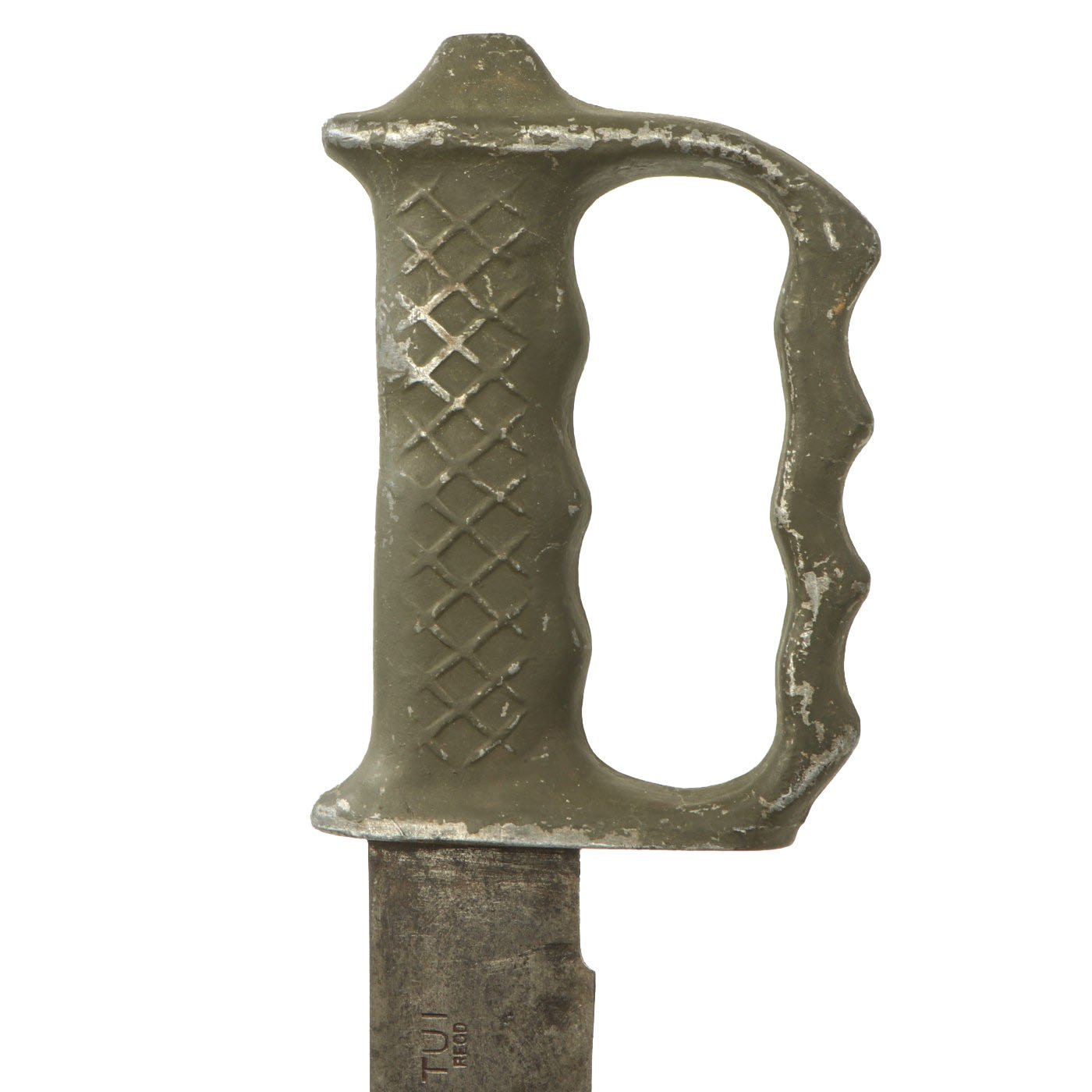 This knife is also mentioned in The Best of US Military Knives: Bayonets & Machetes by M.H Cole on page 179 as a "Type 2", which was used to some extent by the U.S. Marine Corps. The scabbard for this example is not the type usually used by ANZAC forces, and is definitely a U.S. Style, so we believe this example was a USMC Private Purchase.
