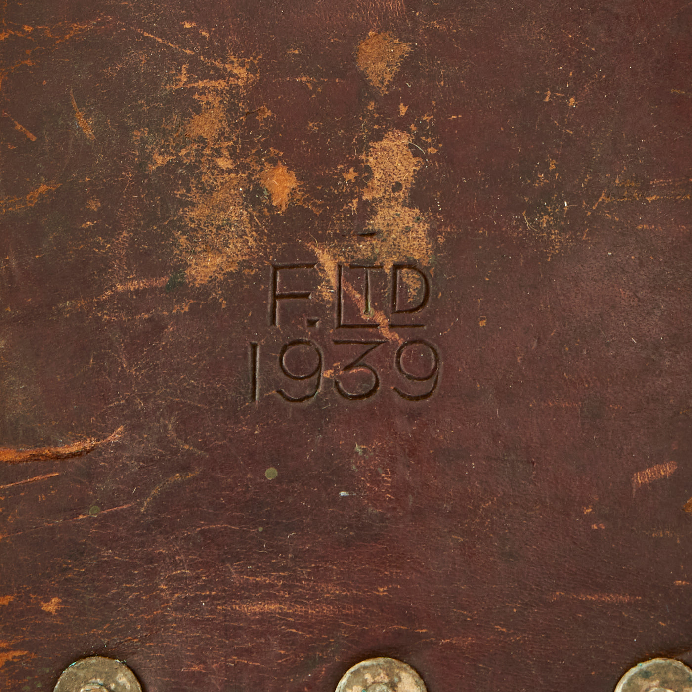 The sheath is the standard All-leather British/Commonwealth Machete Sheath. The Body is made of green painted leather which is retained quite nicely but there are areas of cracking and color loss. This sheath is a specimen that matches the machete perfectly. The markings on the reverse with F. LTD and is dated 1939, a nice early example!
