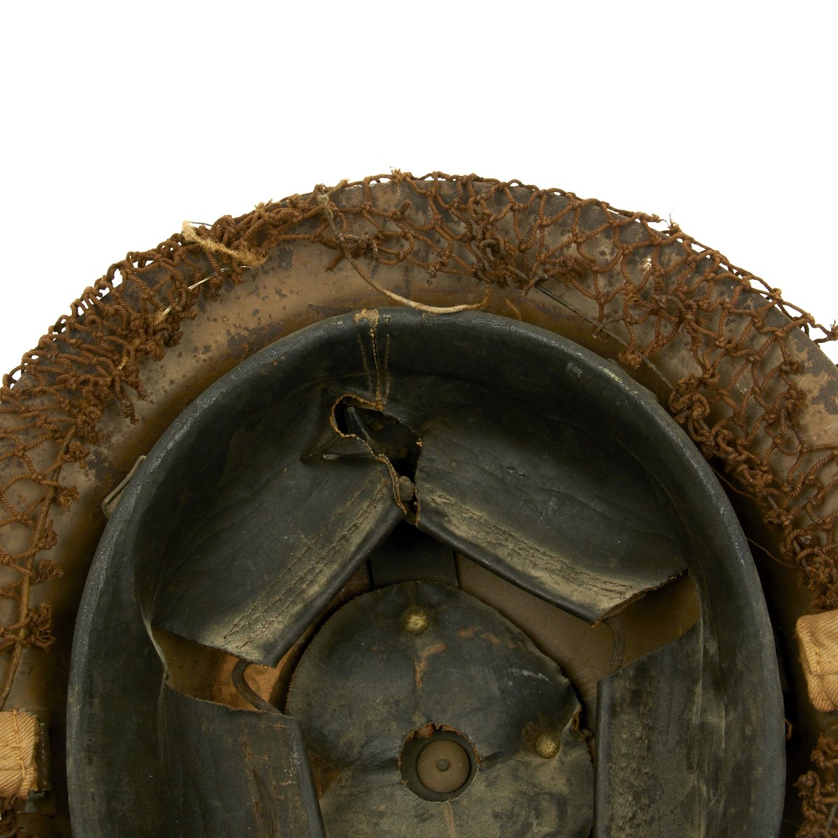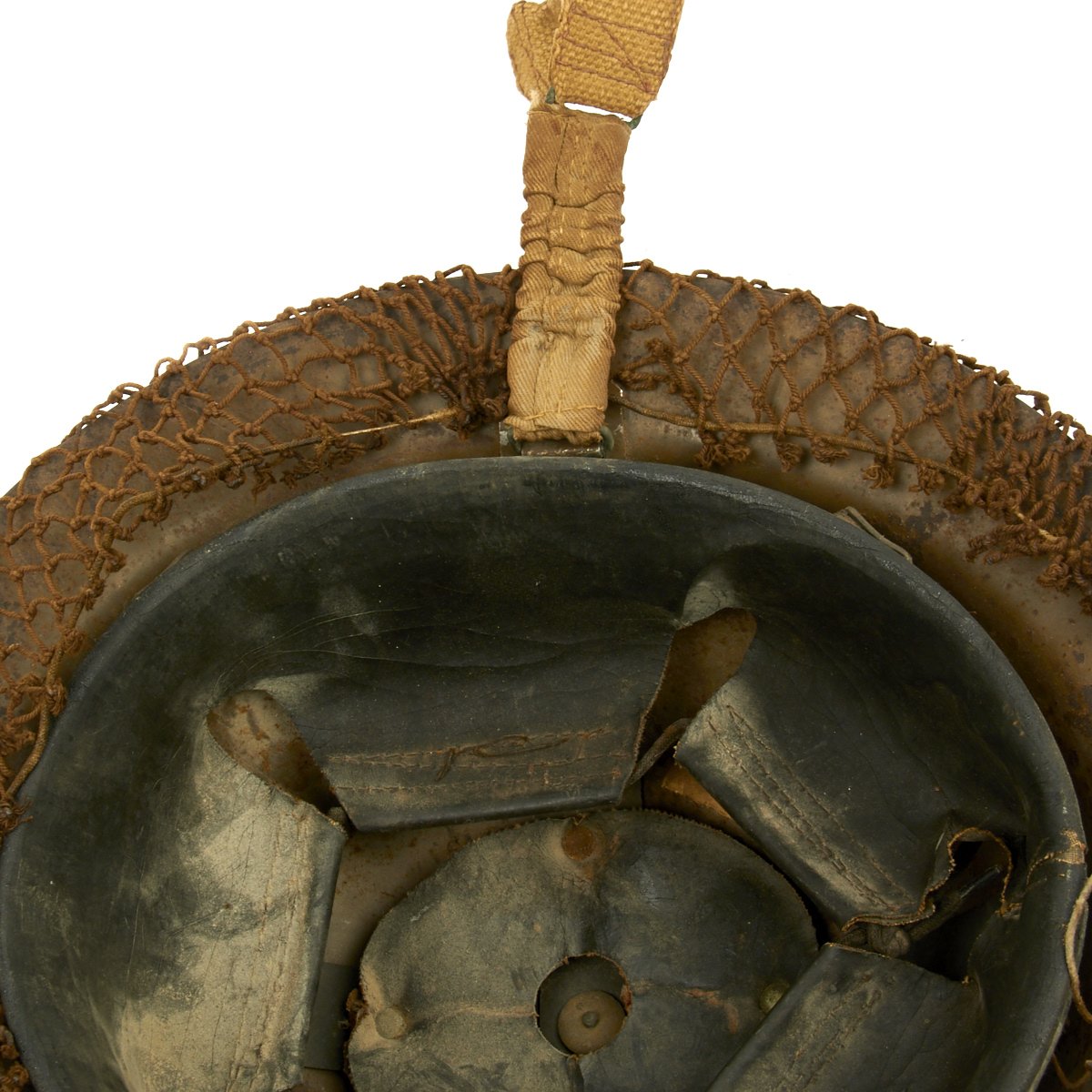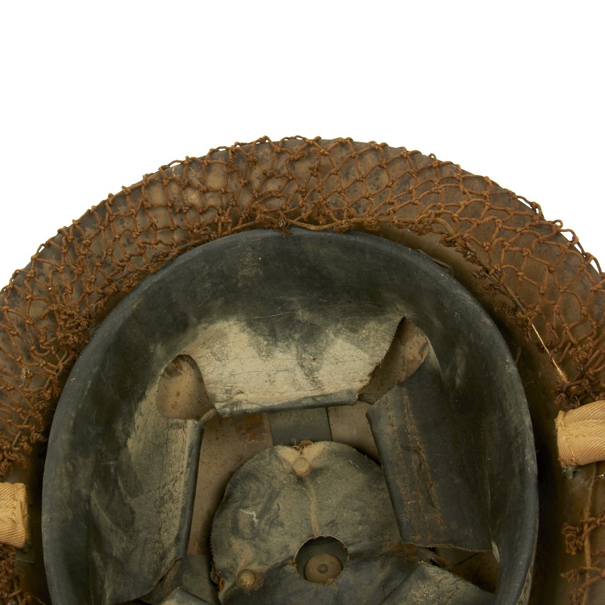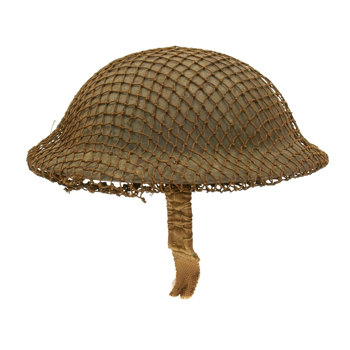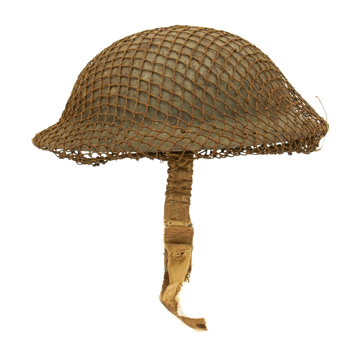 Original Item: Only One Available. This is an great example of a genuine Australian Mark II steel helmet that is dated 1940 on the shell, and 1939 on the liner, and comes complete with a brown helmet net, held on by a wire-reinforced tie string. The stamping on the underside of the rim reads: