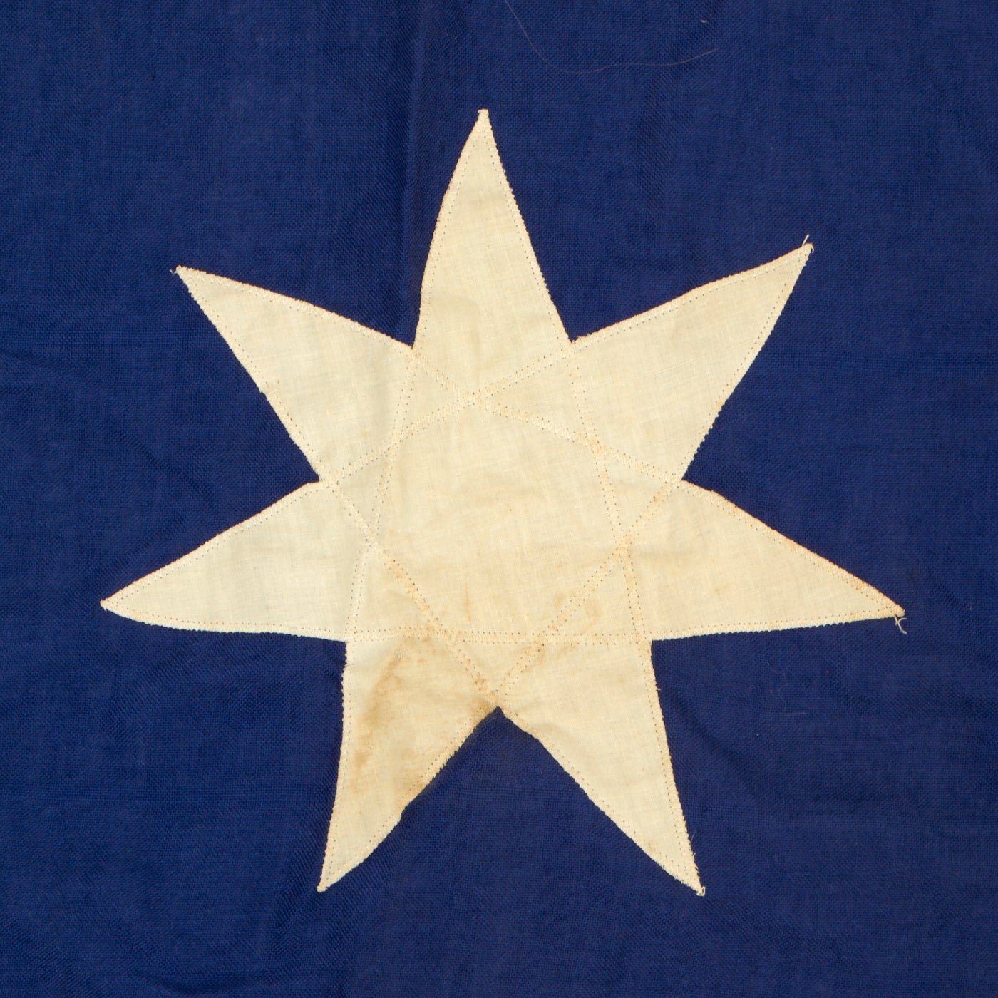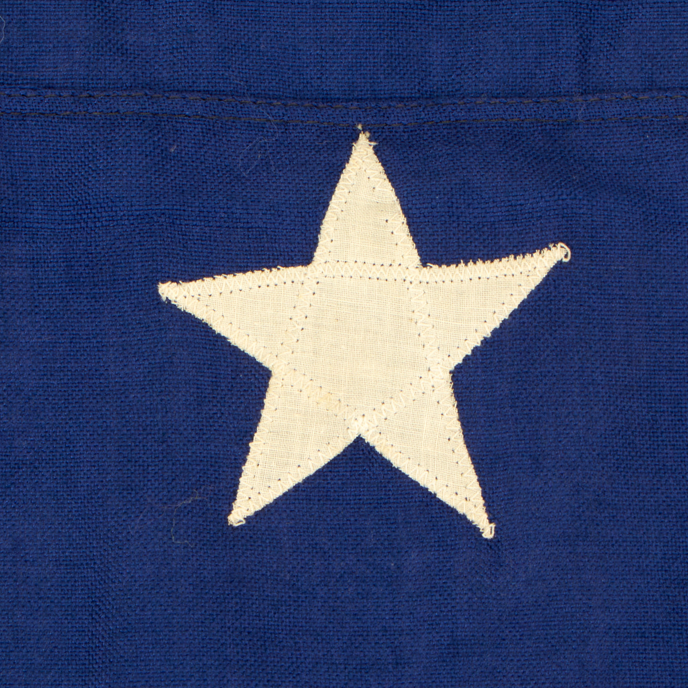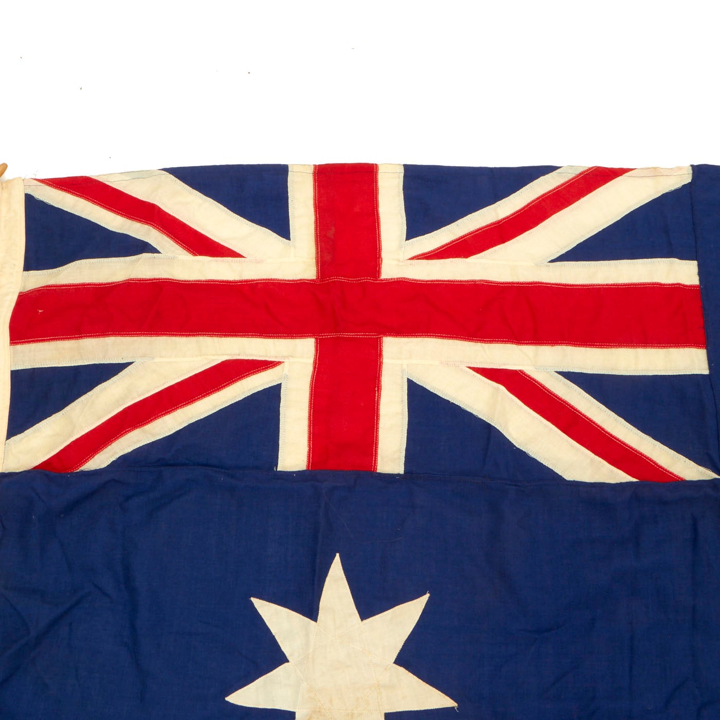 Original Item: Only One Available. This large flag is the ‘Excelsior’ heavy cotton flag and is complete with wooden securing toggle. There is a minor amount of staining on the large white 7 point star stain, though more importantly, the overall condition is very good, there are no tears or holes and the colors are still very vivid.