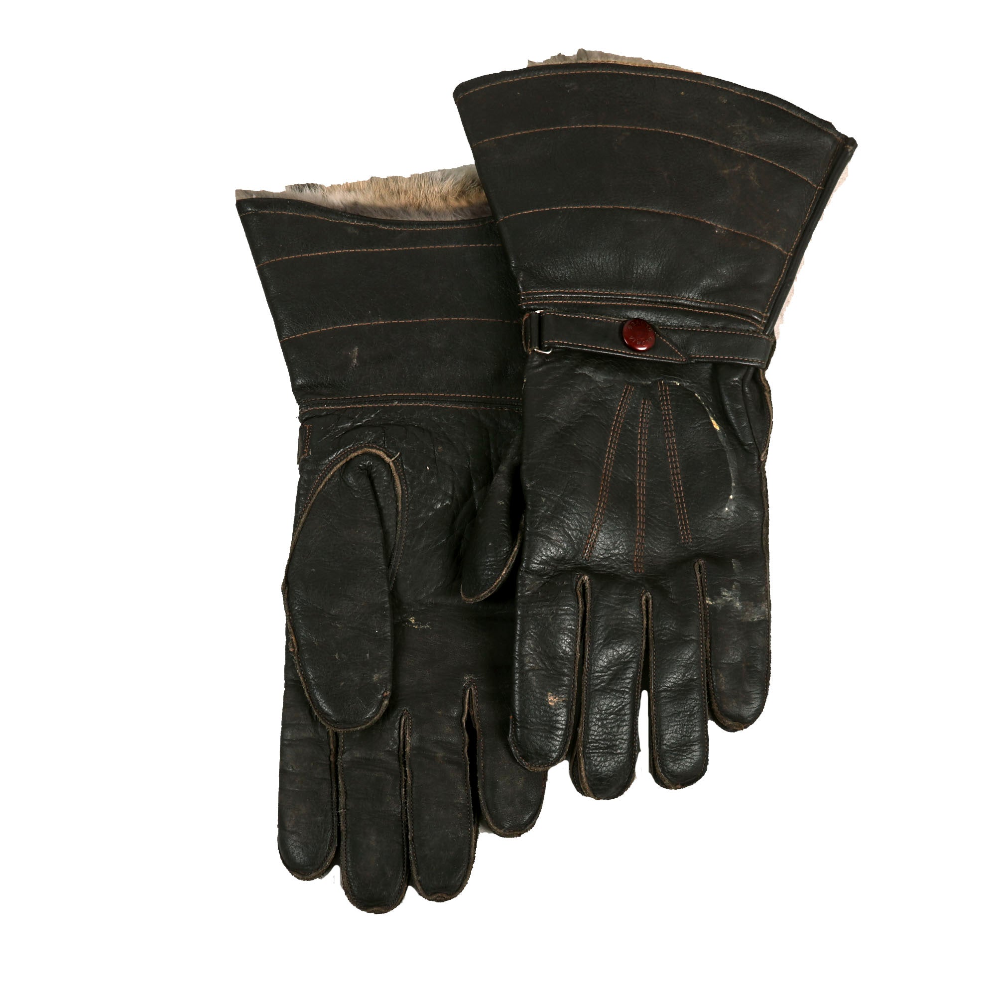 ● Pair of Flight Gloves Size 9½ with Gloria Gloves buttons to allow for tightening. The fur on the interior is in great shape and there are initials DAD in both gloves. A fantastic set of WWII Australian Flight gloves.