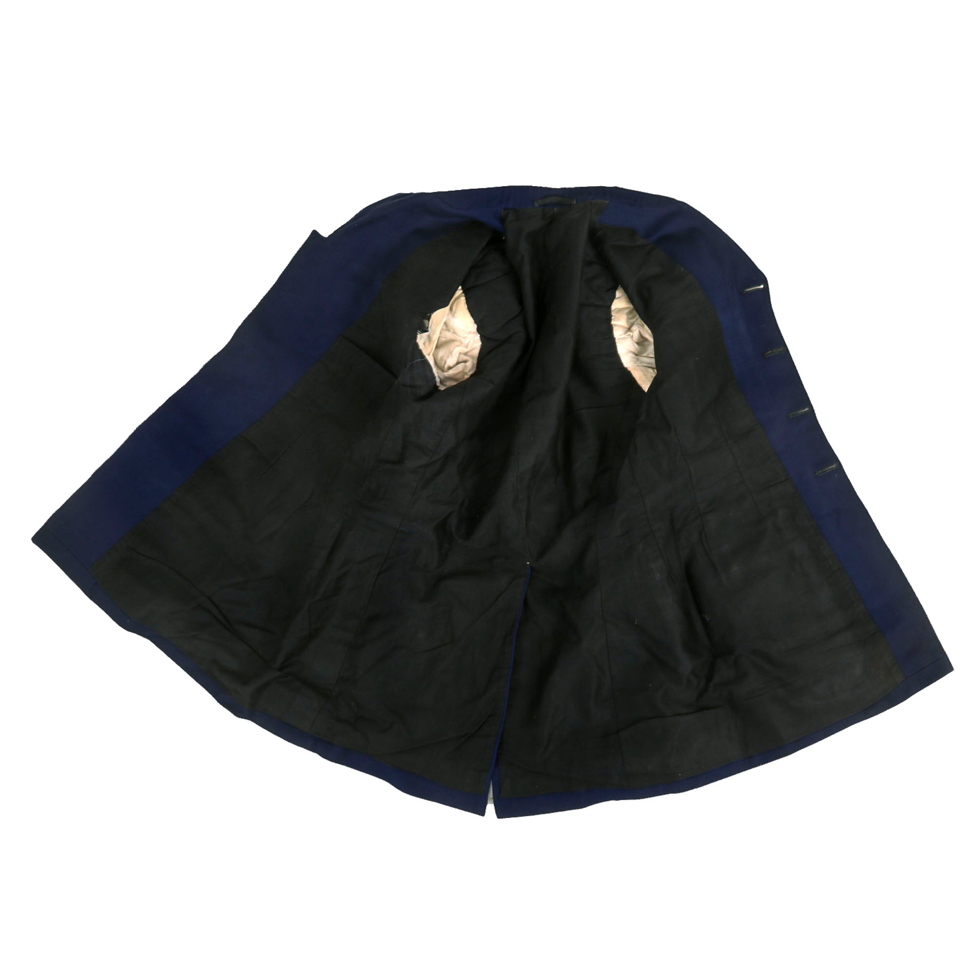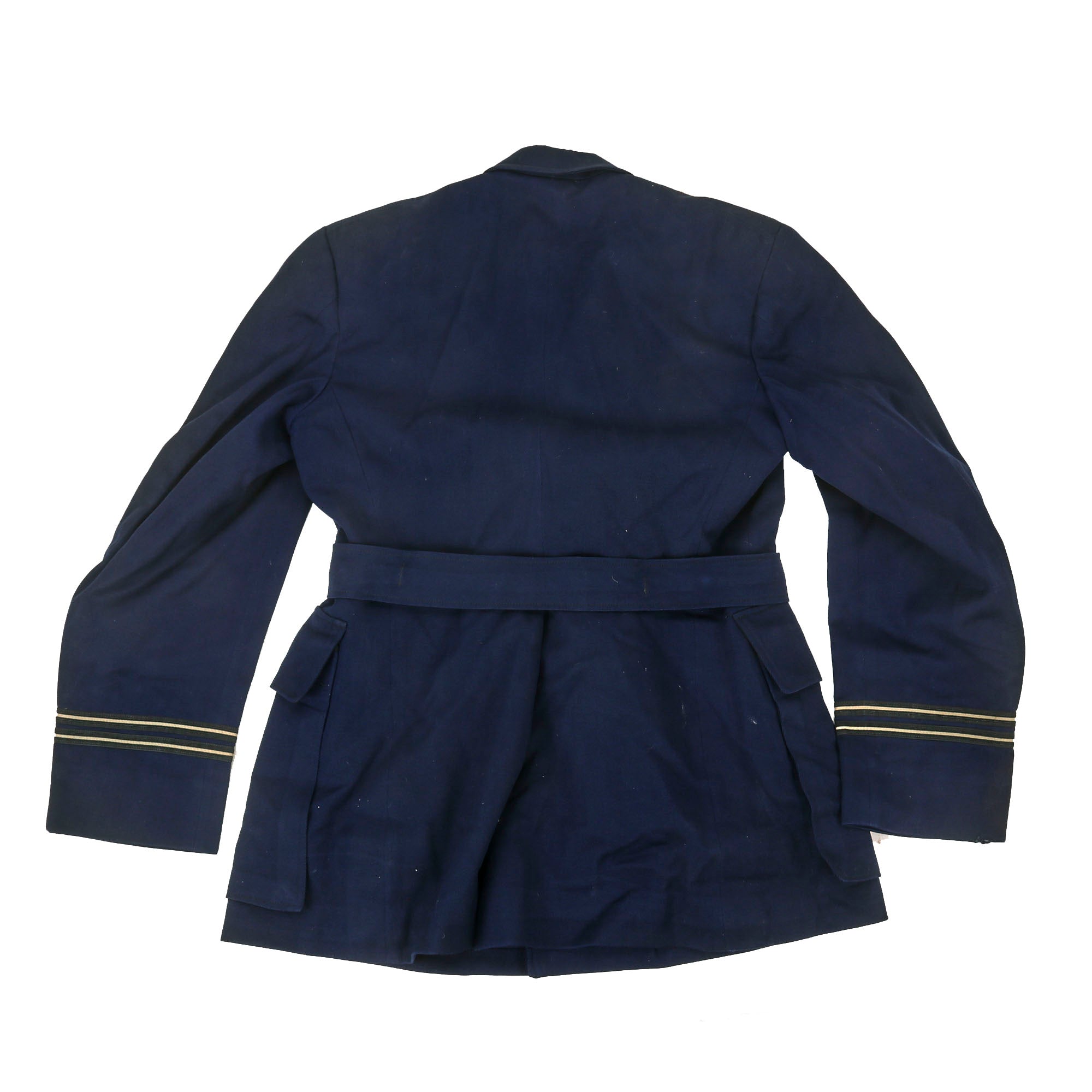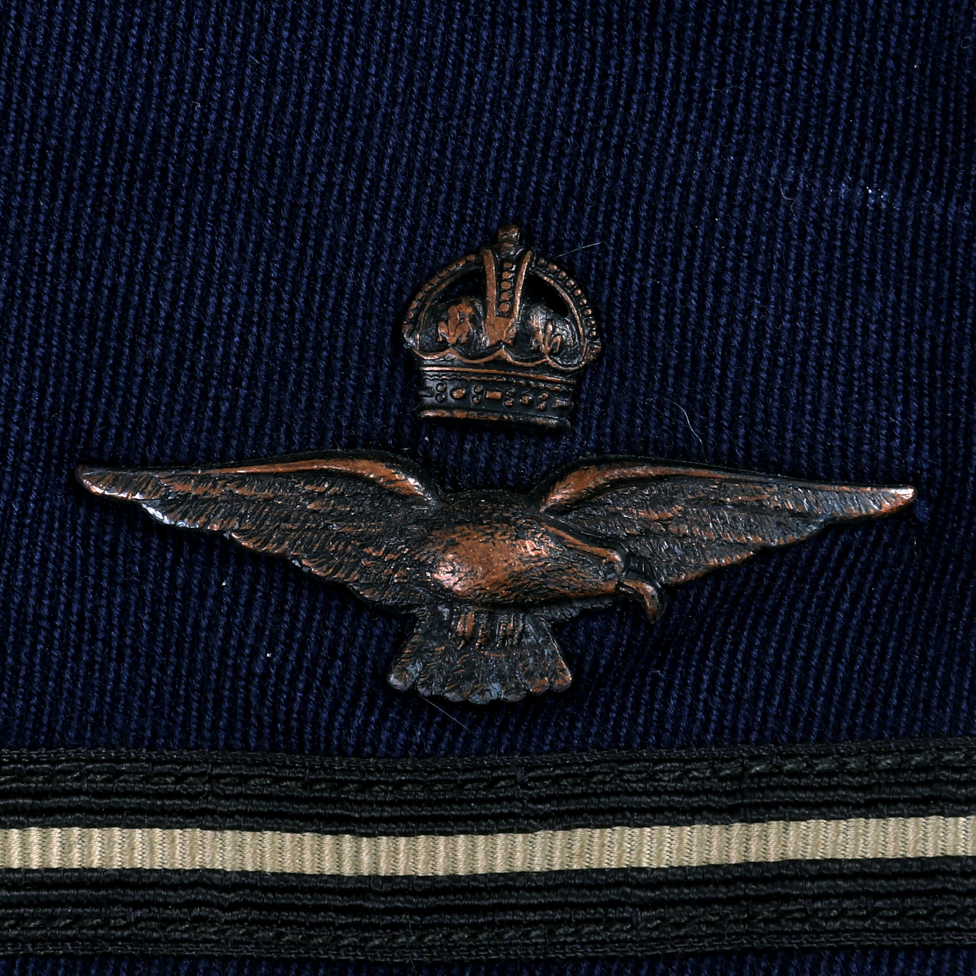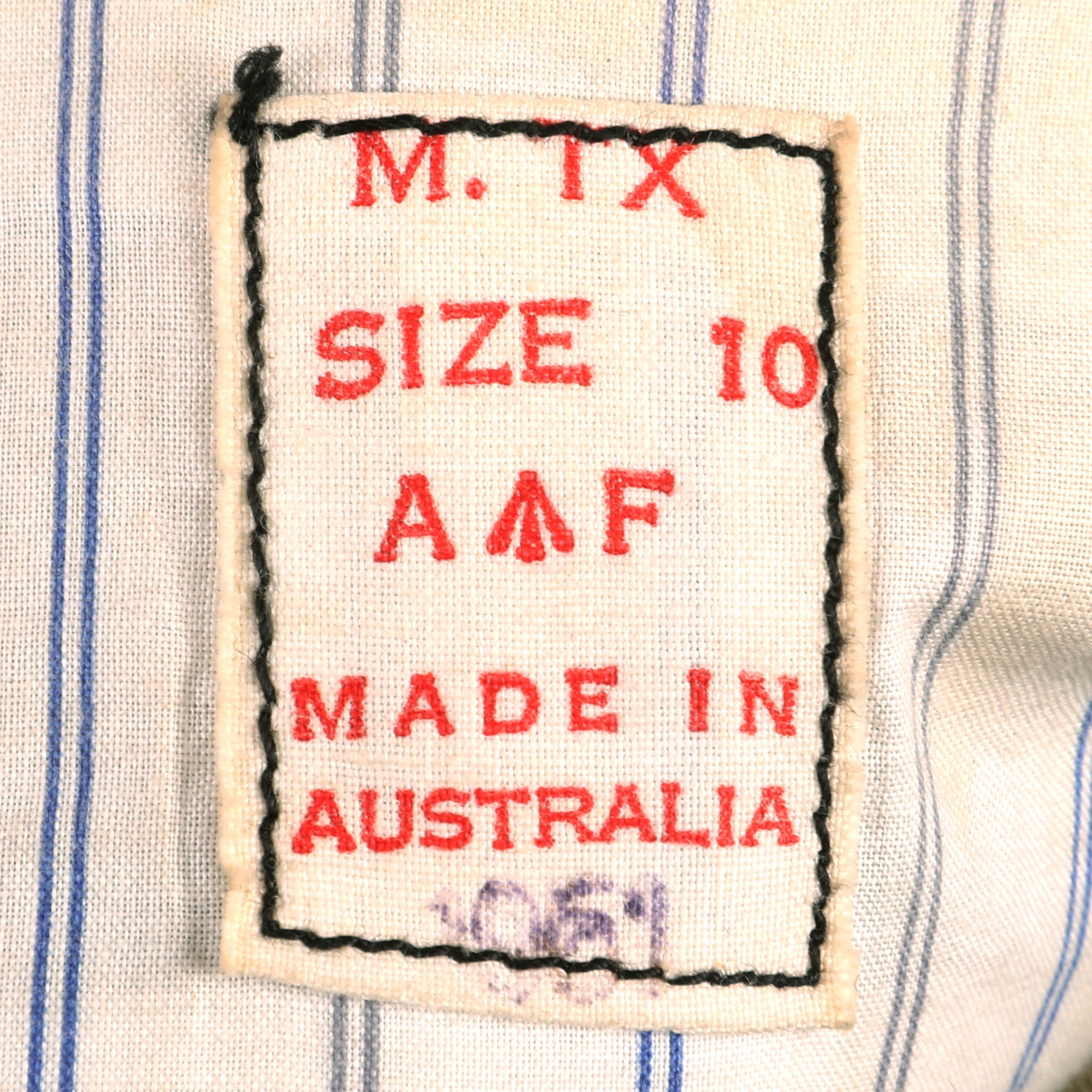 ● Royal Australian Air Force Officer’s dress uniform jacket & trousers with cuff ranks for a Flight Lieutenant and a set of RAAF Pilot’s wings above the left breast pocket. There is a nametag on the interior for Flight Lieutenant Leedham C., dated 2.5.45. The uniform was made by Gowing Bros. Ltd. in Sydney, Australia. The cuffs both have ranks for Flight Lieutenant with the Crown and eagle insignia above both cuffs. The trousers have a tag reading Size 10 AF Made in Australia. Both the jacket and trousers are in fair shape with some damage on the back of the jacket.